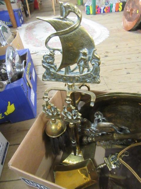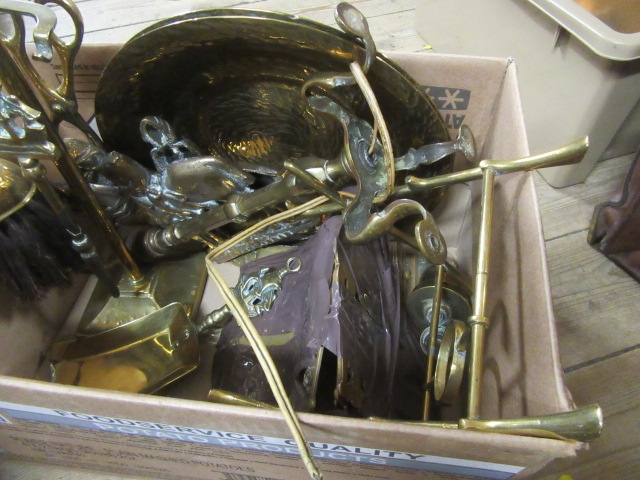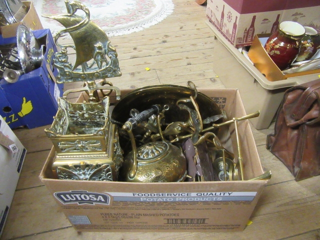 BOX OF METALWARE INCLUDING COPPER KETTLE