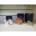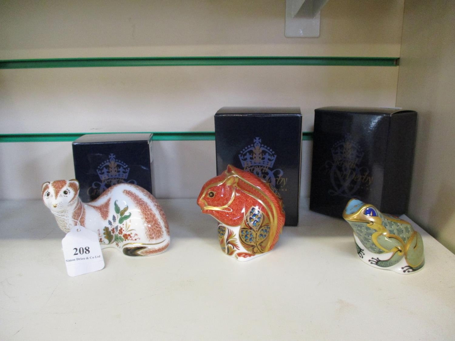 Three Royal Crown Derby gold stopper paper weights modelled in the form of a stoat, a squirrel and a frog