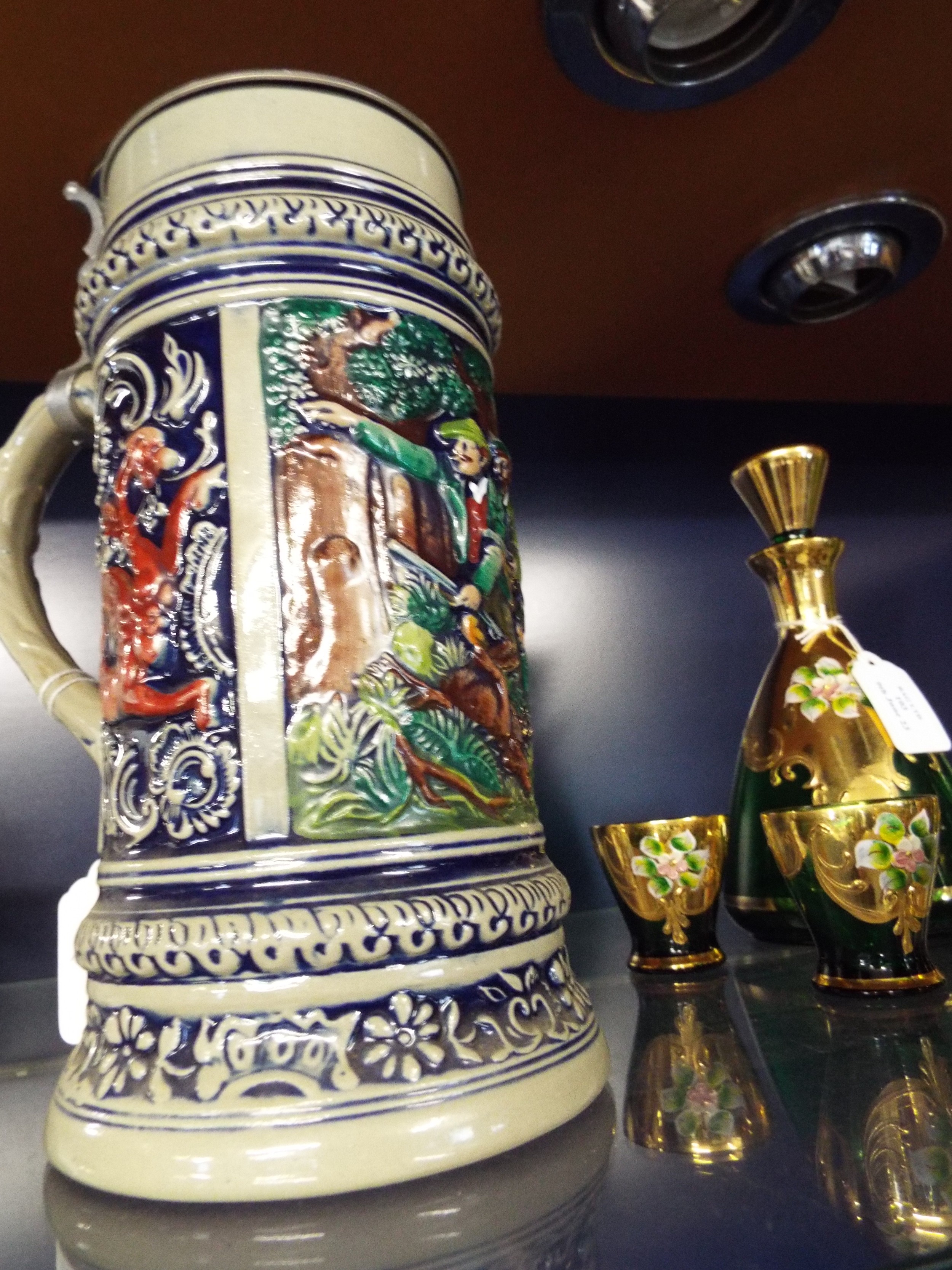 A Gertz West German beer stein with hunting scene decoration