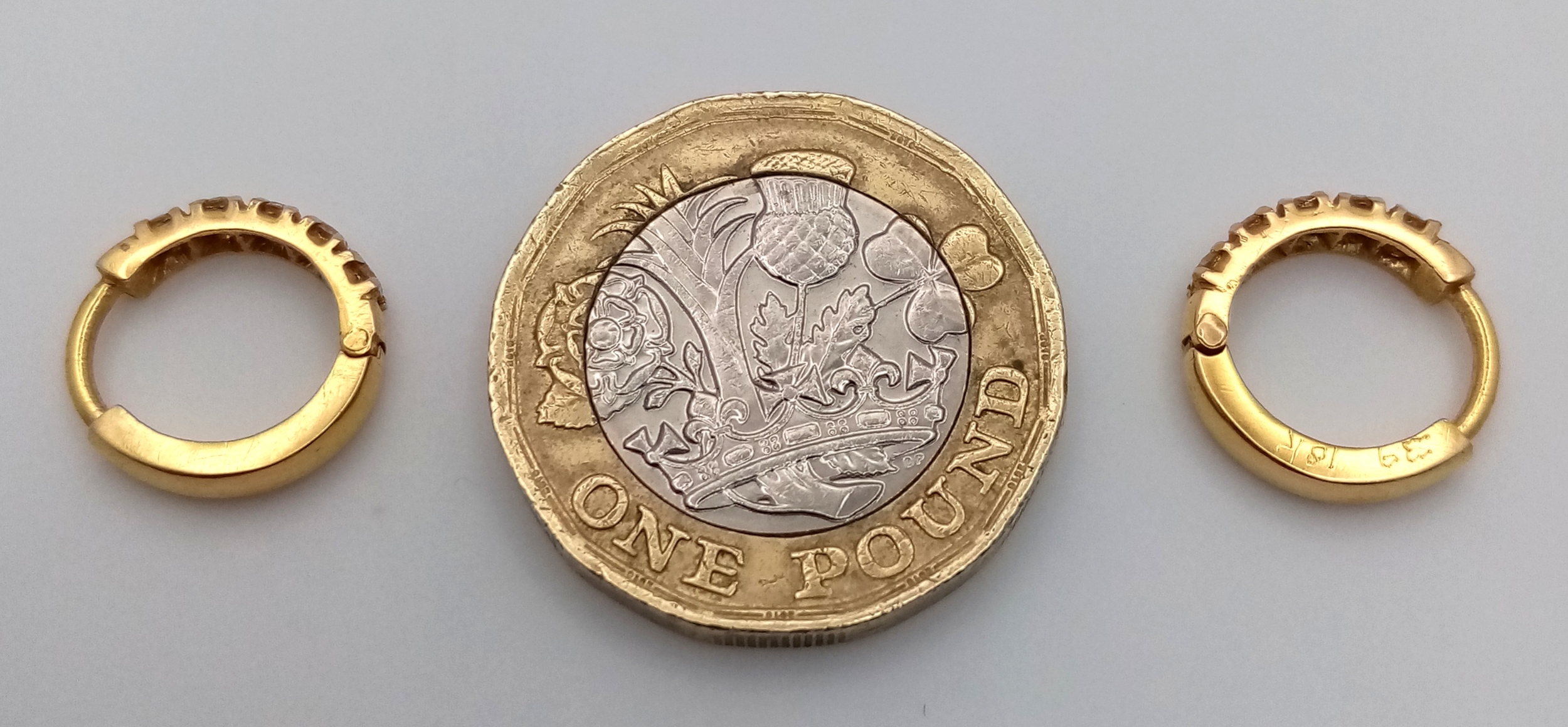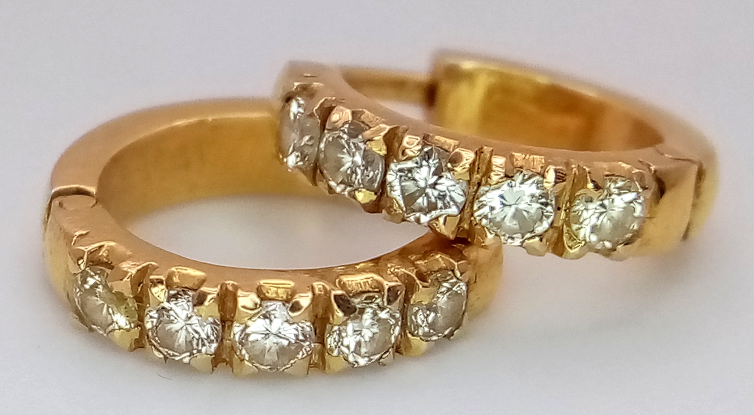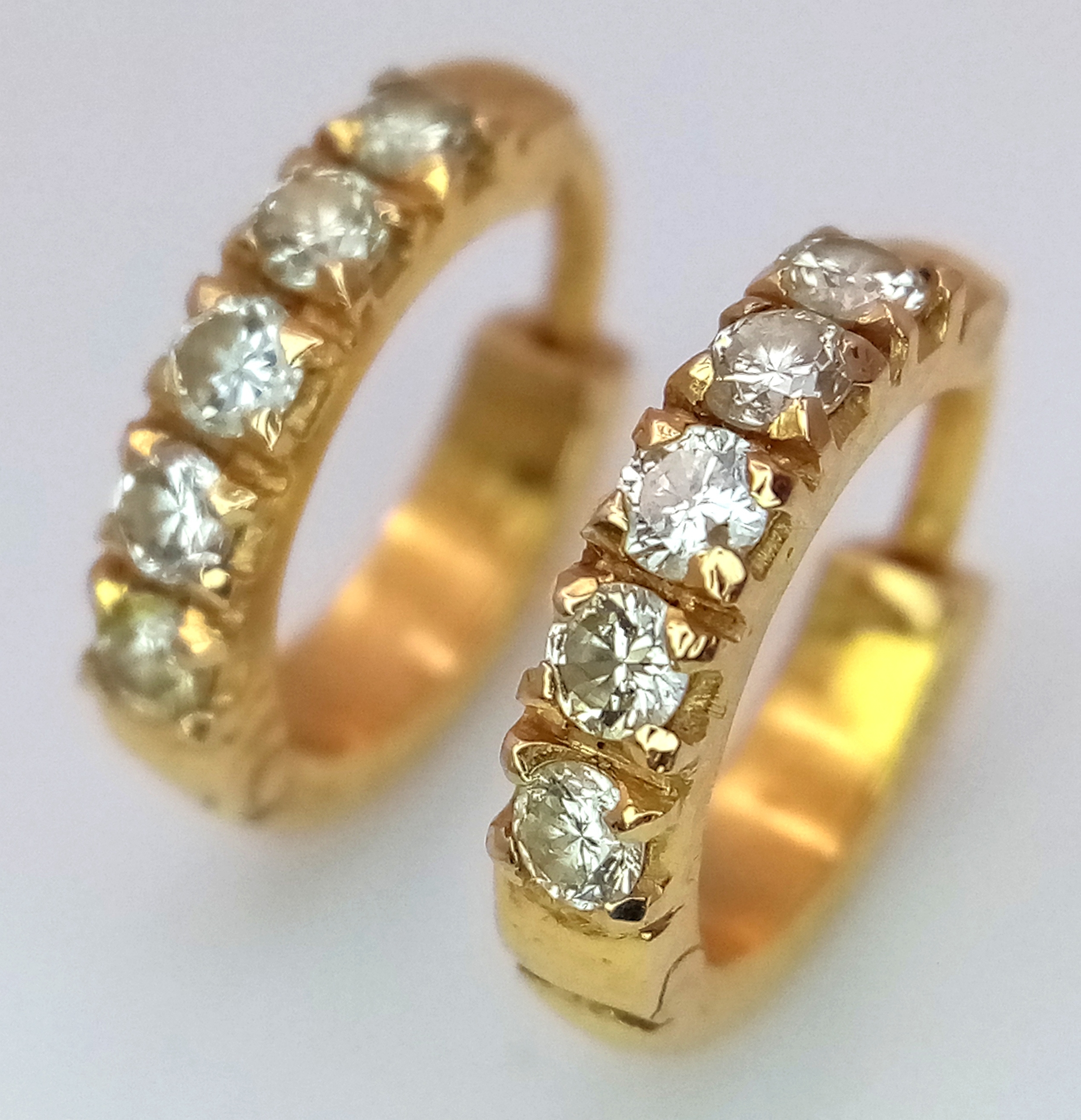 A PAIR OF 18K YELLOW GOLD DIAMOND SET MINI HOOP EARRINGS. 0.30CT. 2.9G. SC7065.
