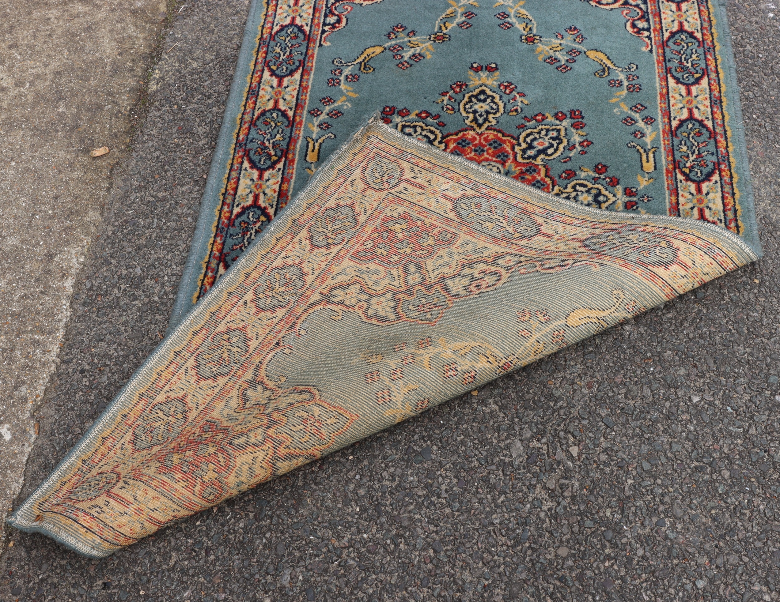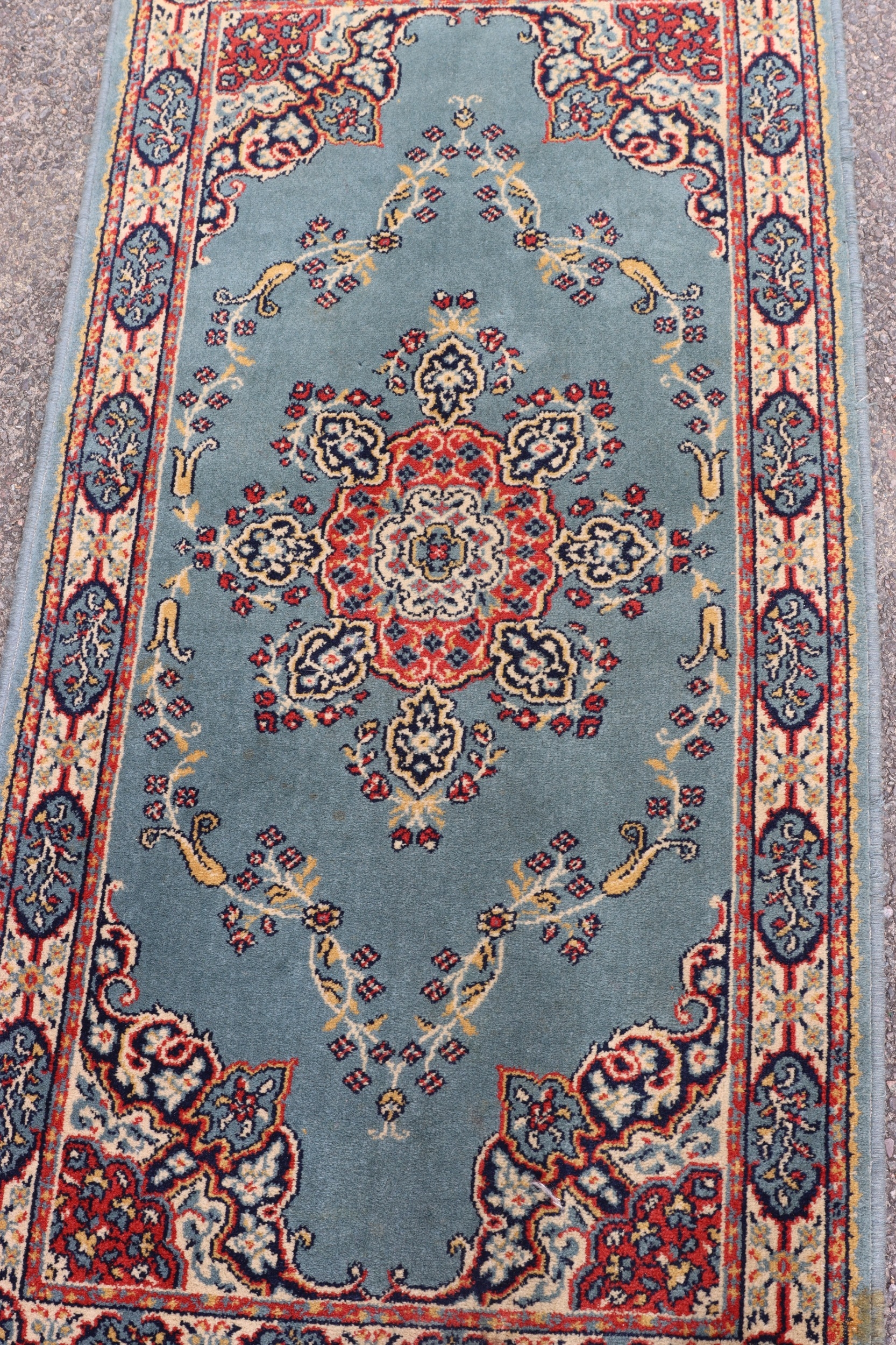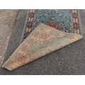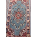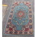 A small rug on blue ground, 138cm x 70cm (some spots and mar...