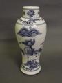 A shaped Chinese blue and white vase with painted decoration of warriors on horseback, 6½' high
