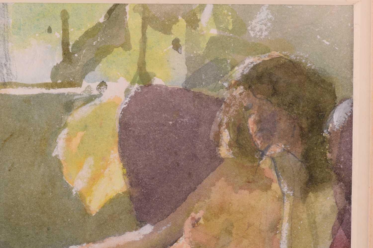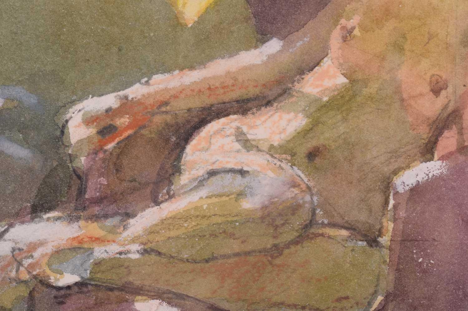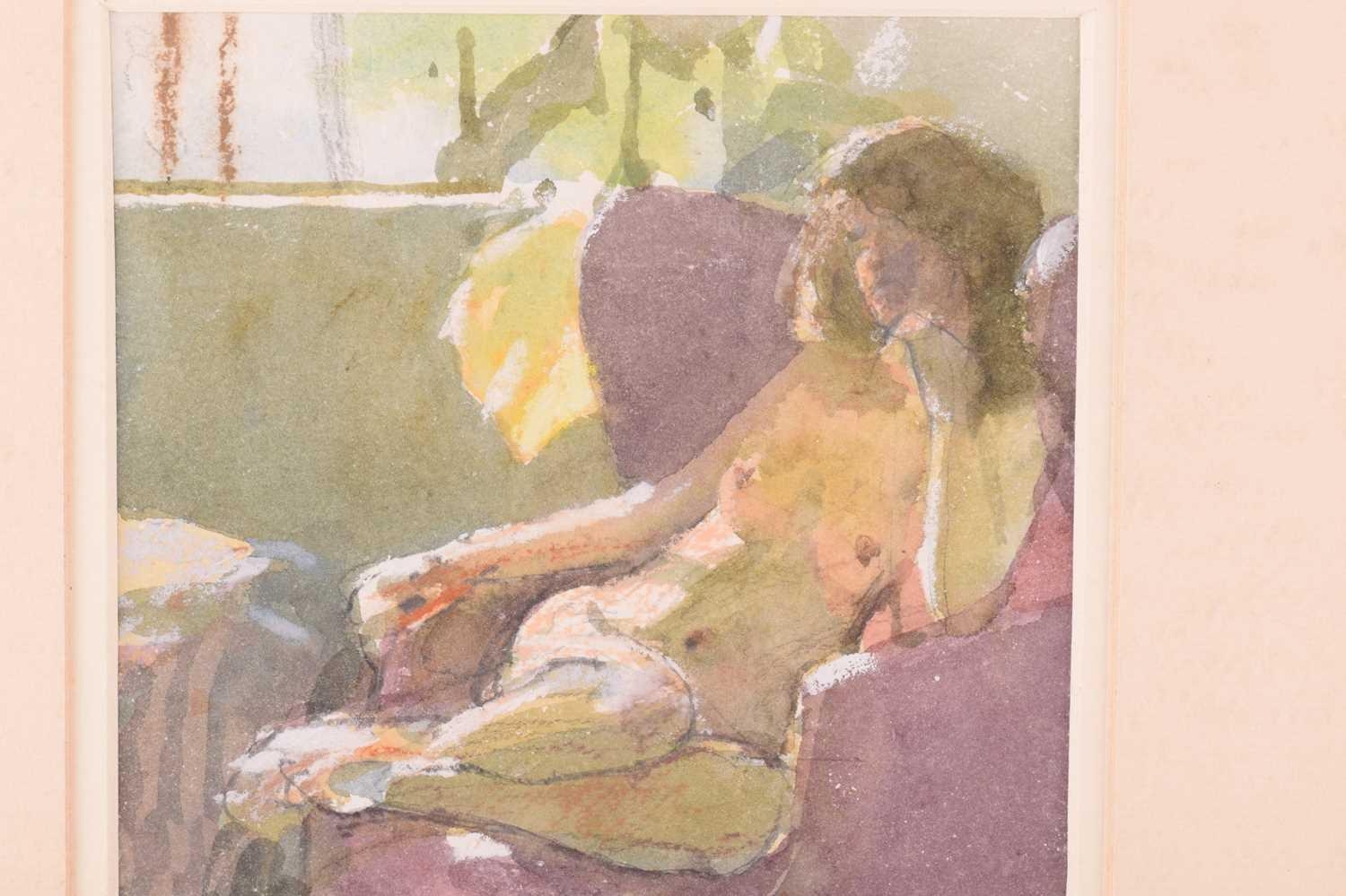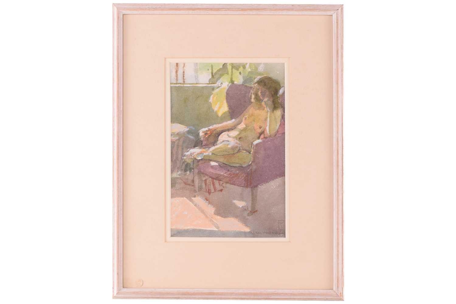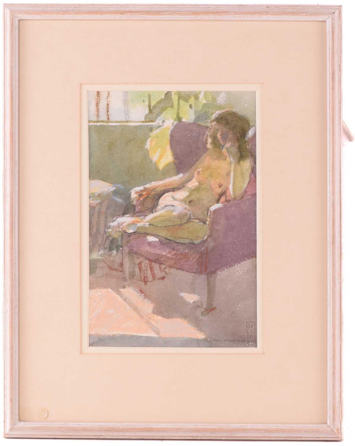 † Ken Howard OBE R.A. (1932-2022) British, 'Valerie', depicting a girl reclining nude in a chair, signed and dated lower right 88', watercolour and mixed media on paper, 26 cm x 17 cm, framed and glazed.