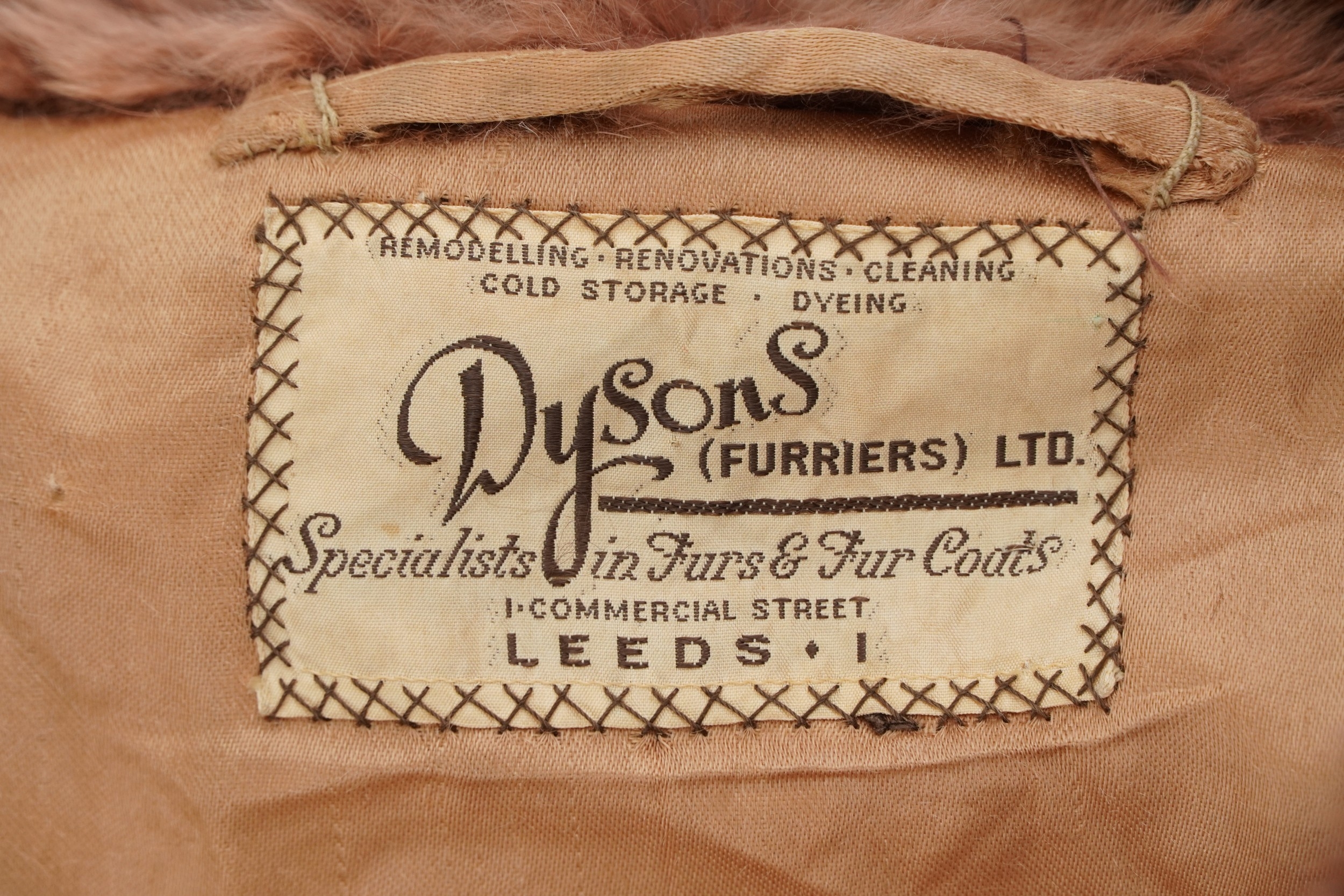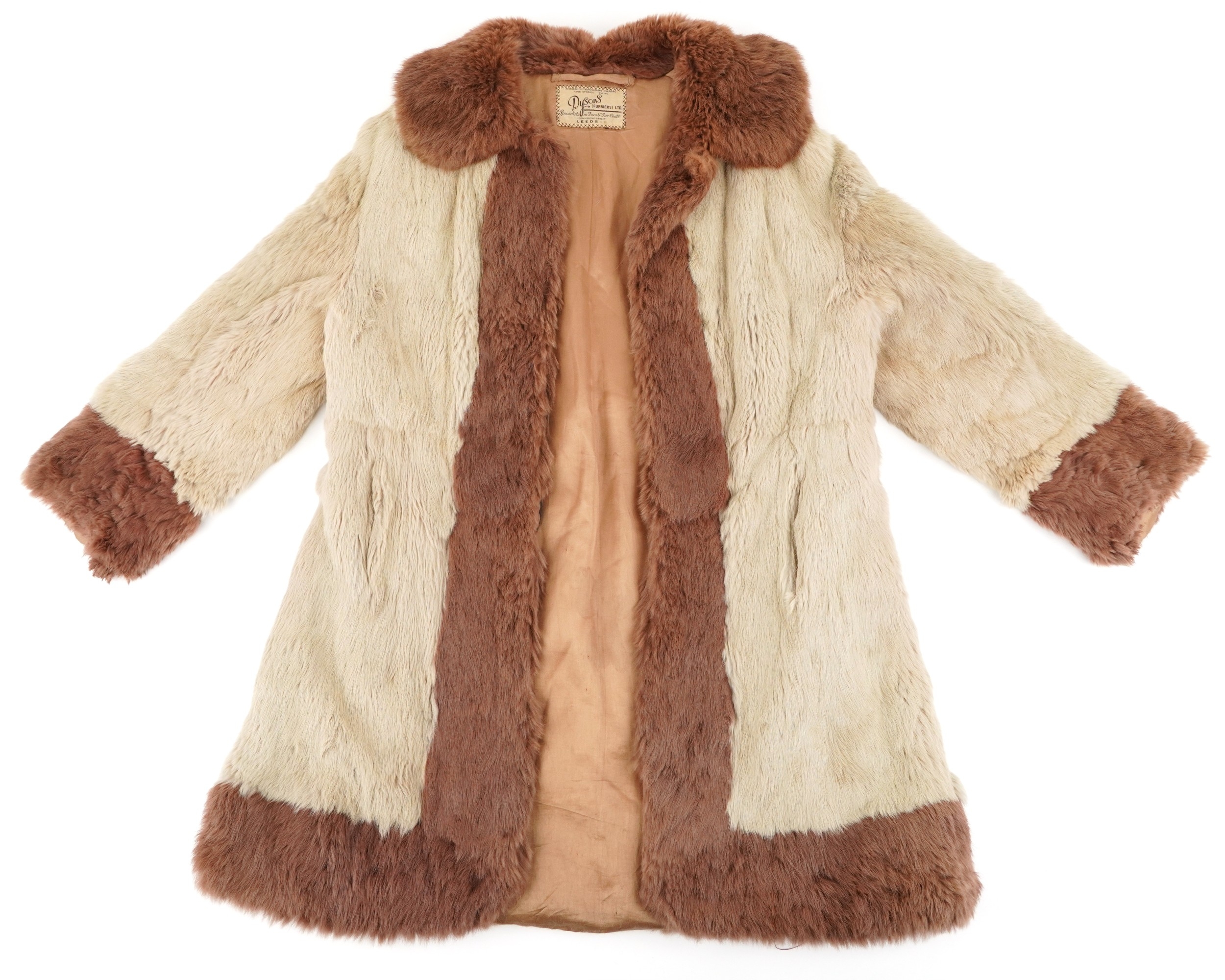 A vintage ladies Dysons fur coat, pit to pit 52cm and 85cm in length.