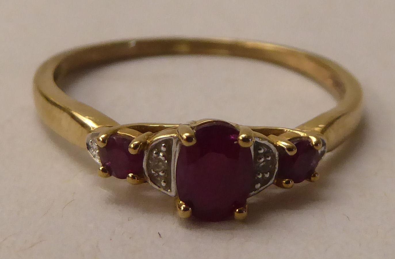 A 9ct gold ruby and diamond set ring