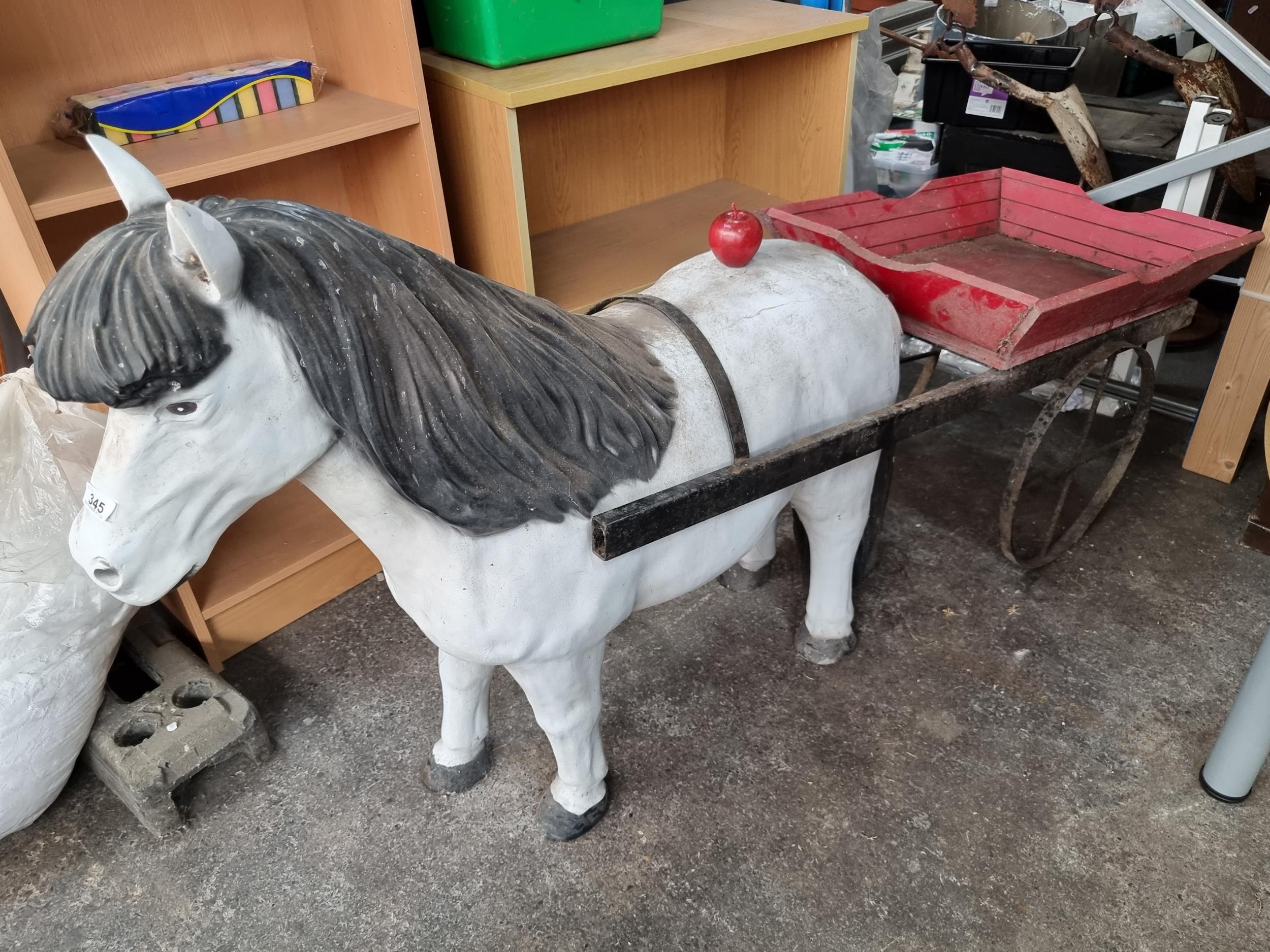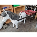 Star Lot : A live size figure of a shetland pony drawing a cart. A fabulous display for garden with storage in the cart, Super piece.