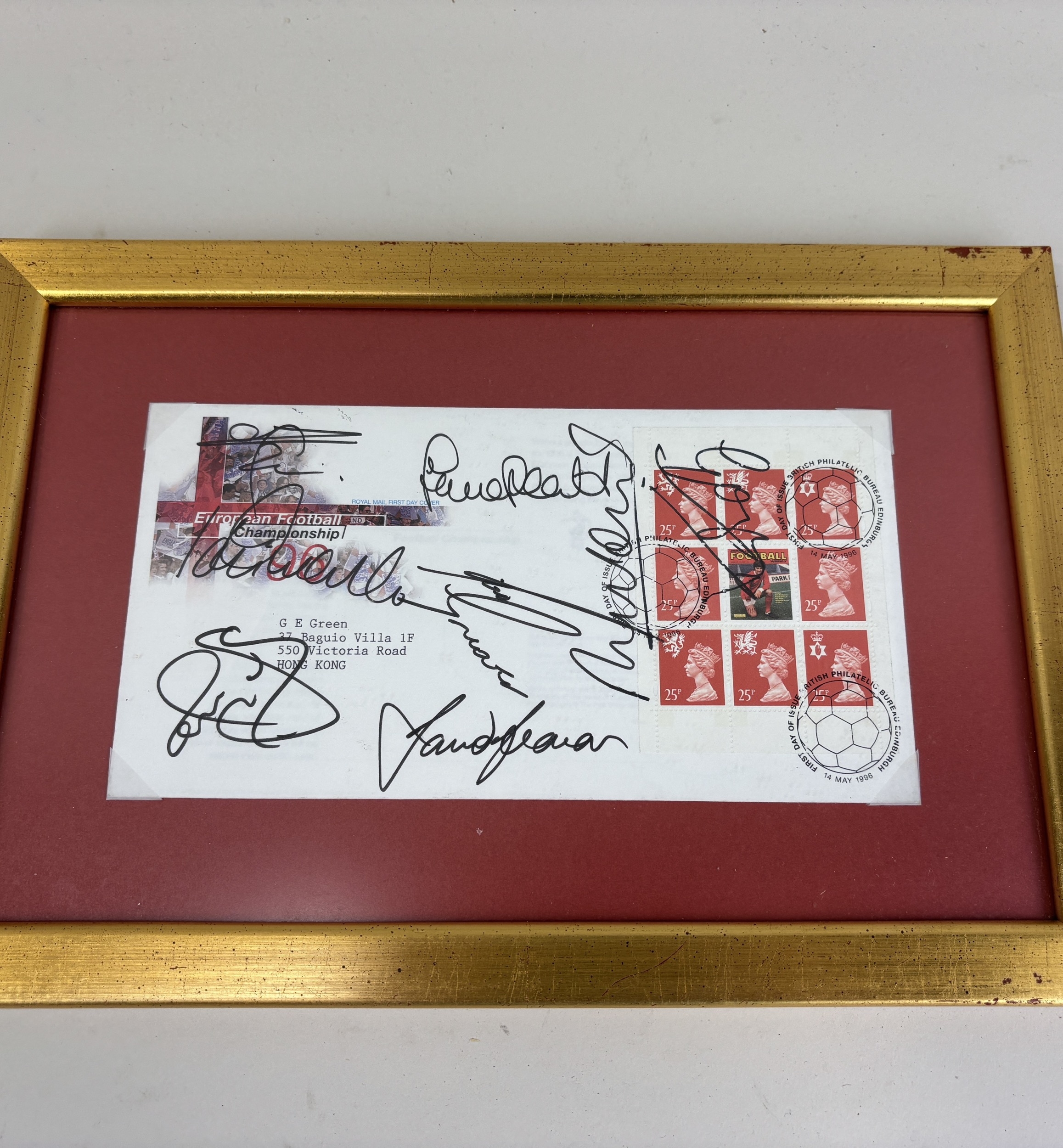 A ENVELOPE SIGNED BY PLAYERS FROM THE ENGLAND '96 SQUAD TO INCLUDE PAUL GASCOIGNE, PAUL INCE AND ALAN SHEARER