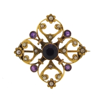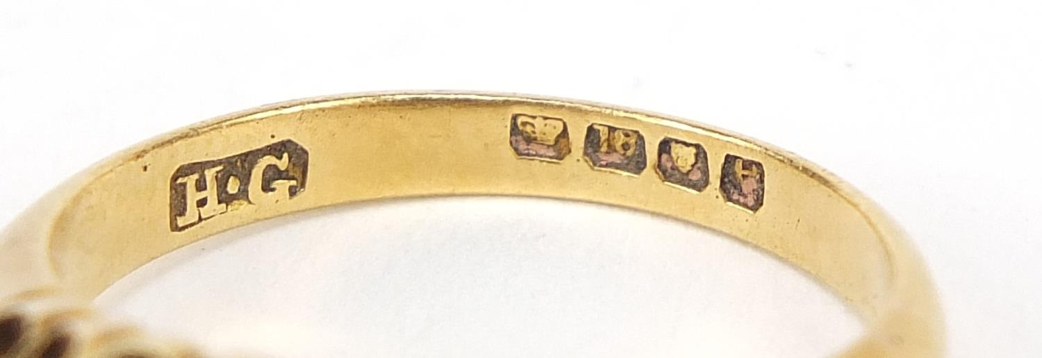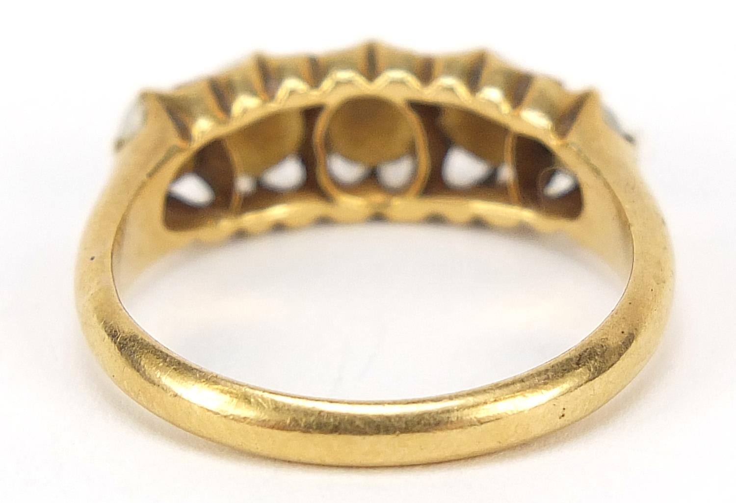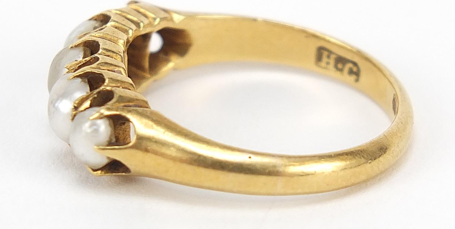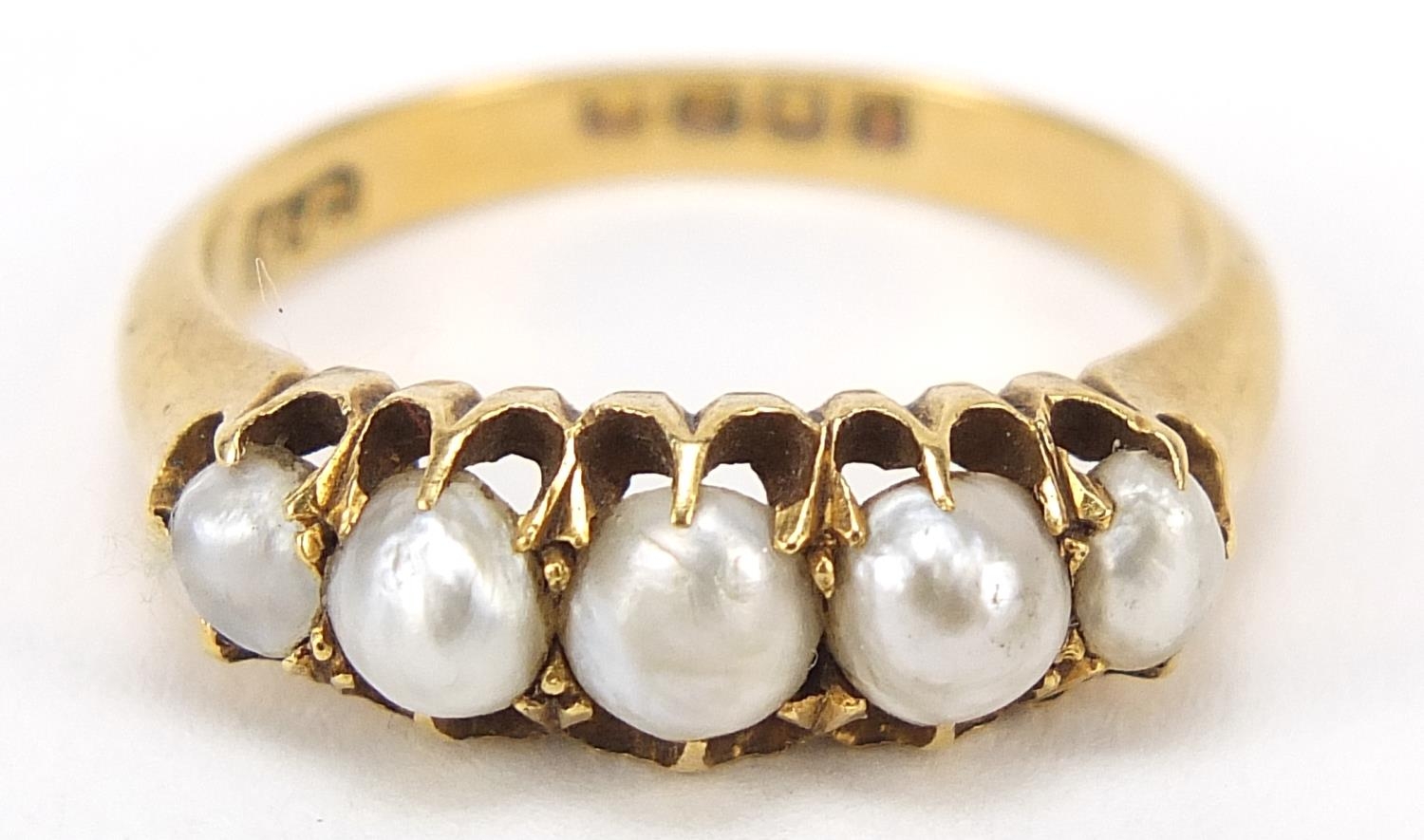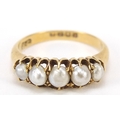18ct gold graduated pearl ring, size M, 3.9g