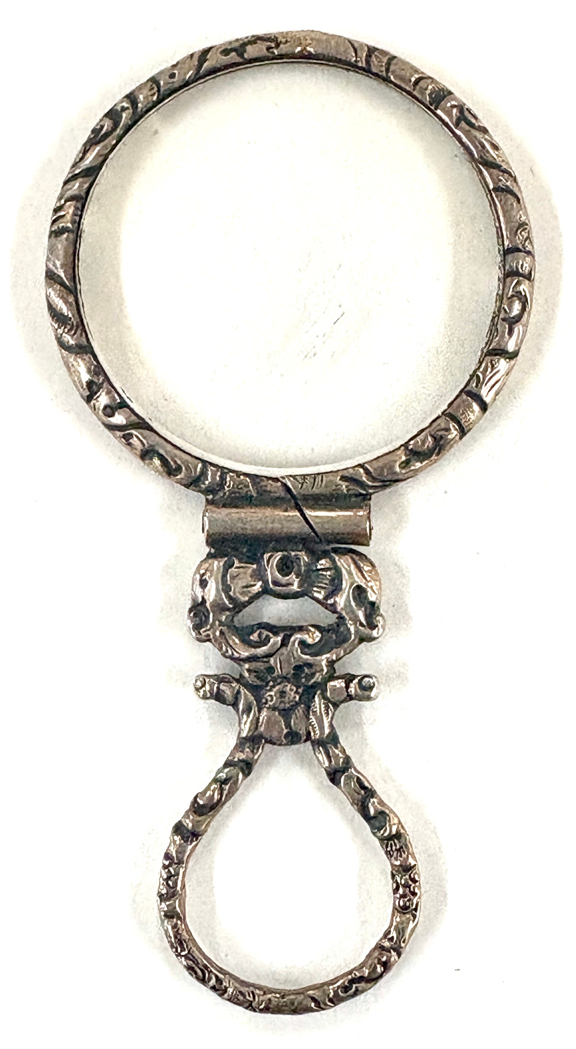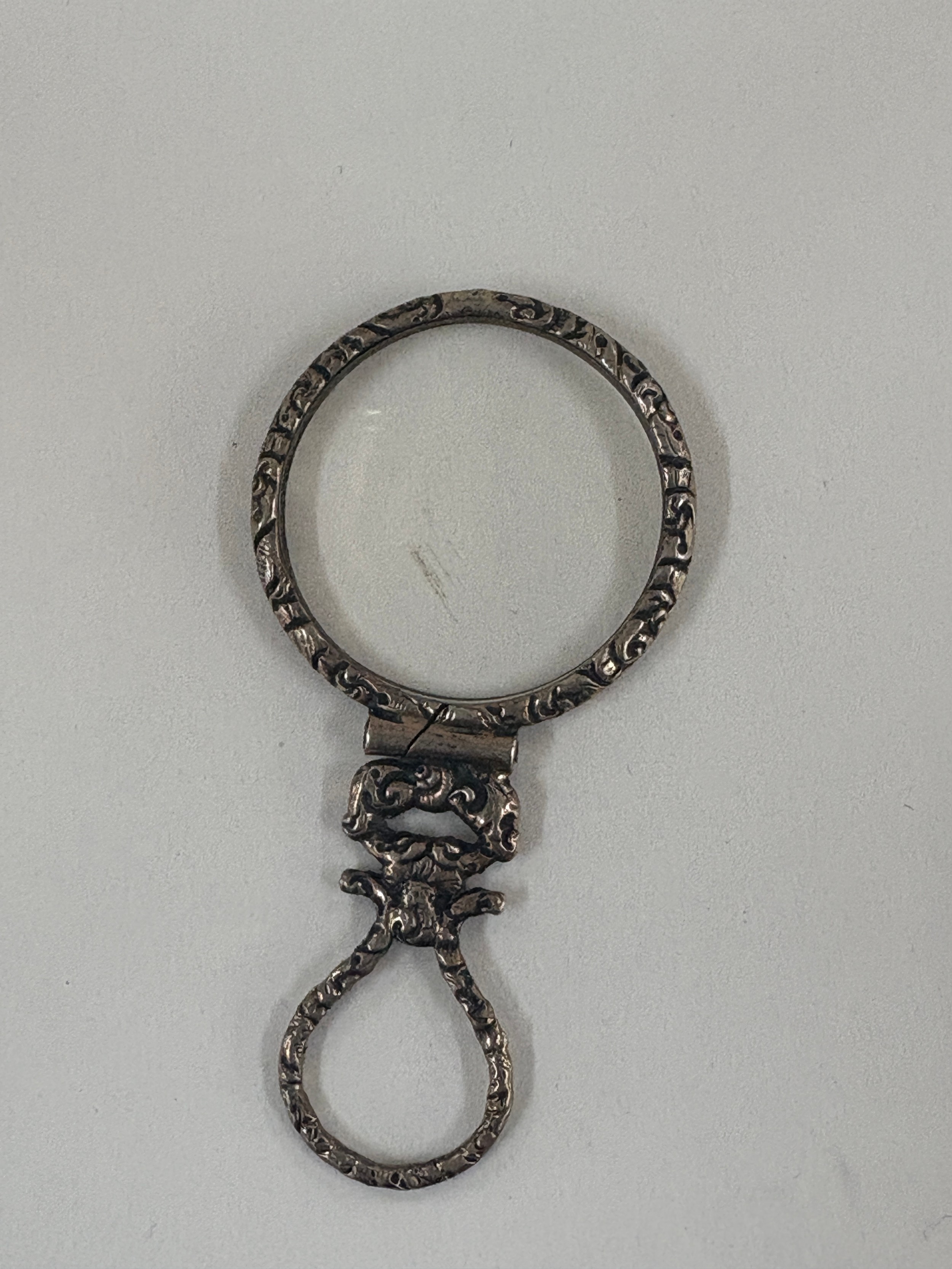 Small silver magnifying glass, overall measurements: 2.5 inches
