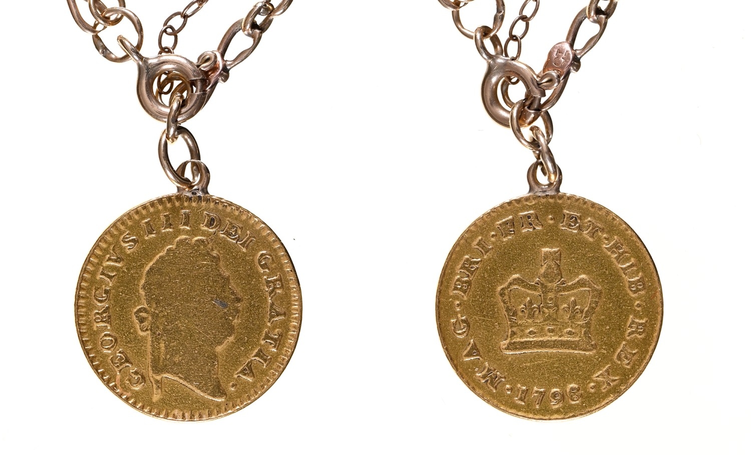 Gold coin. Third Guinea 1798, mounted on a gold chain, 5.7g