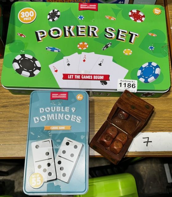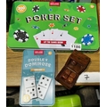 Poker Set In Tin, Dominos Set In Tin + Wooden Dice Set In Box
