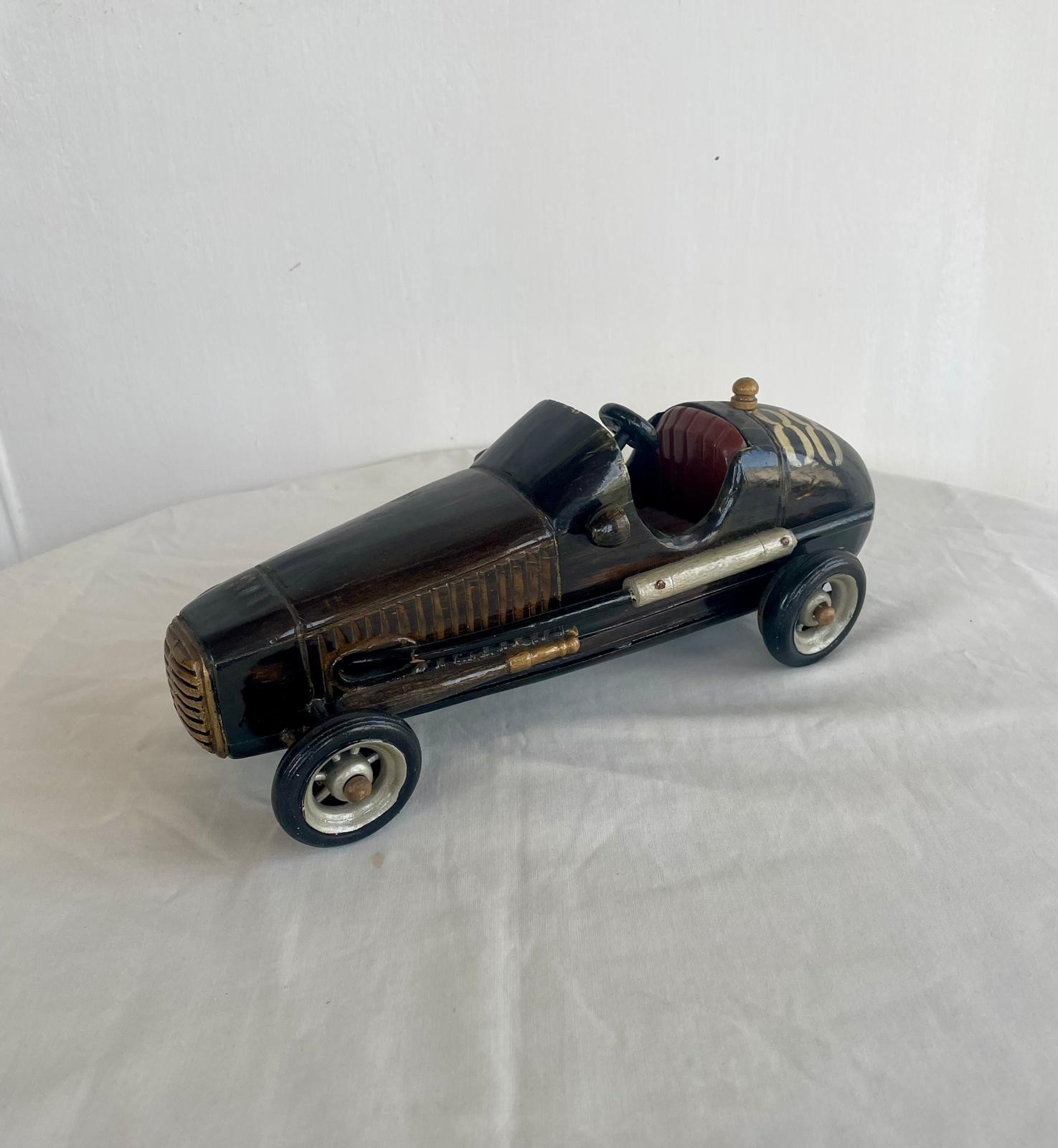 Vintage wooden scale model of a racing car, 27cm