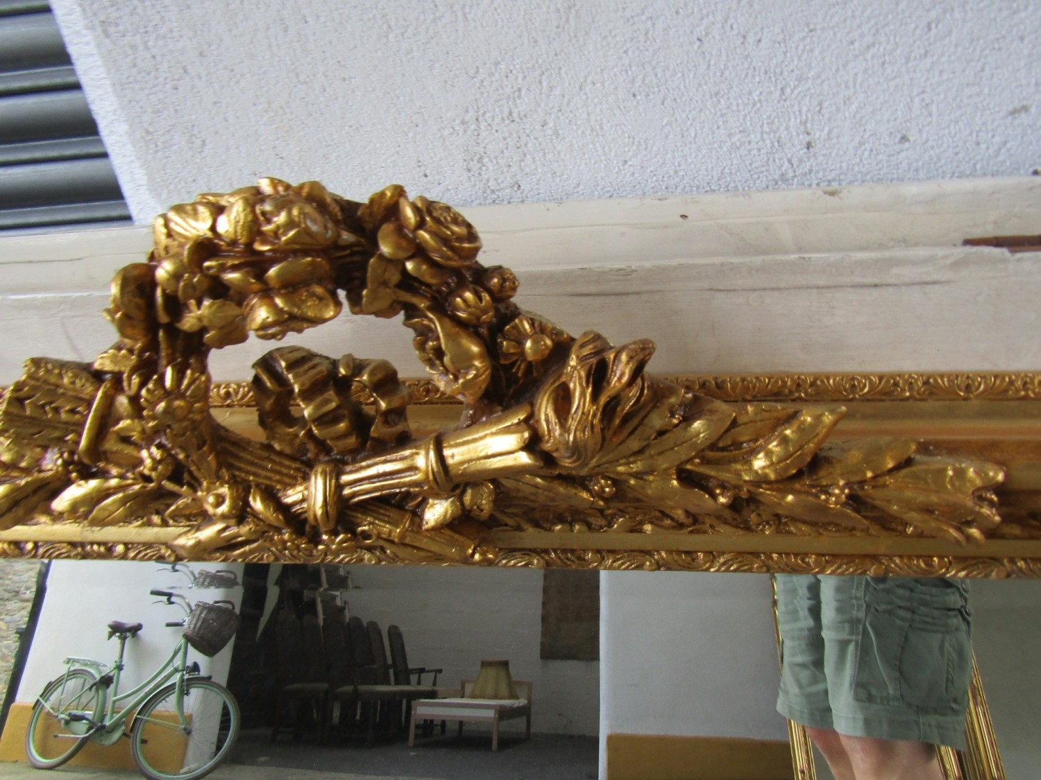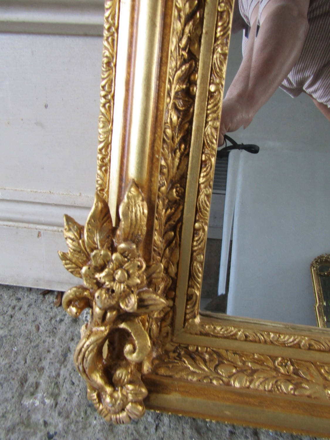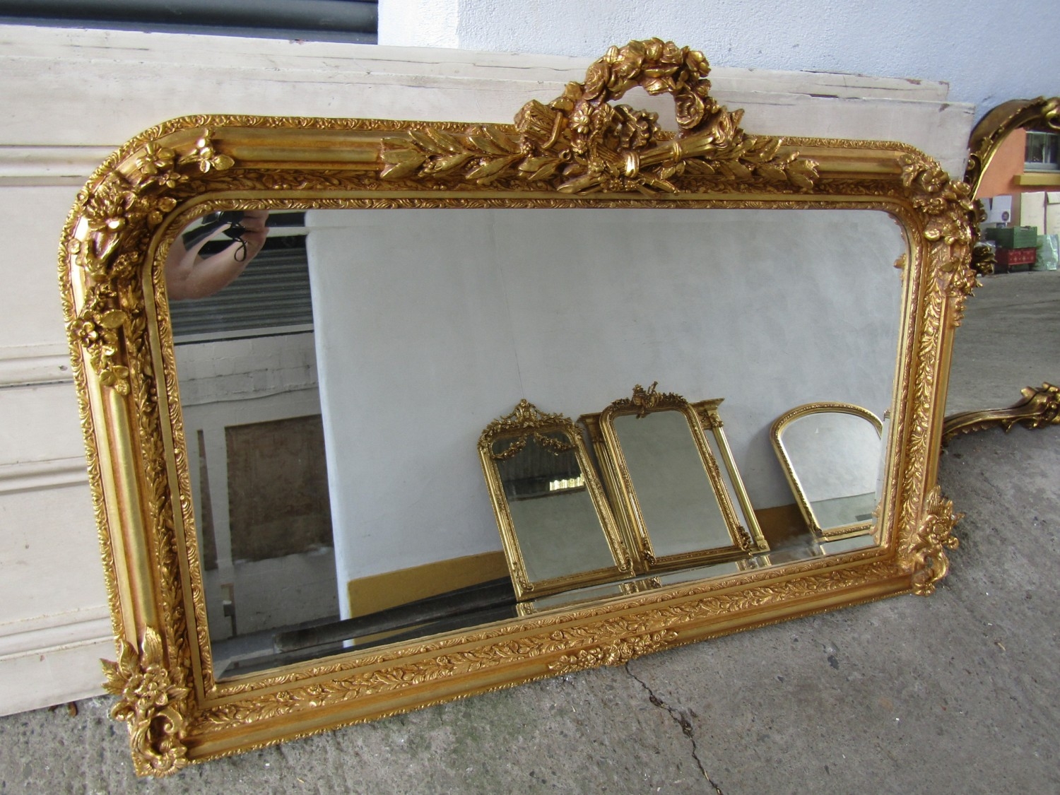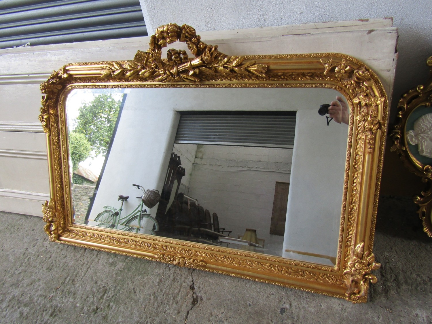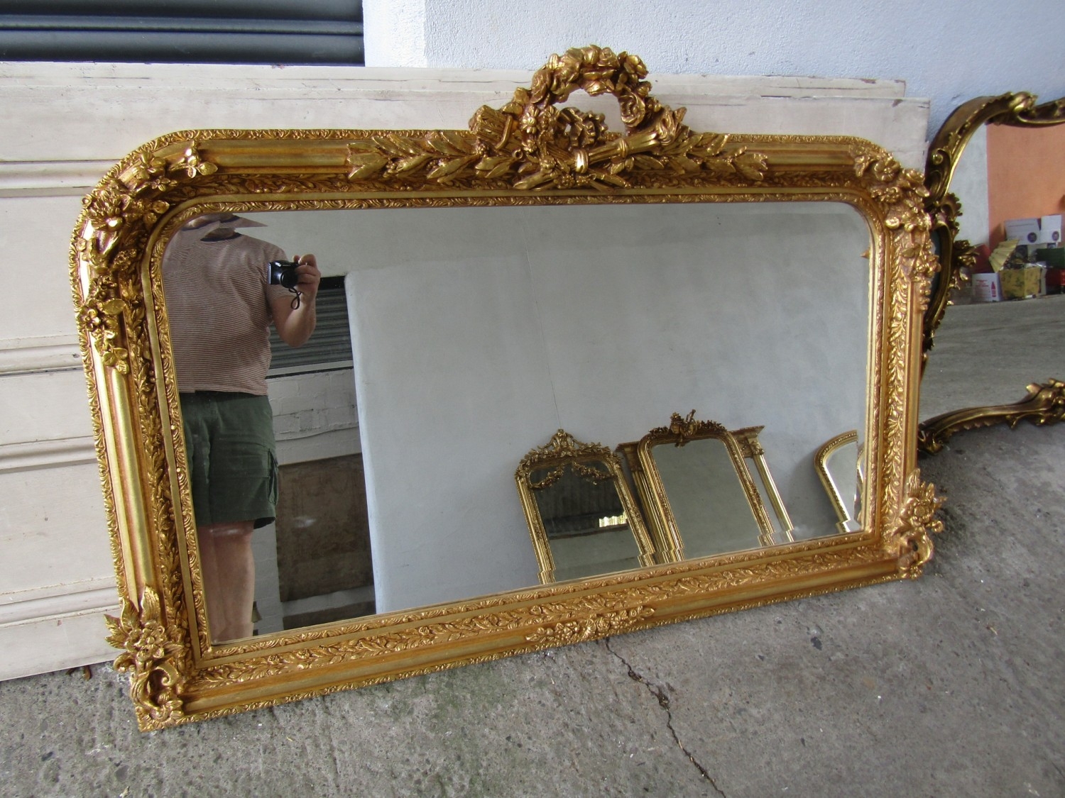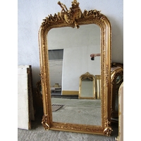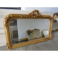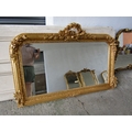 Gilded Rectangular Form Wall Mirror with Upper Carved Decoration Approximately 56 Inches Wide x 2ft 6 Inches High