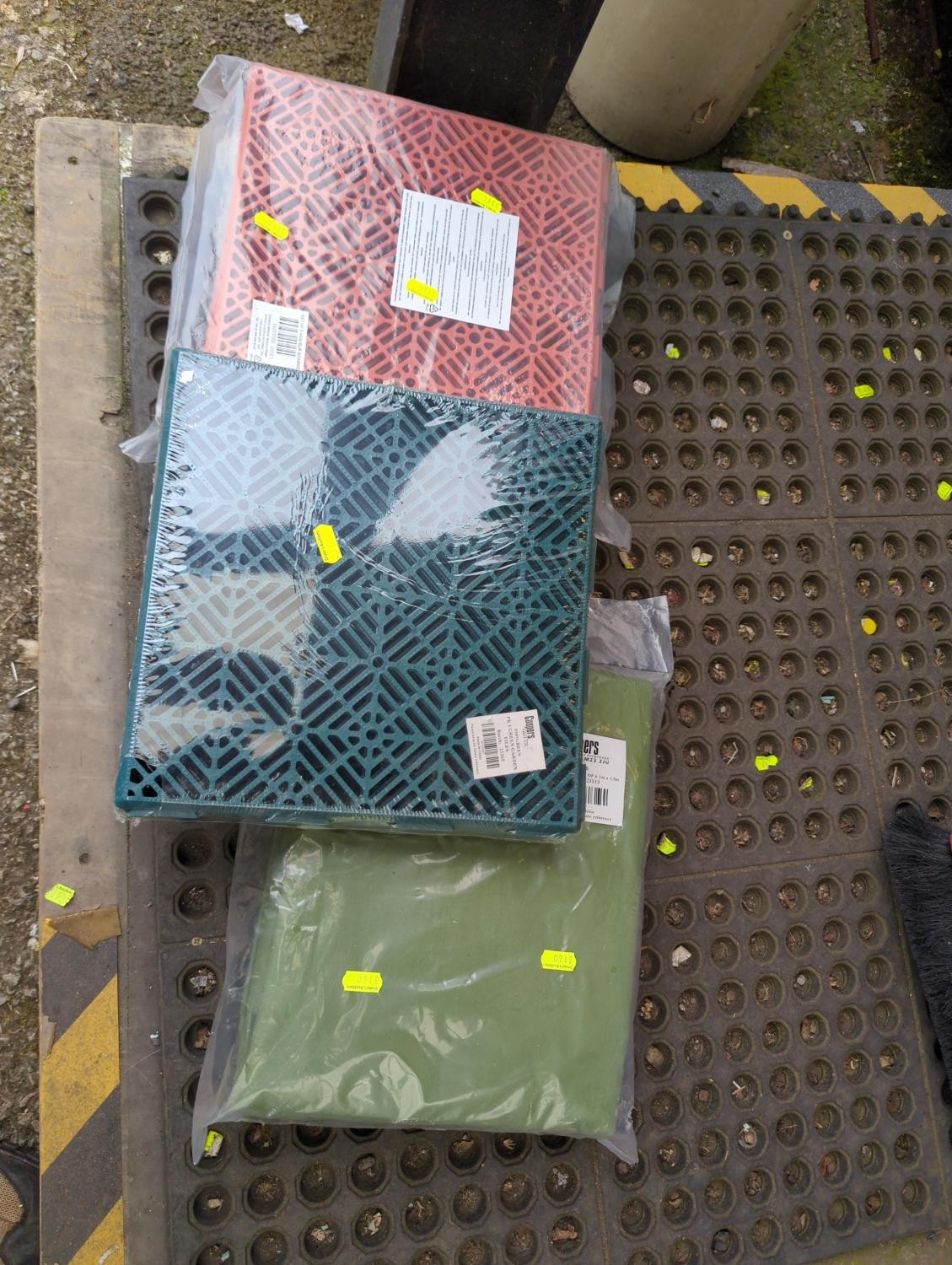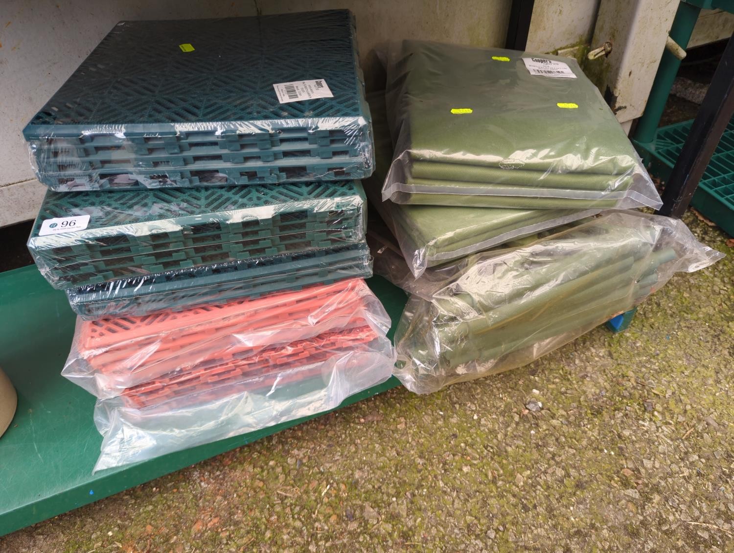 1 x build-up trellis + 2 x bush sack sets of 6: each bag 1m by 1.5m + 2 x sets of 5 non-slip boards + 3 x packs of 5 green plastic garden tiles.