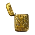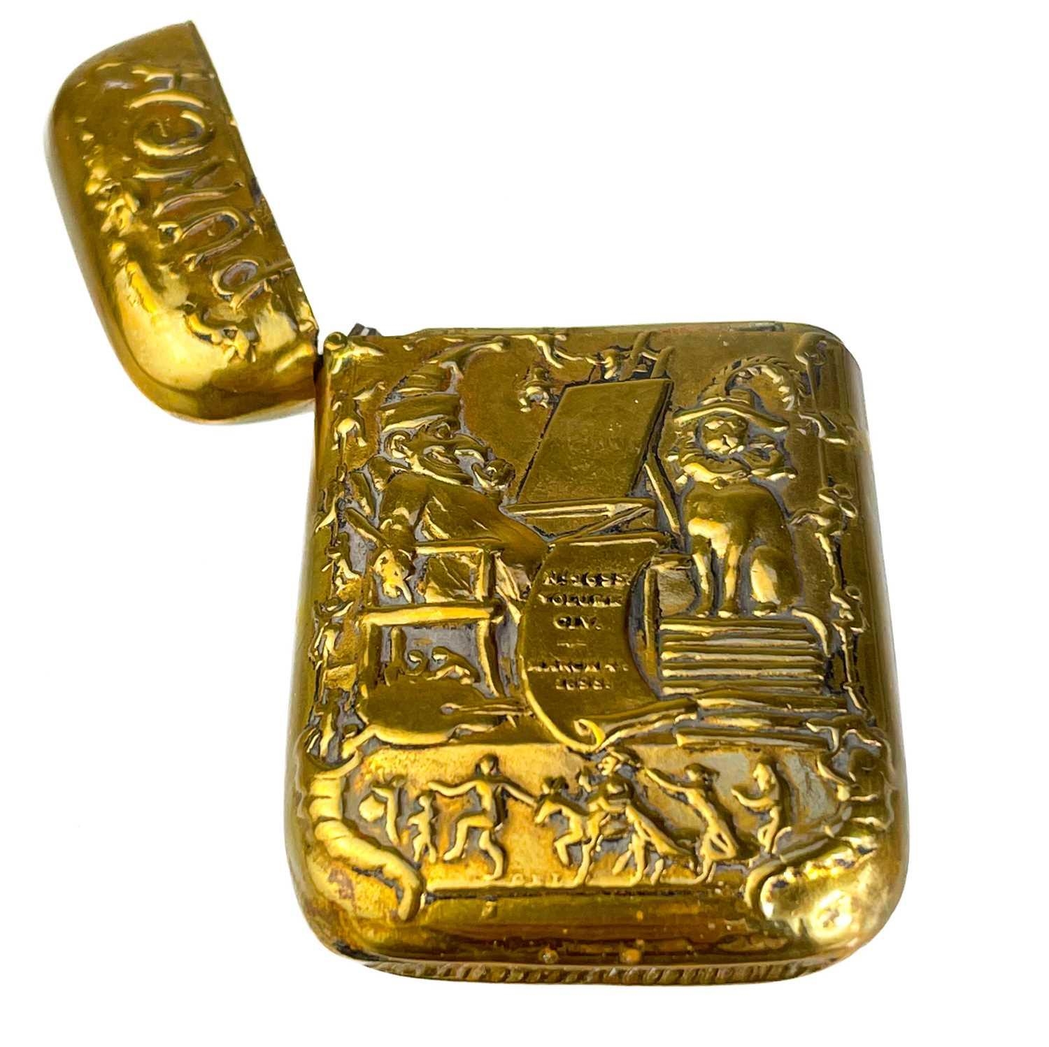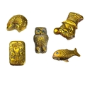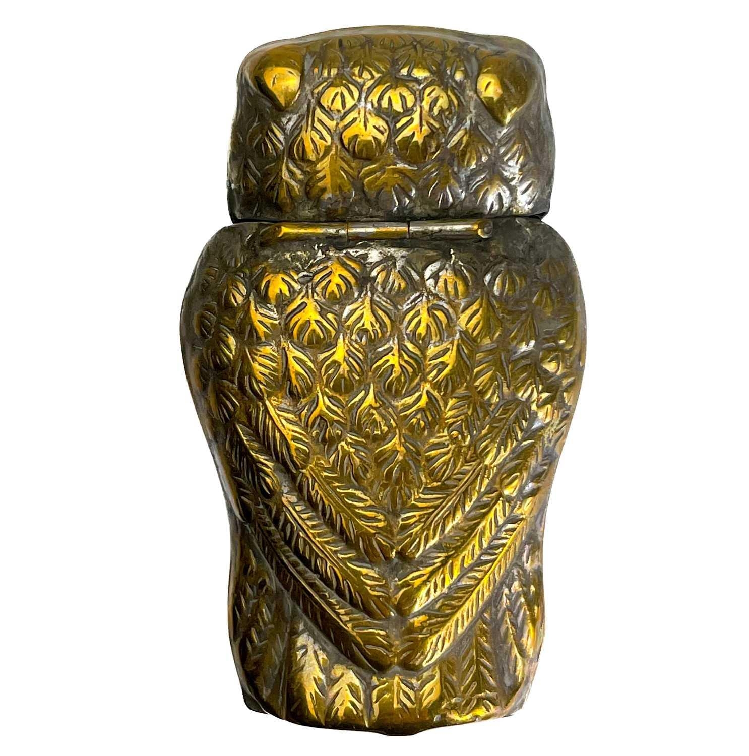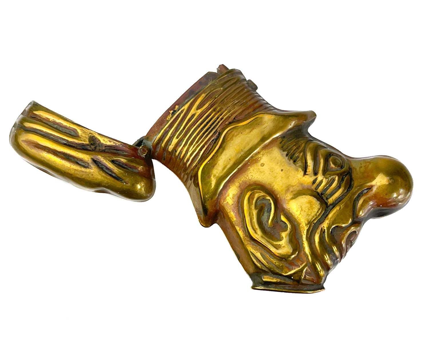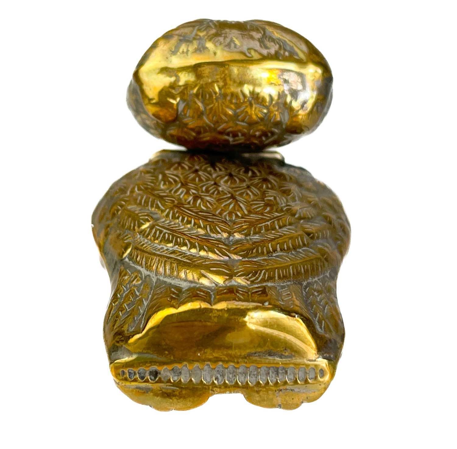 Five Victorian nickel plated brass vesta cases. Comprising: an owl with green glass eyes, a fish with spring operated mouth and glass eyes, an Ally Soper head, a nautilus shell and a Punch example. (5)