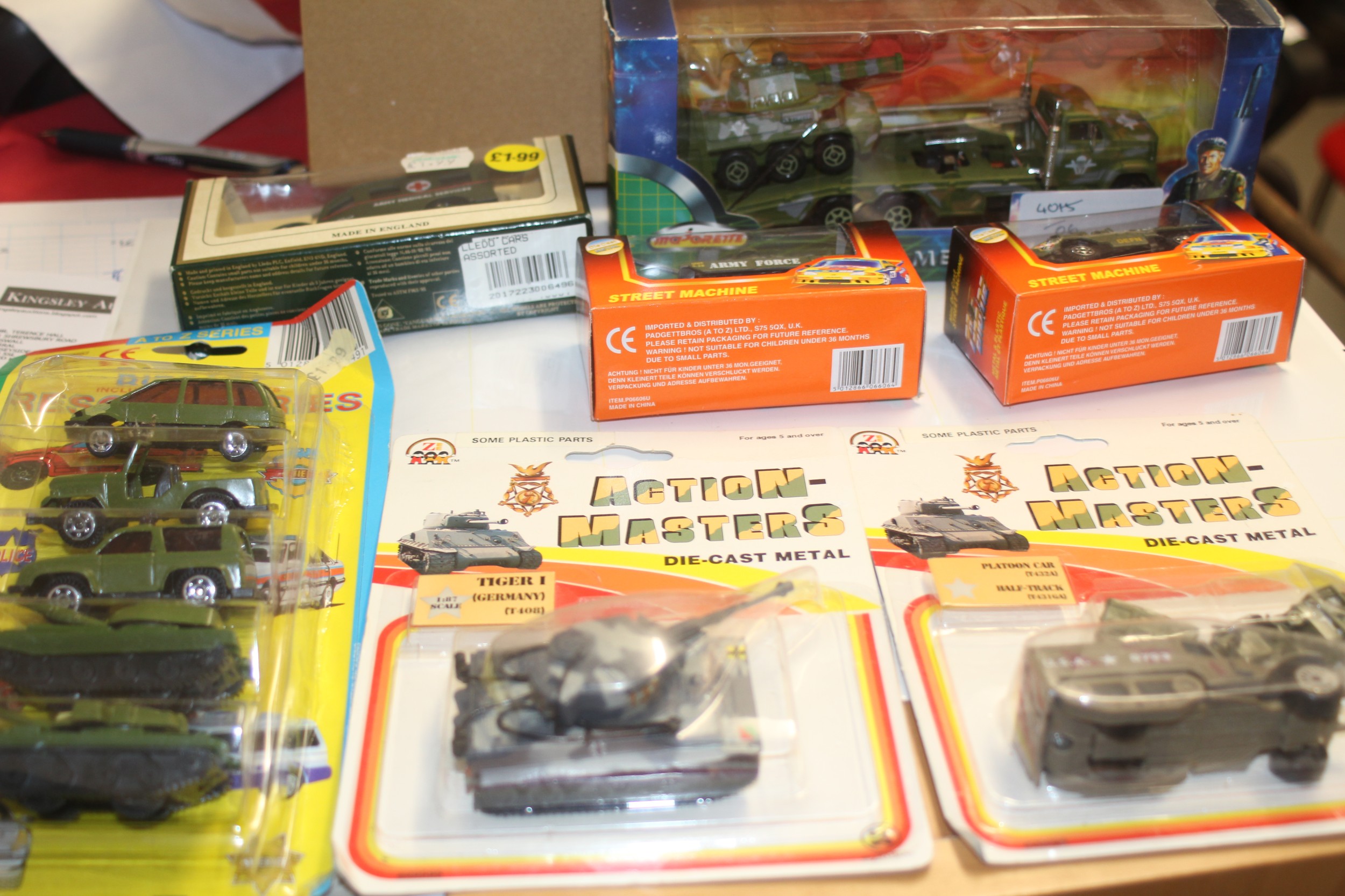 Selection of Children's Diecast Military Toys including Tanks, Jeeps, Artillery pieces