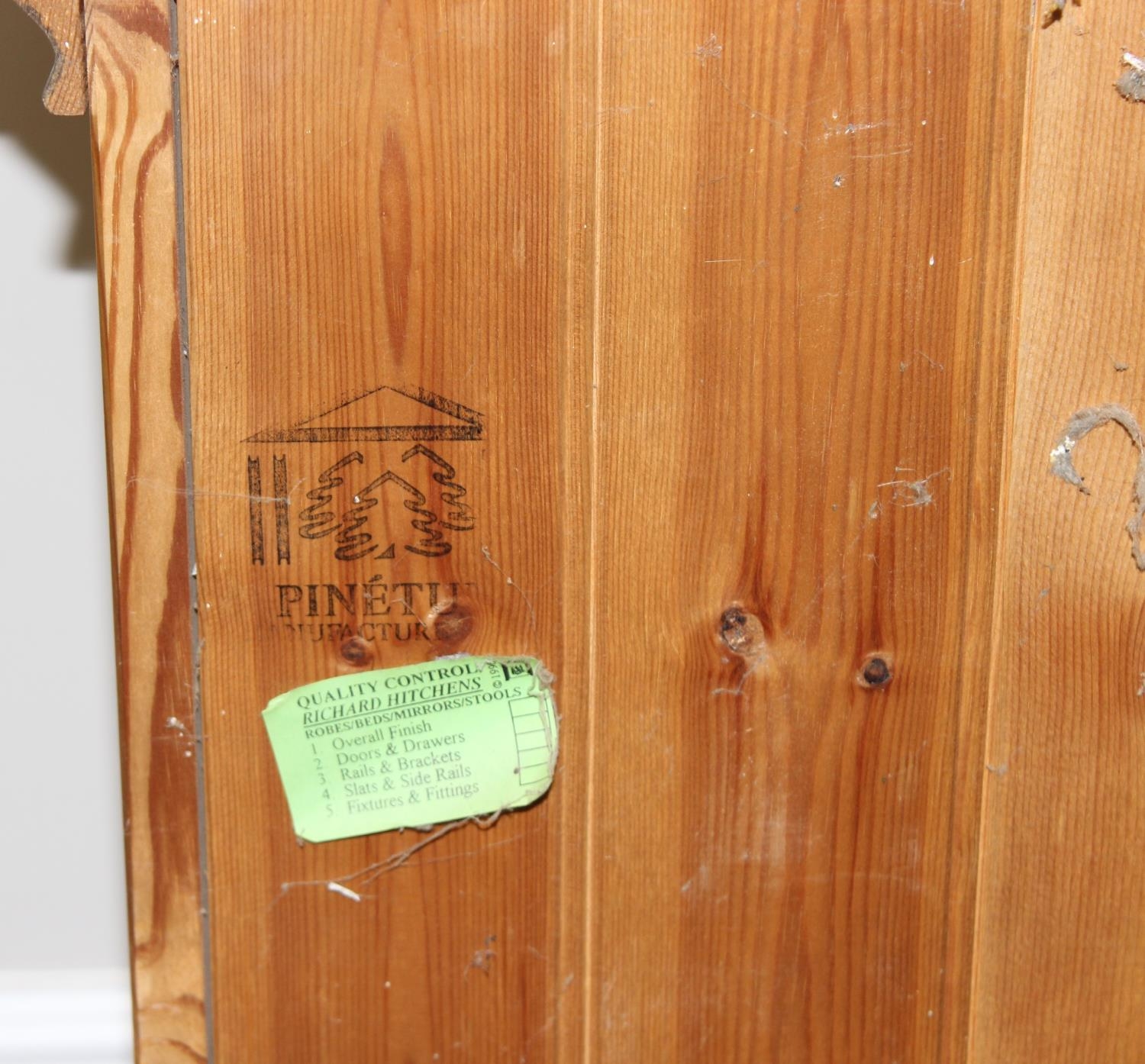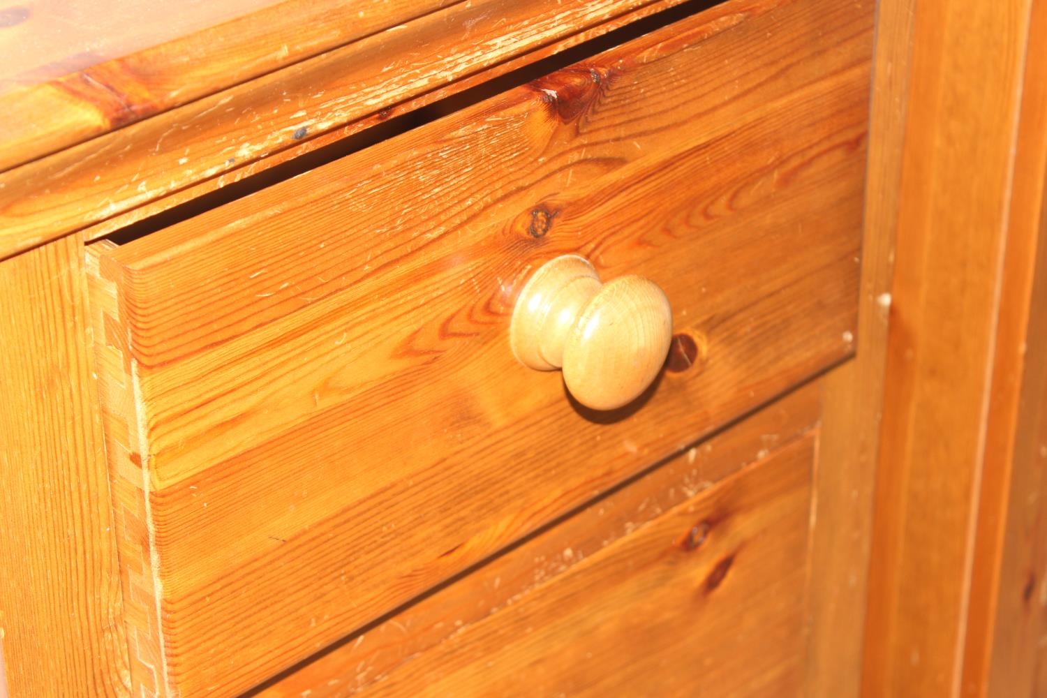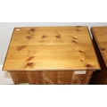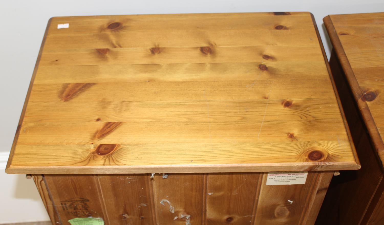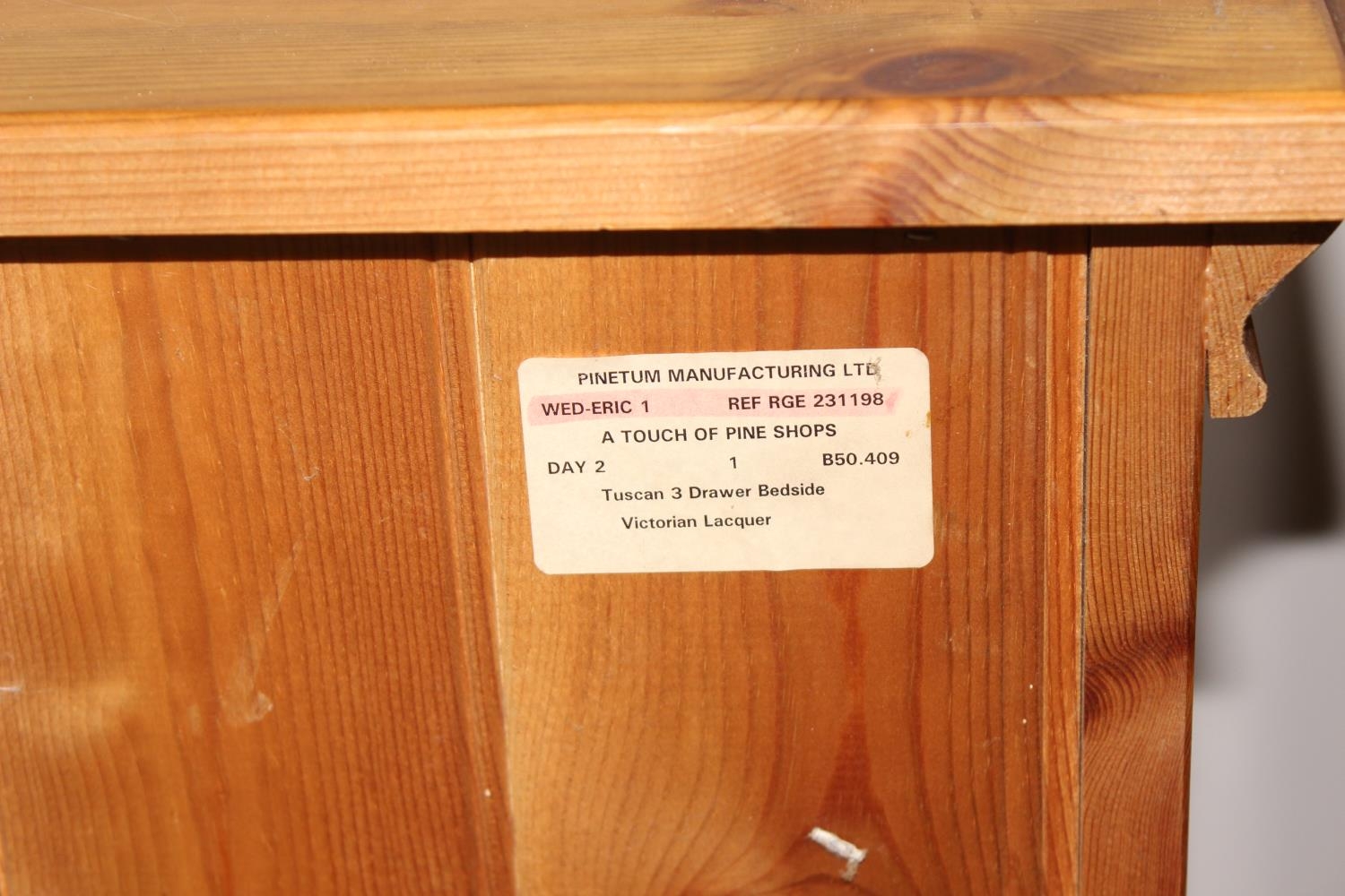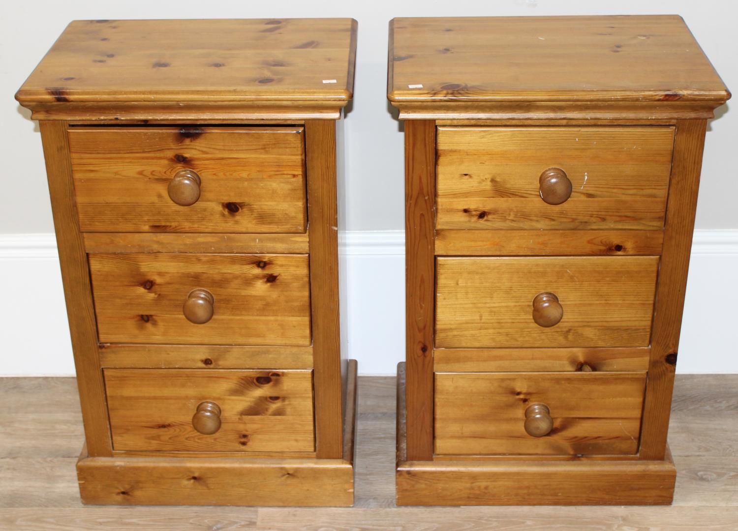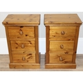 A pair of heavy modern pine 3 drawer bedside cabinets, each approx 53cm wide x 38cm deep x 85cm tall
