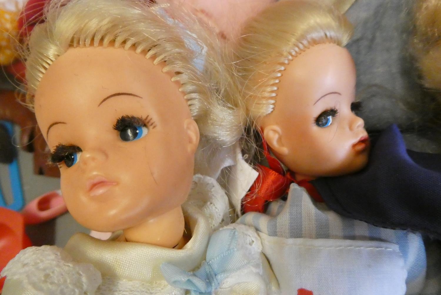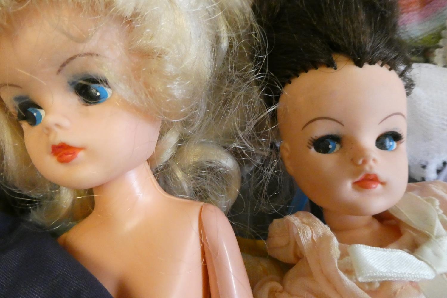 Mixed conditon, needs viewing to really see the clothing. All the Sindy dolls have knees that "pop" as you would expect, one of them flexes forward as well. Some cleaning needed.