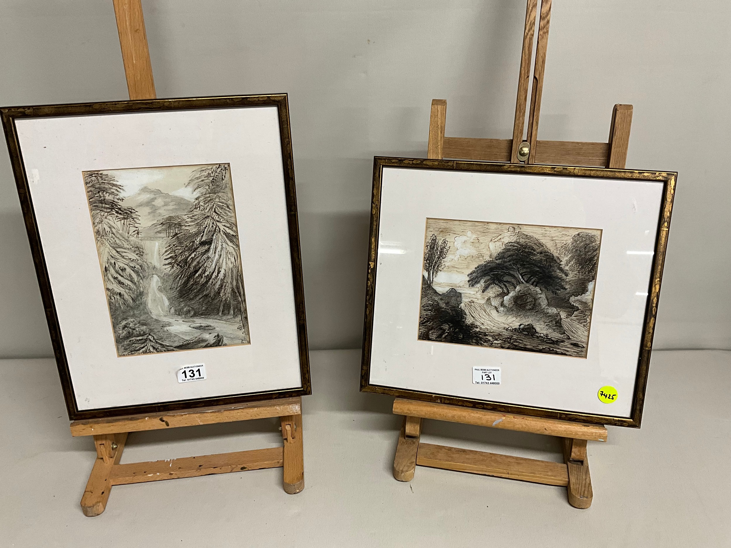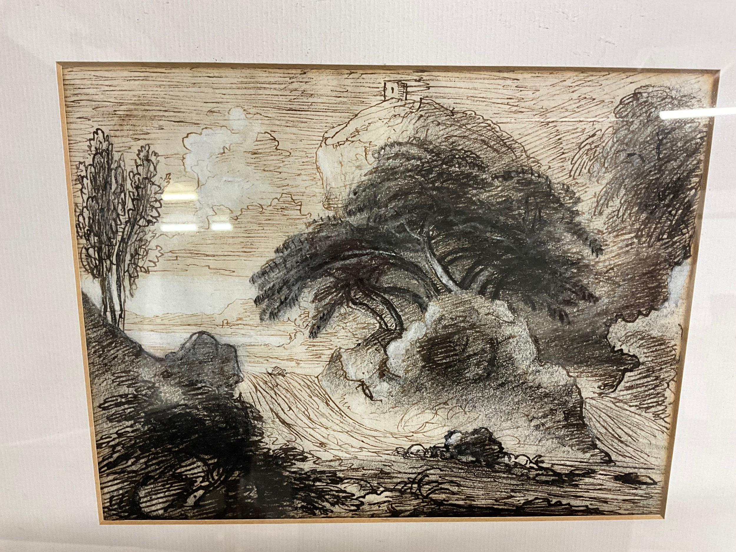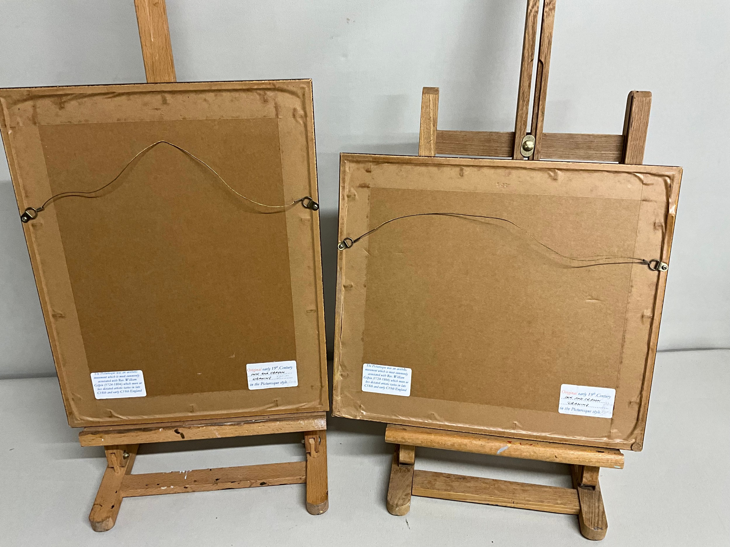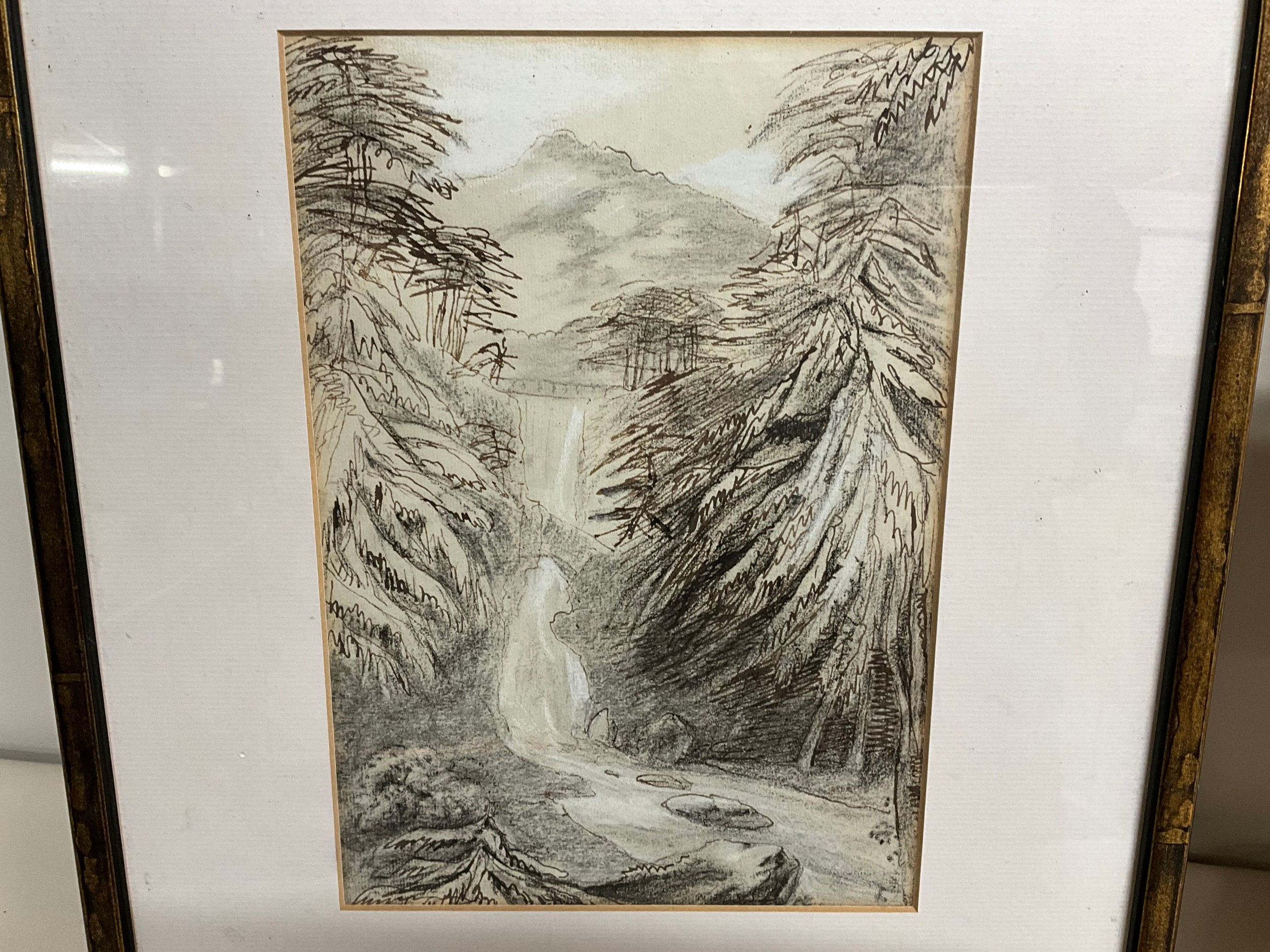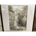 2 INK & CRAYON FRAMED DRAWINGS 15 X 13" AND 16 X 13"