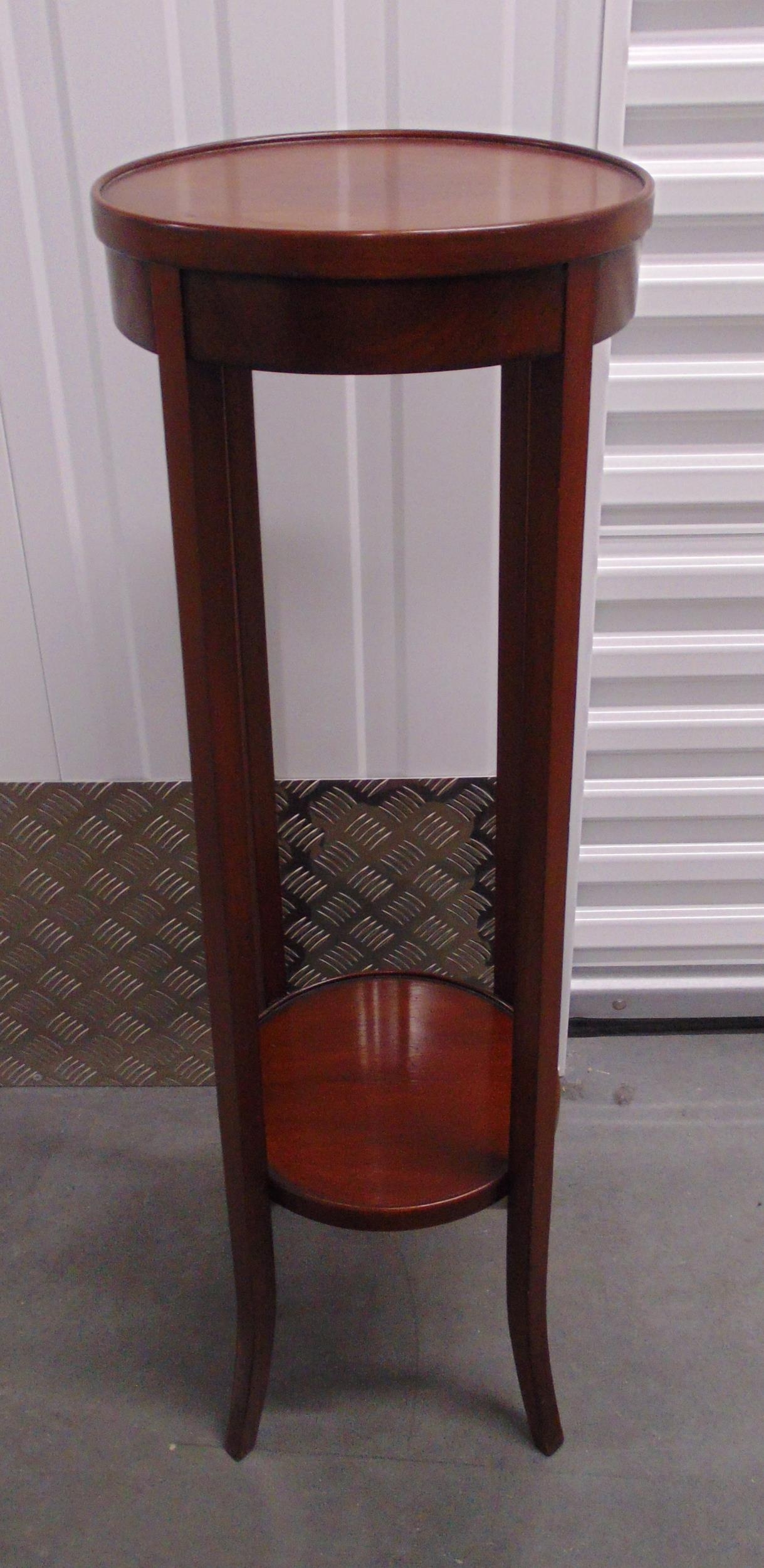 An early 20th century mahogany circular plant stand on four tapering outswept legs, 100 x32.5cm