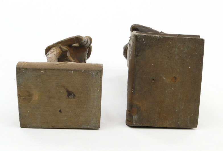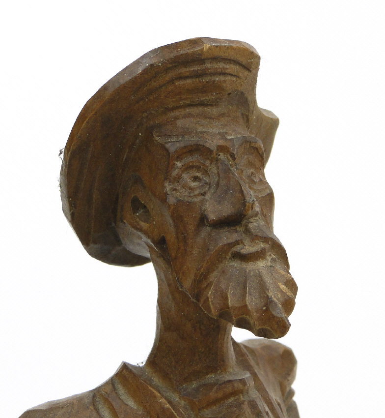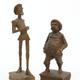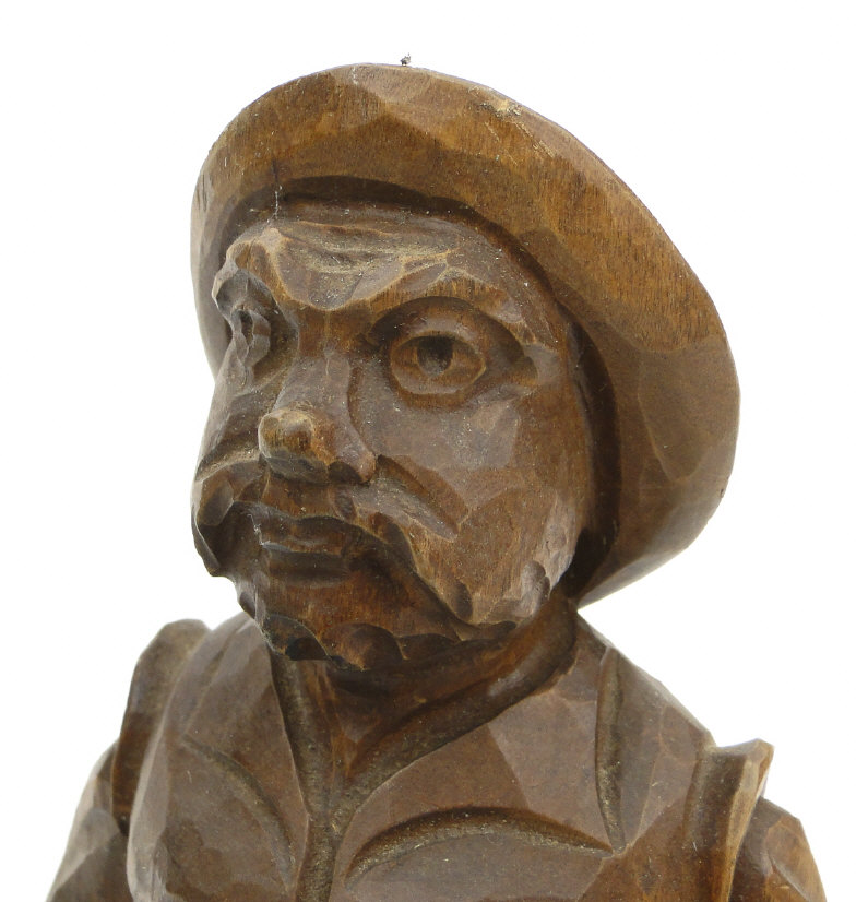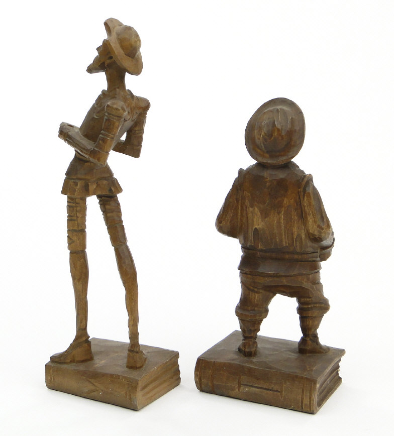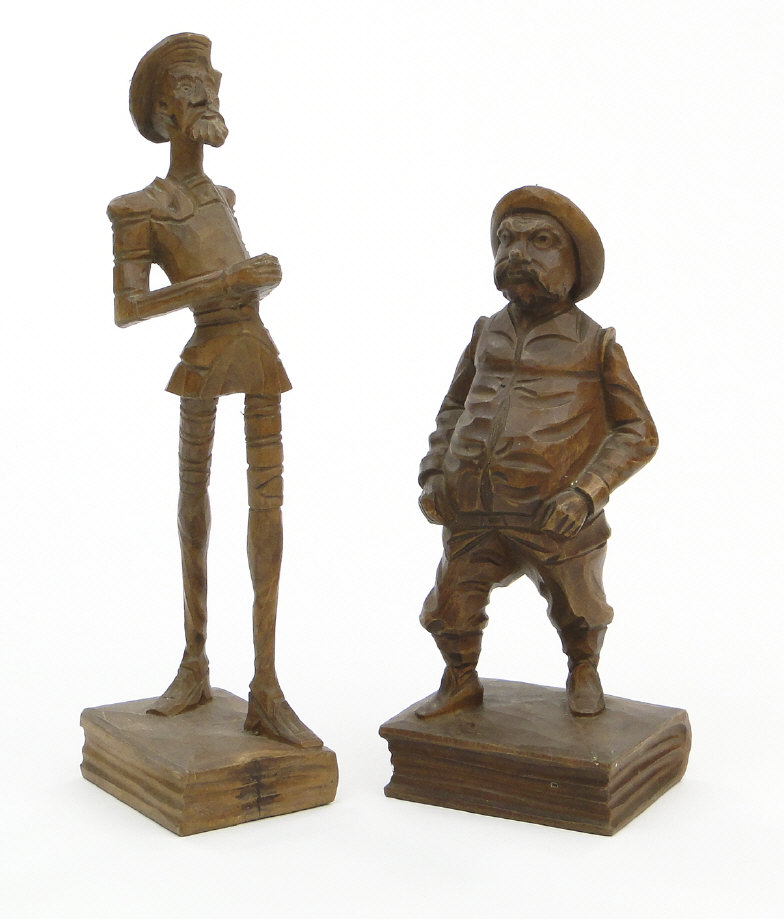 Two naive carved wood figures - one modelled as Don Quixote, the larger 26cm high