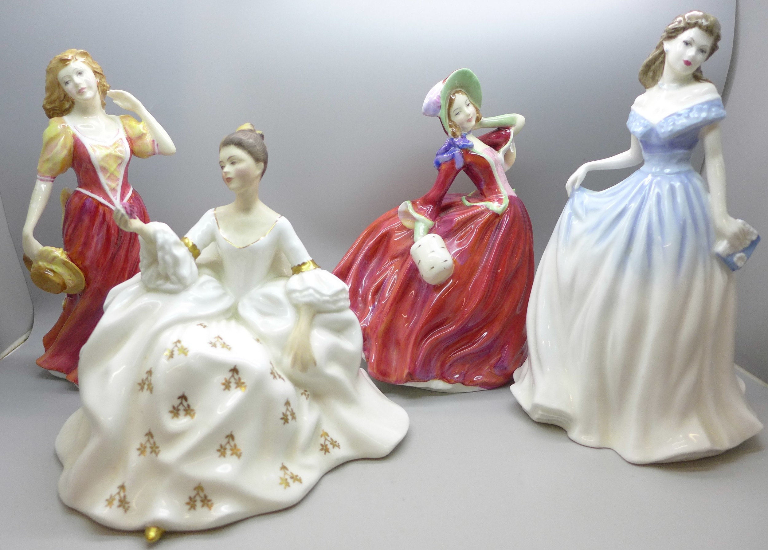 Four Royal Doulton figures, My Love, Charlotte, Strolling and Autumn Breezes *Not for Posting and Packing*