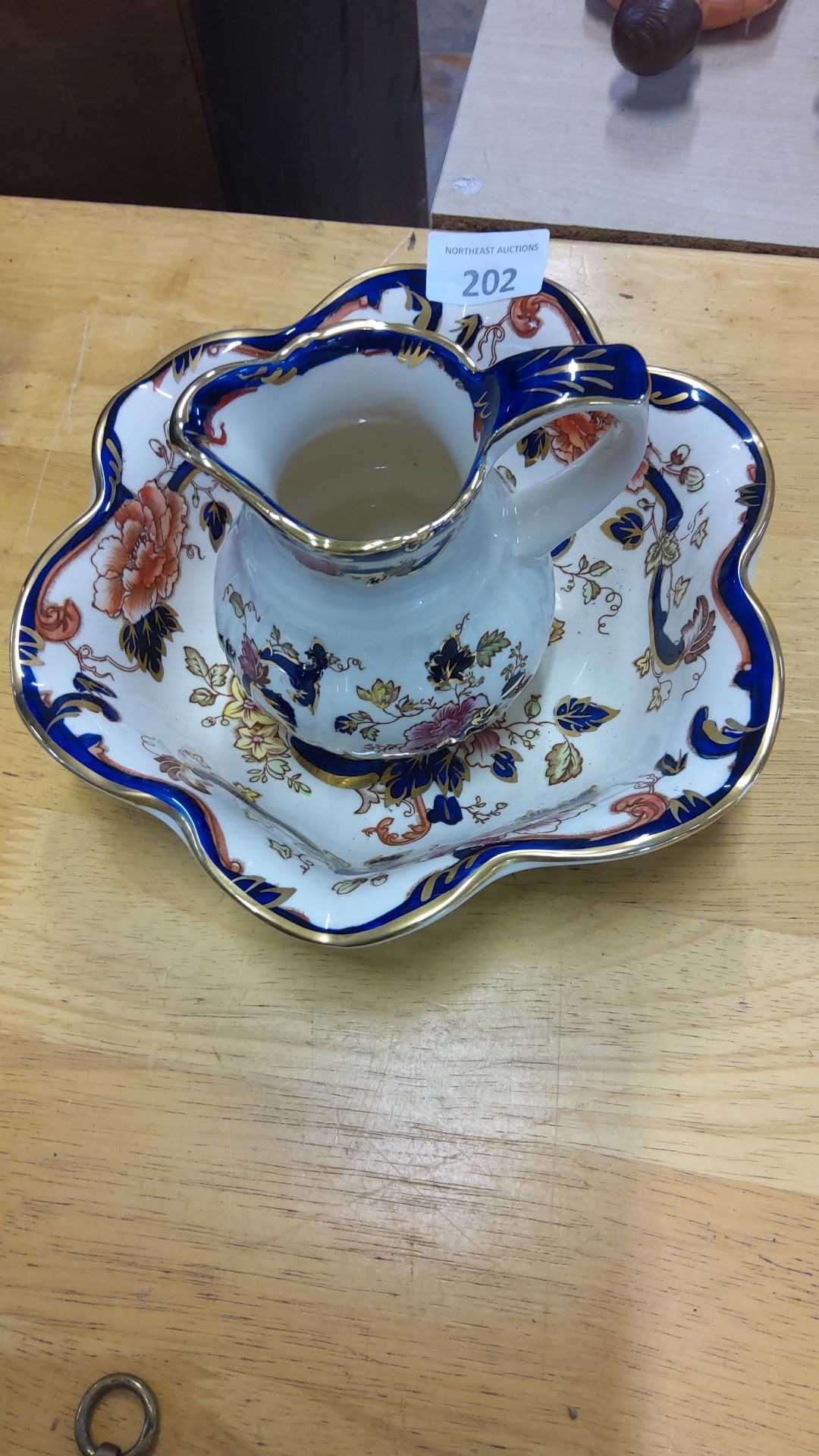 Mason's Ironstone jug and bowl mandalay set, featuring vibrant floral motifs, printed and hand-painted, from the 20th century, England.