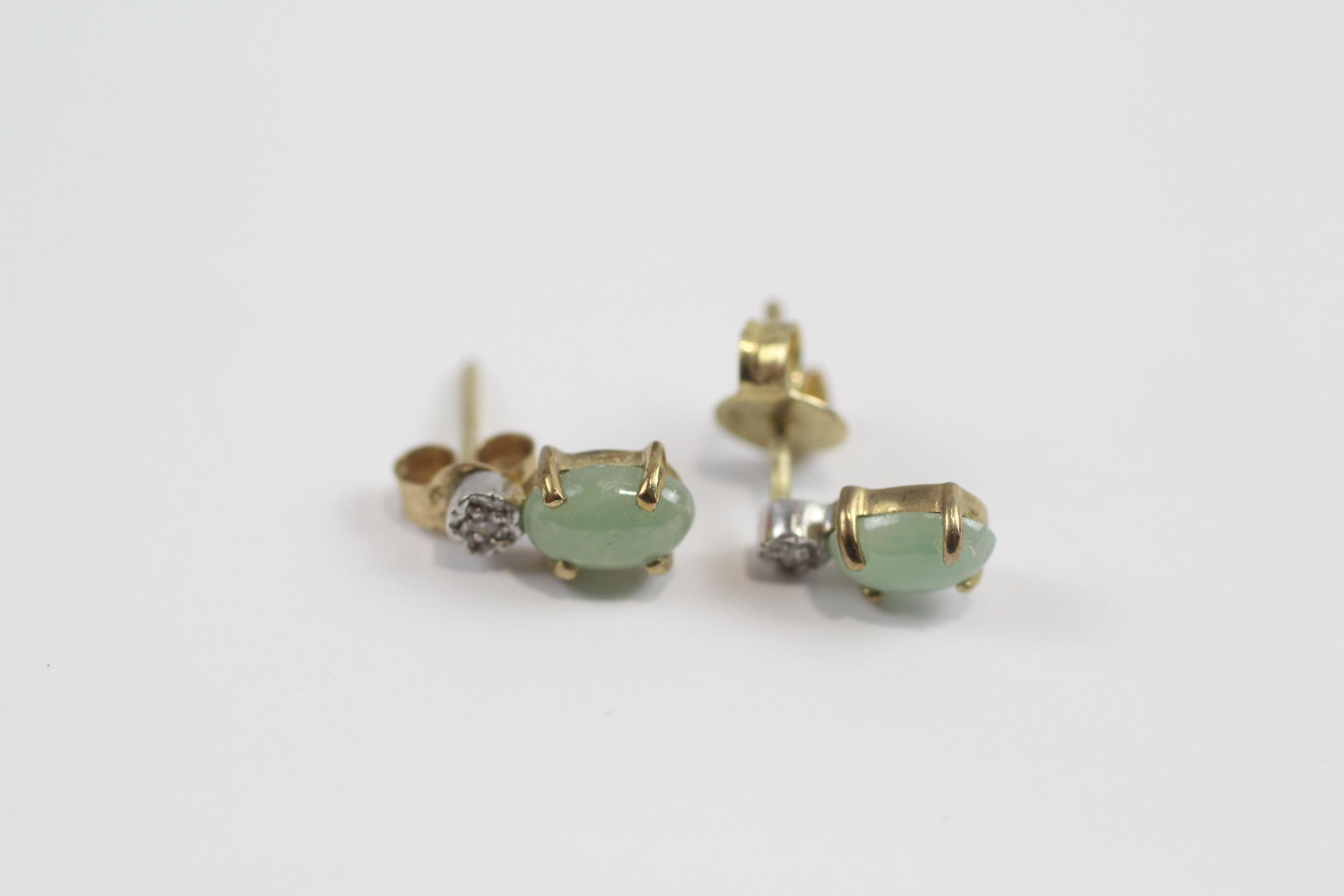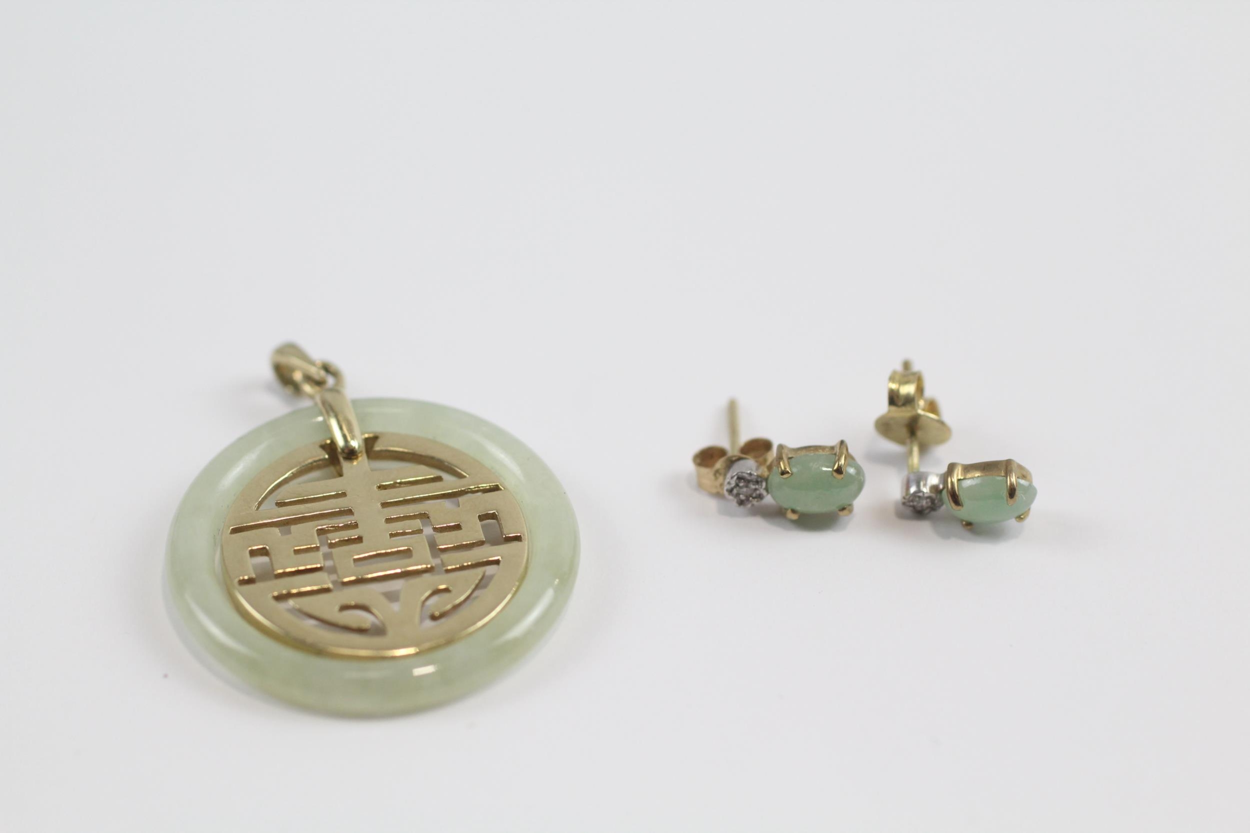 2 X 9ct Gold Jade Pendant & Stud Earrings Inc. Dia (4.8g)