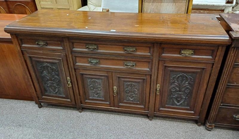 LATE 19TH CENTURY OAK SIDEBOARD WITH 3 DRAWERS OVER 4 PANELS DOORS - 184 CM LONG
