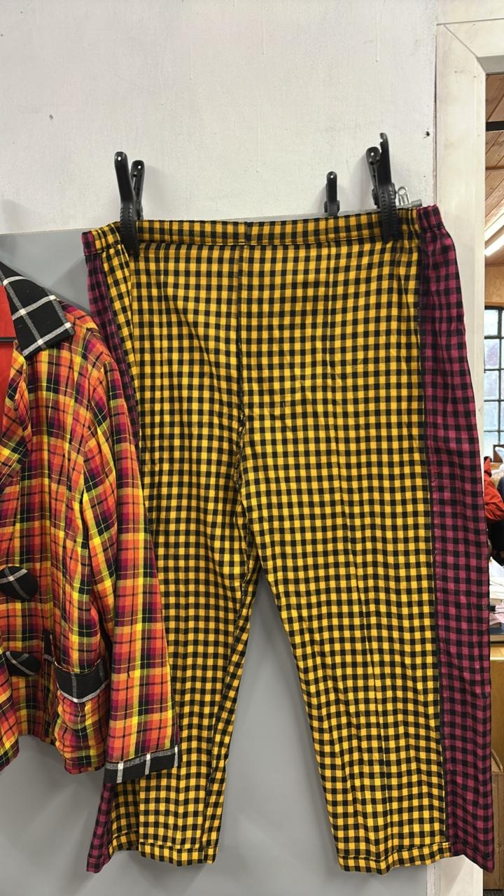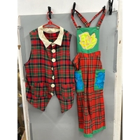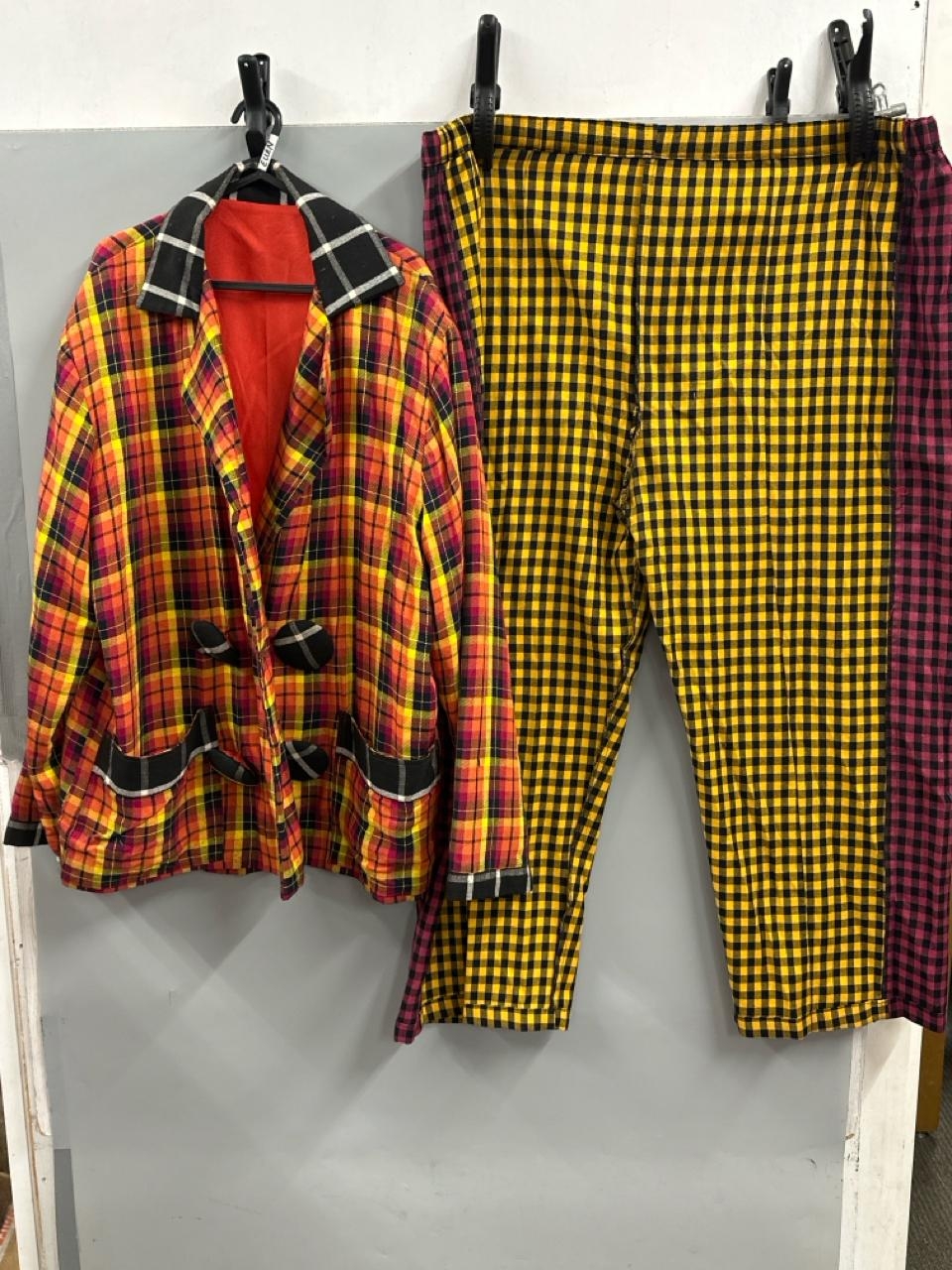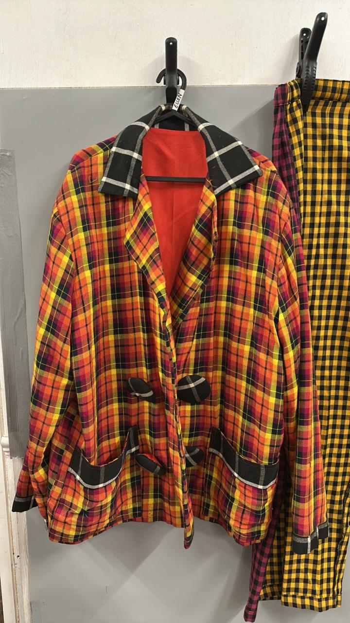 Stage worn clown costume including tartan jacket and checkered trousers / Rail 4