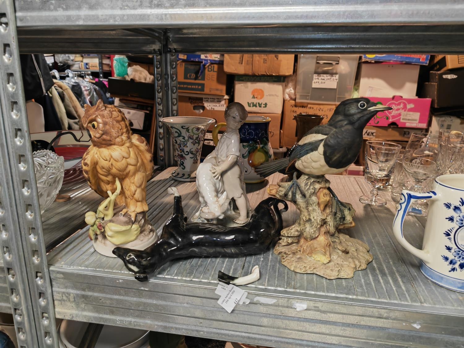 2 Bird Ornaments Magpie And Owl, Greyhound Dog Leg Needs Glueing Back And A Lady Boy With Ram A/F