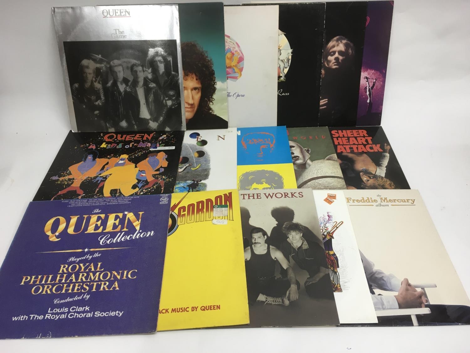 A collection of Queen and related LPs and 12inch singles including 'A Night At The Opera', 'A Day At The Races', 'Sheer Heart Attack' and others.