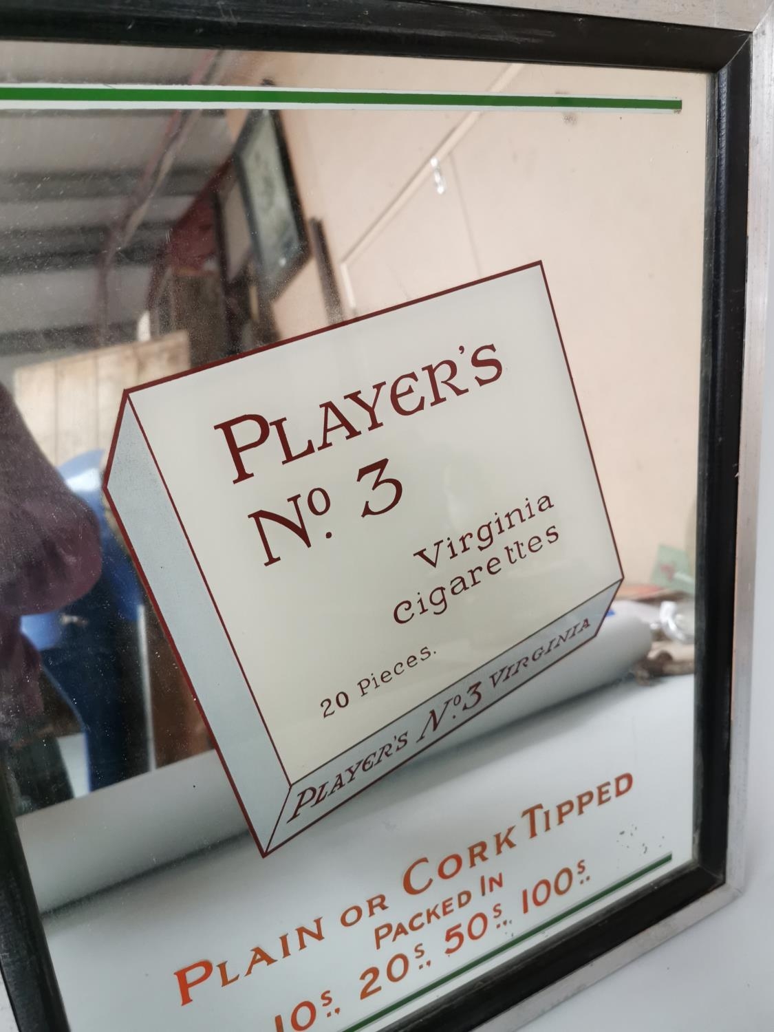 Player's No 3 Virginia Cigarettes advertising mirror. { 57cmH X 47 cmW }.