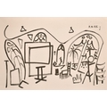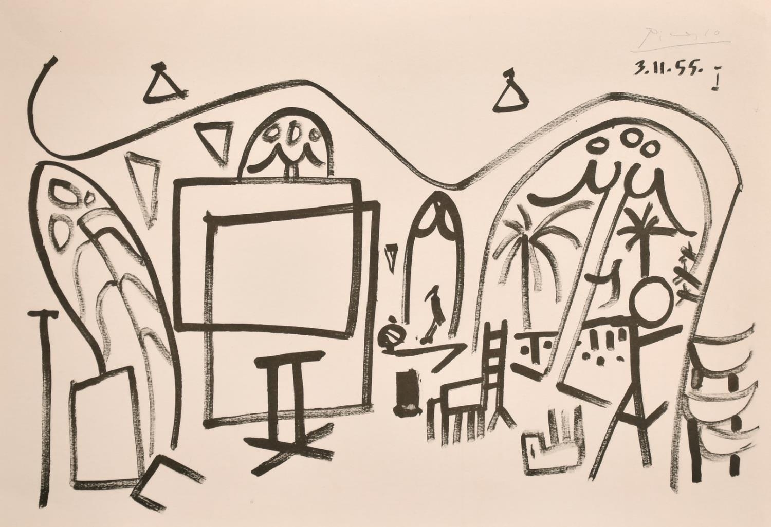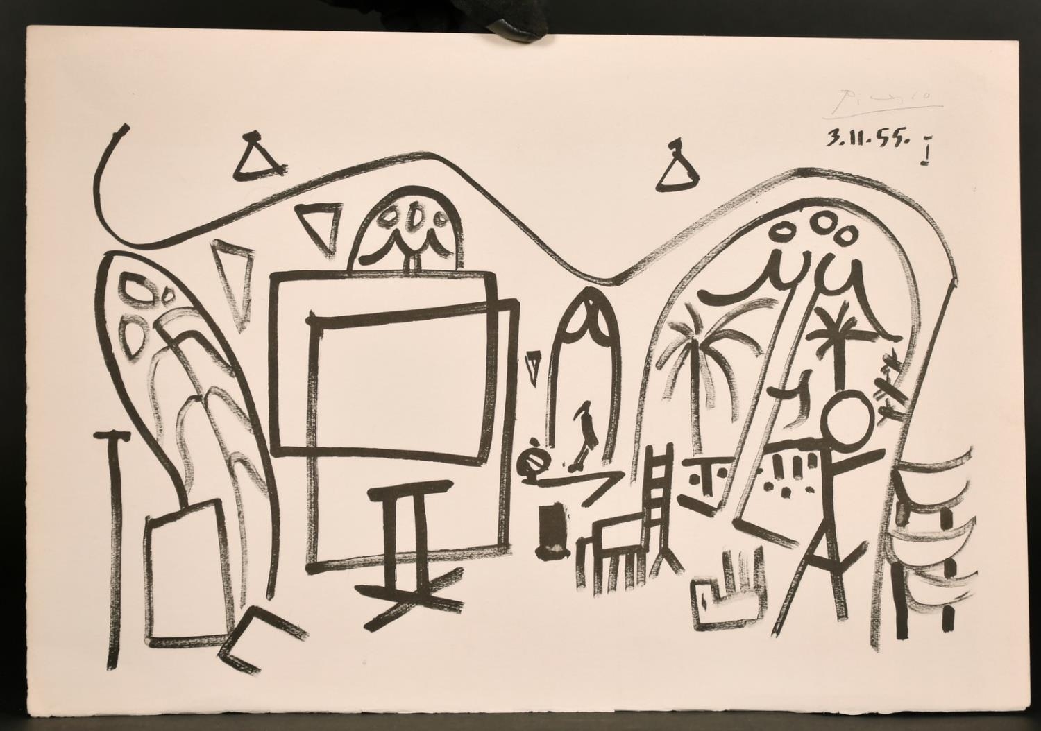 After Picasso circa 1955, 'From the Carnet Californie, L'Atelier de la Californie Technik', printed by Mourlet, bears signature, 12" x 18".