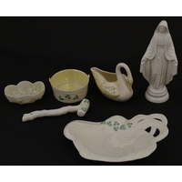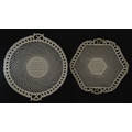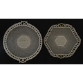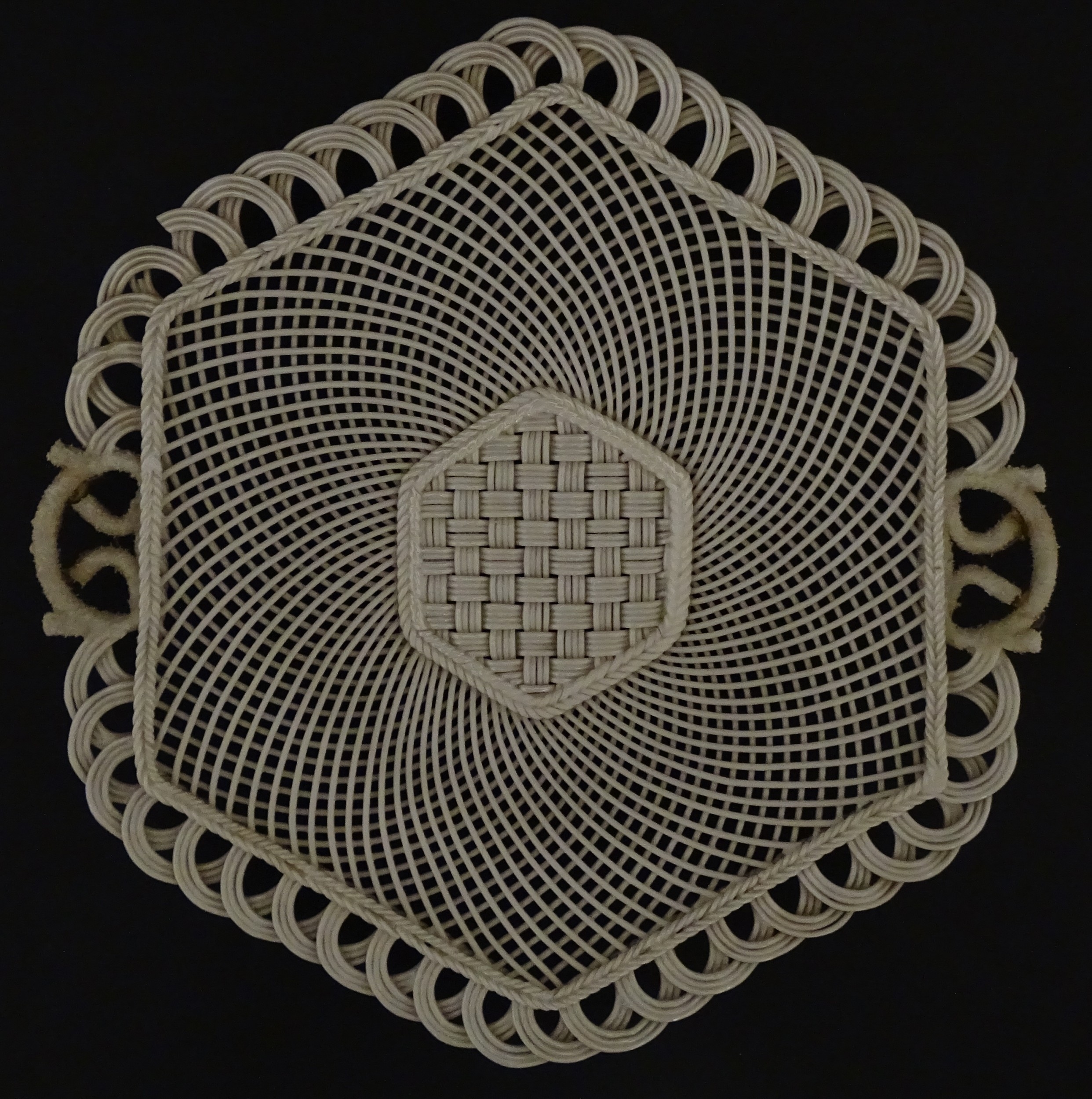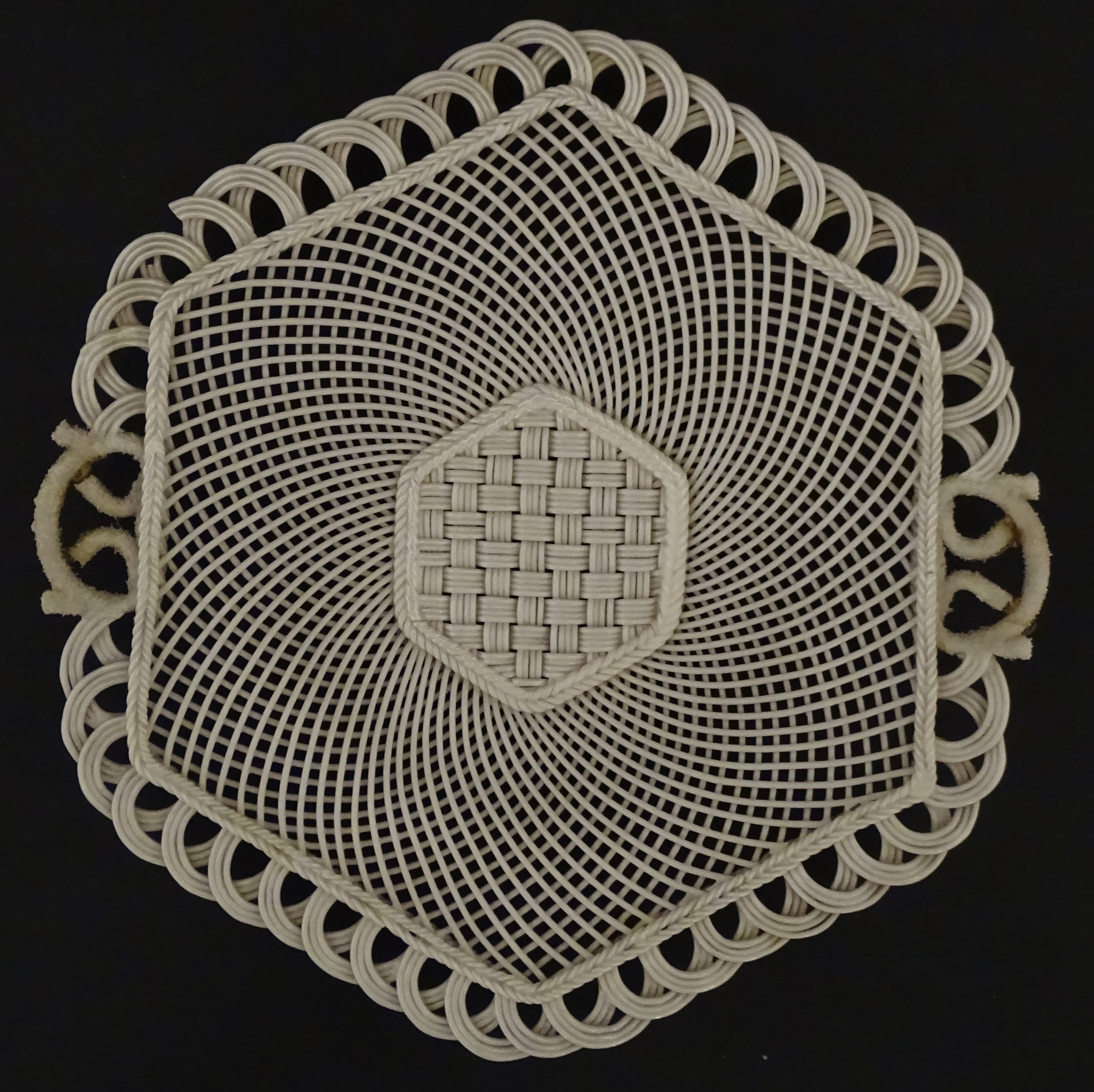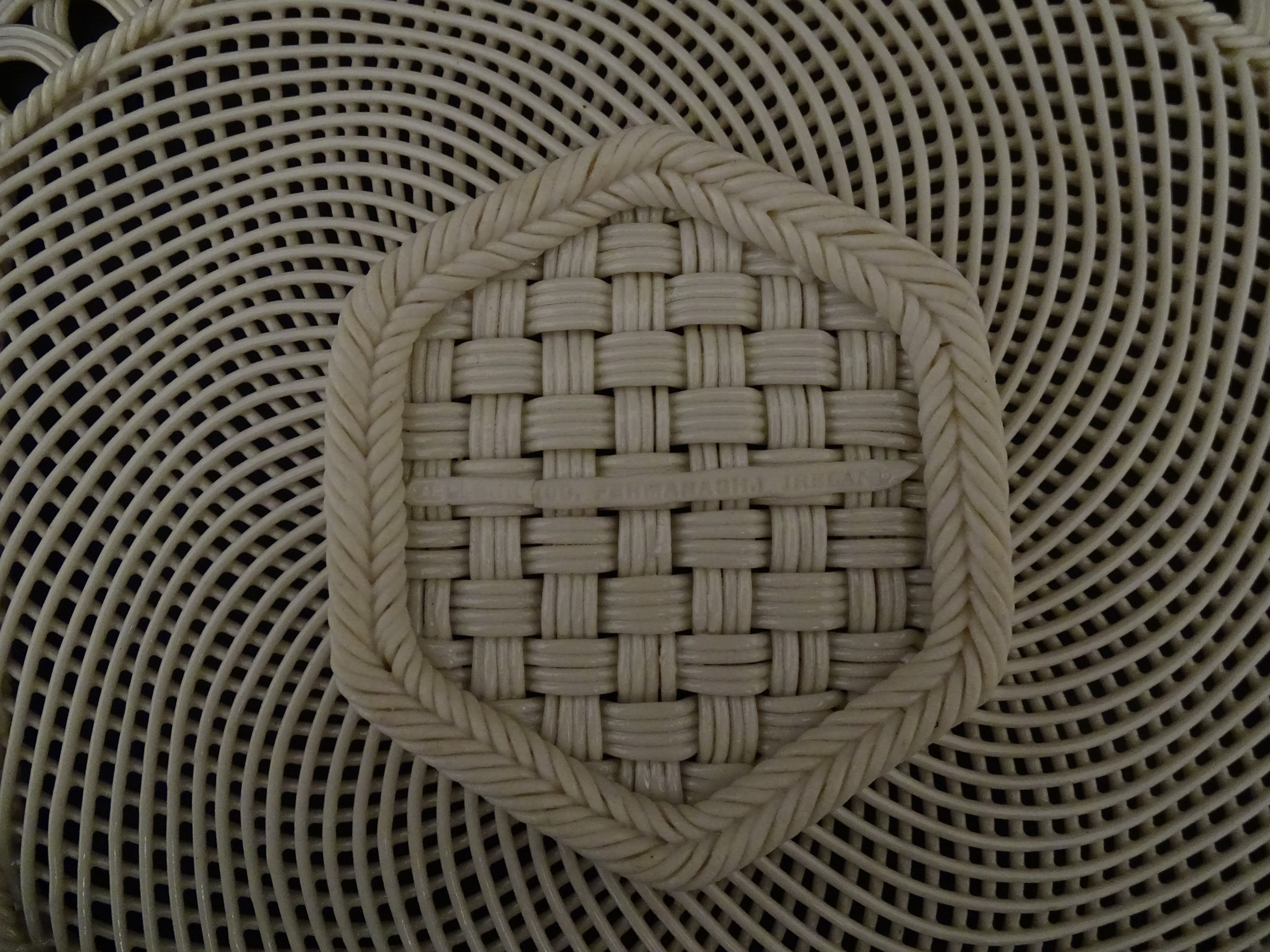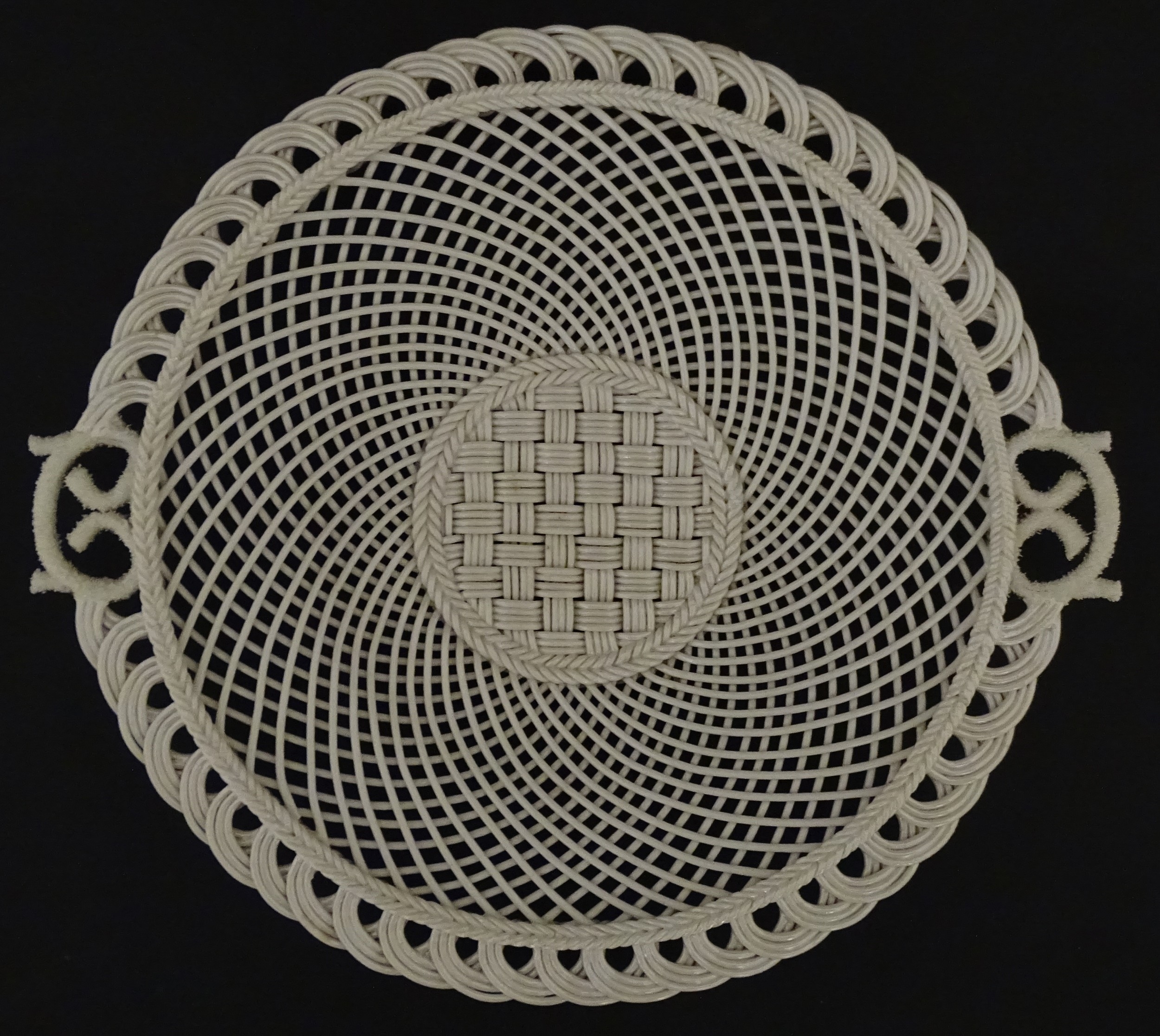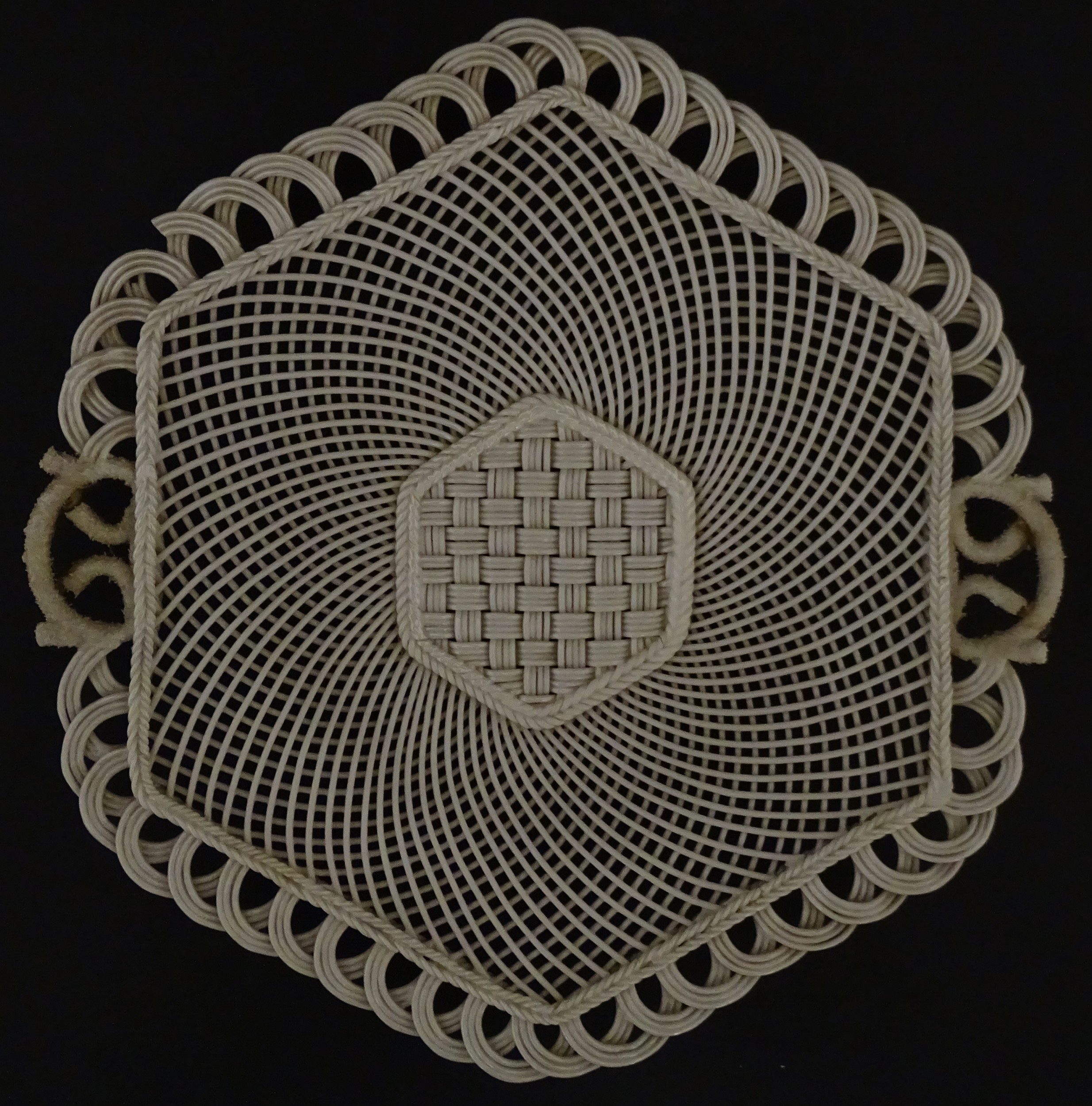 Two Belleek four strand basket weave cake plates. Impressed marks under. Largest approx. 11 1/2" wide (2)