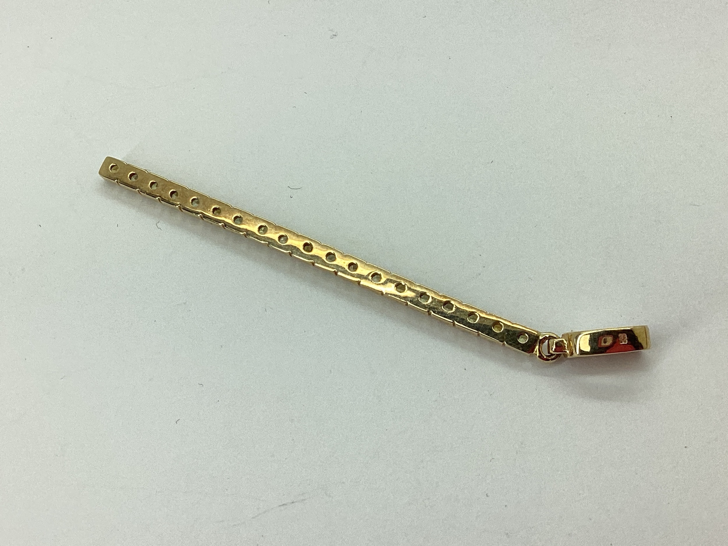 A Modern Stone Set Elongated Drop Pendant, of uniform design, claw set throughout, 6.4cm long, stamped "375". [127628]