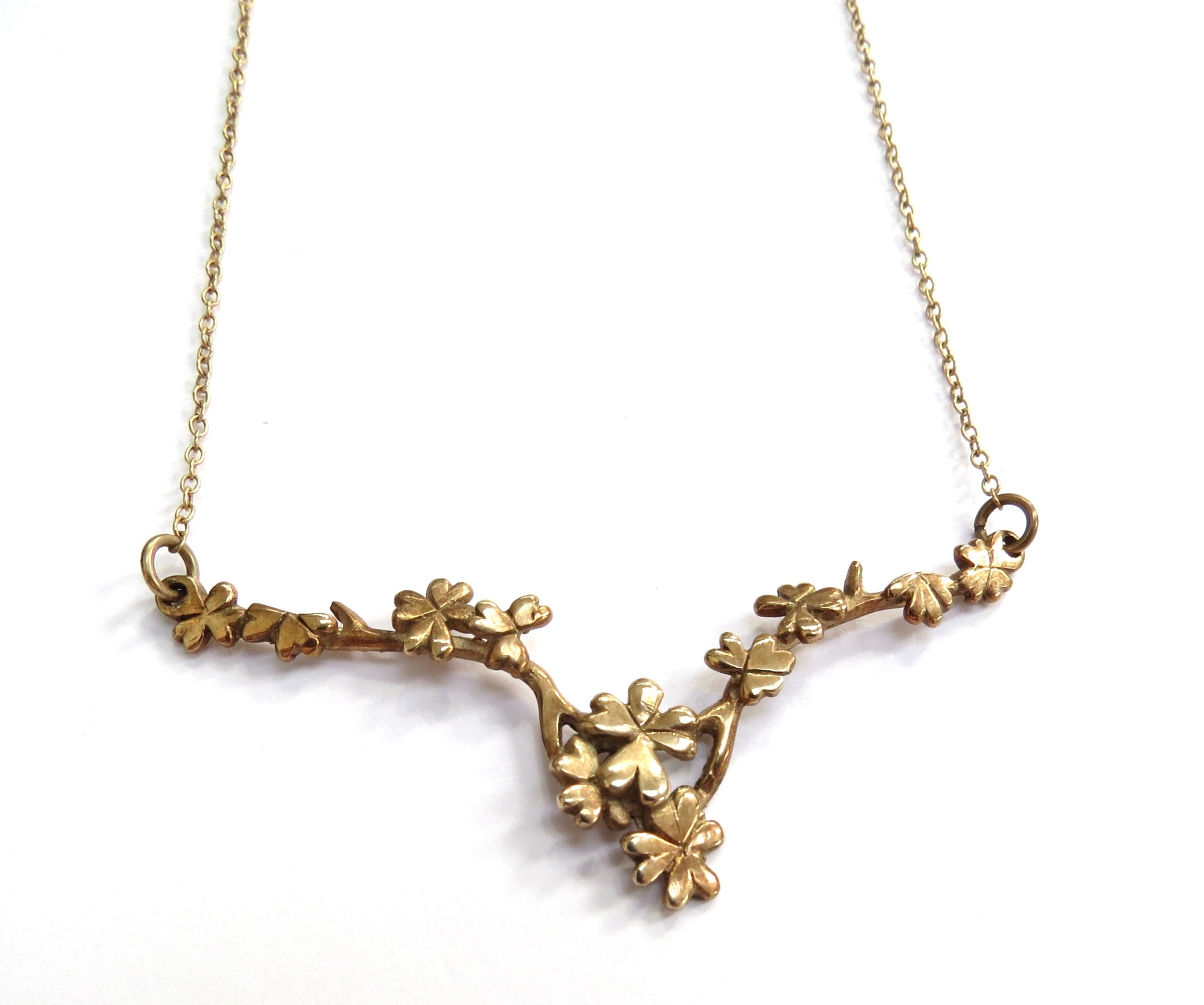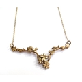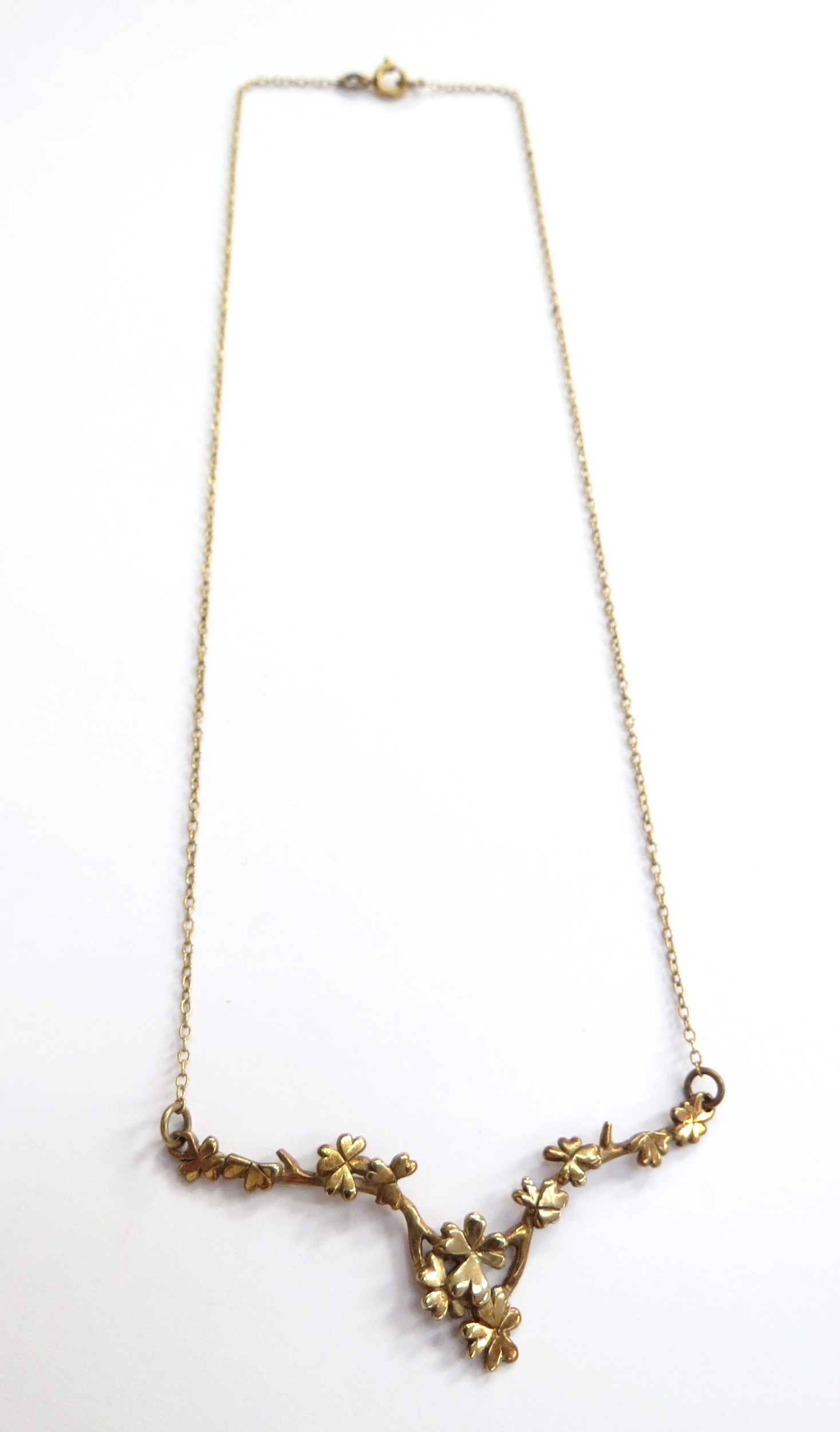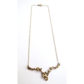 A 9ct gold necklace with a blossoming branch design bar to centre, 44cm long, 4.4g