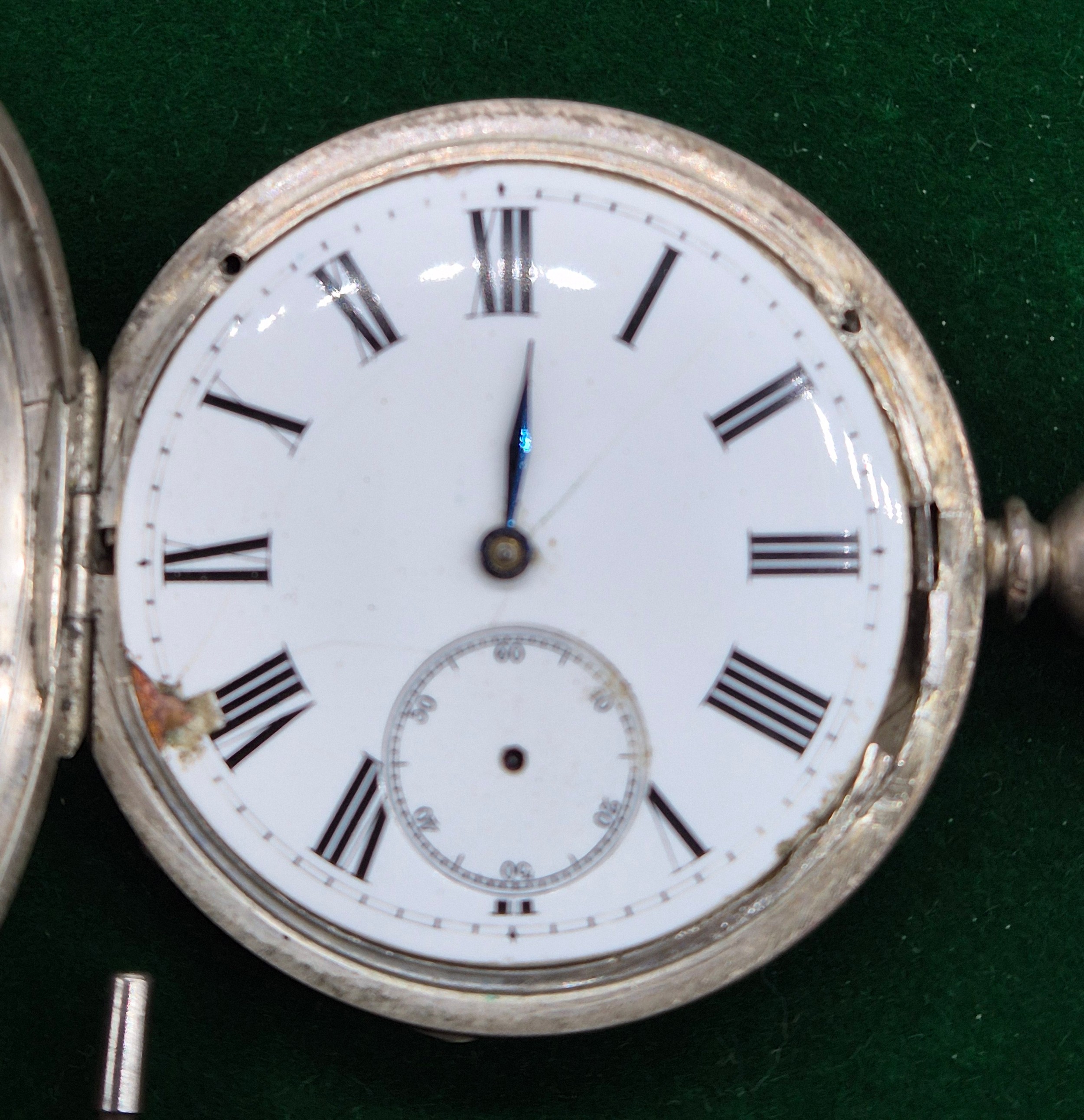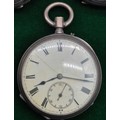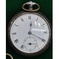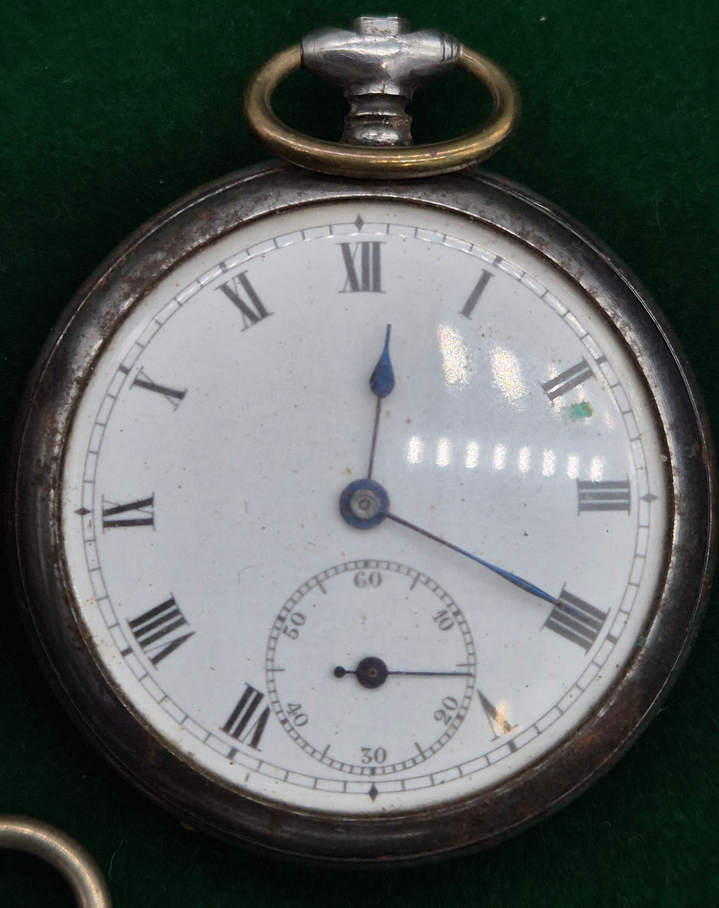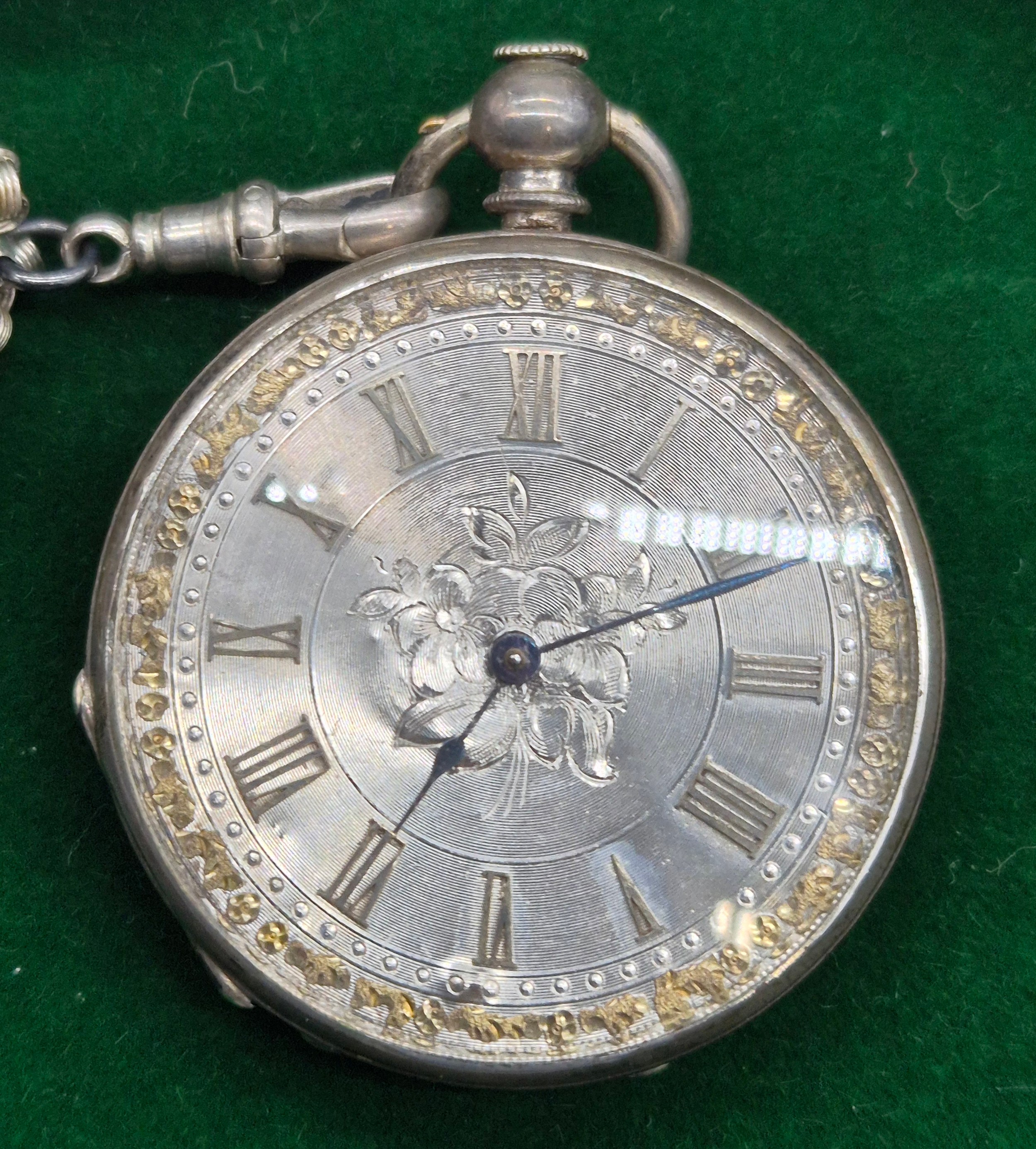 Five antique pocket watches; Four being silver cased. Silver fob watch with white metal Albert Chain. Fattorini & Sons Bradford Suisse non magnetic Lever pocket watch within a Swiss silver case. Fine silver pocket watch by Mossman Sons & Co Edinburgh and two others. All need attentions.
