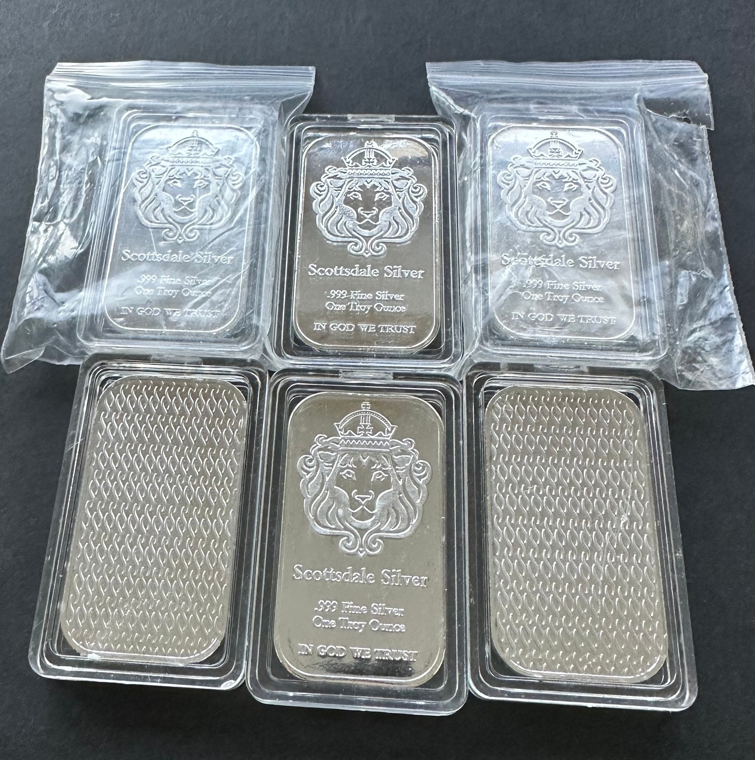 6 Replica silver plated bars ( all the same )
