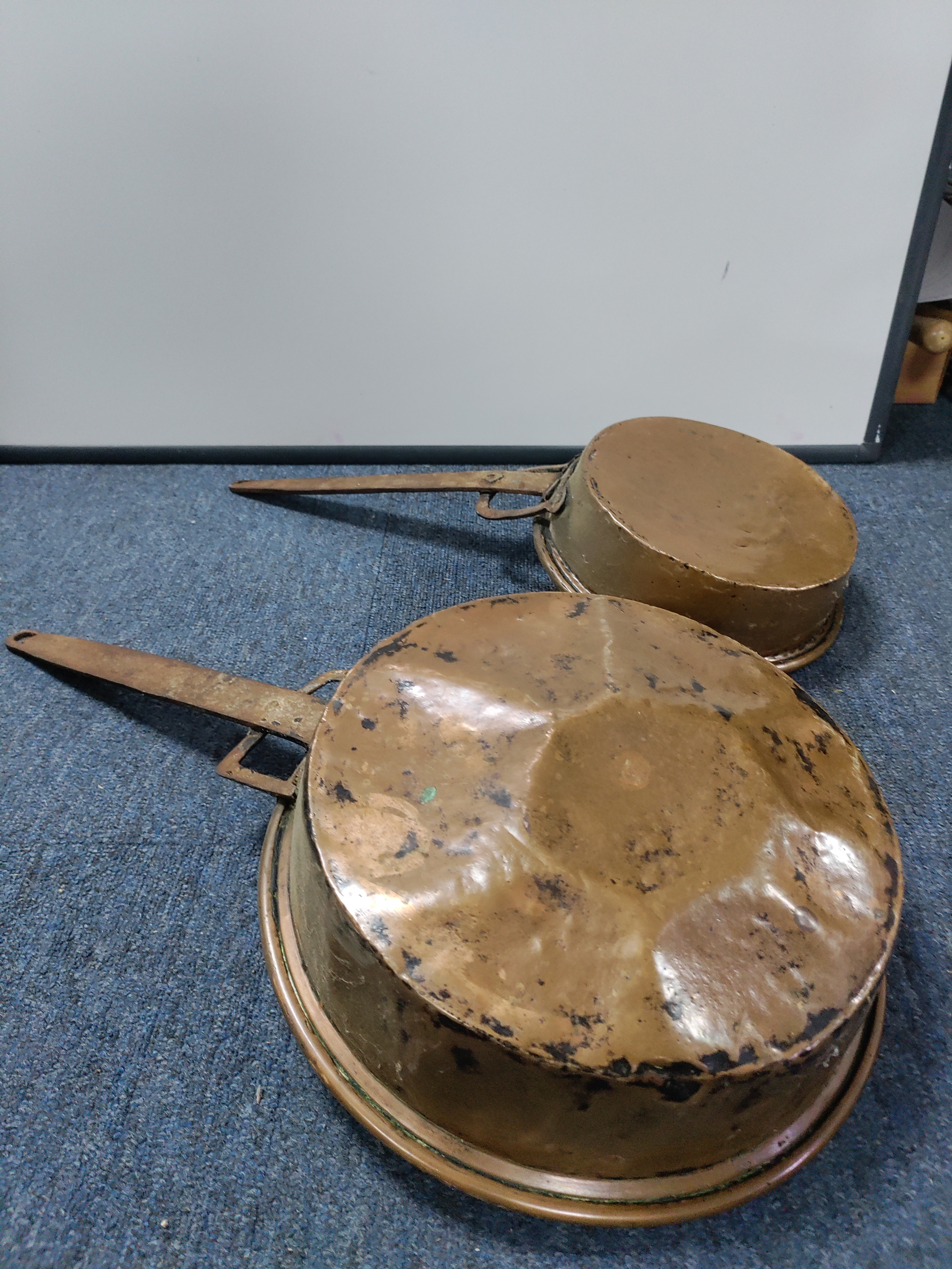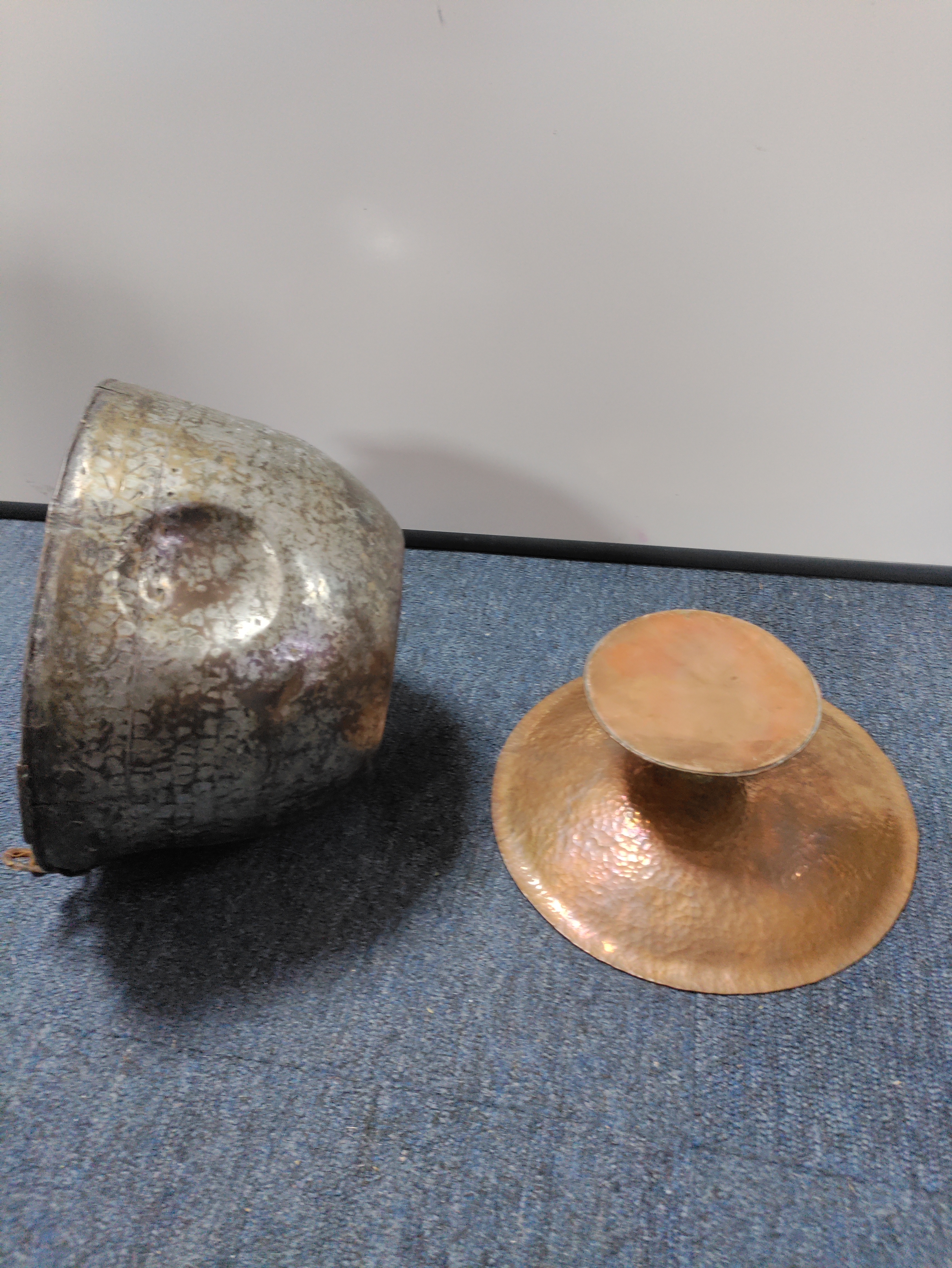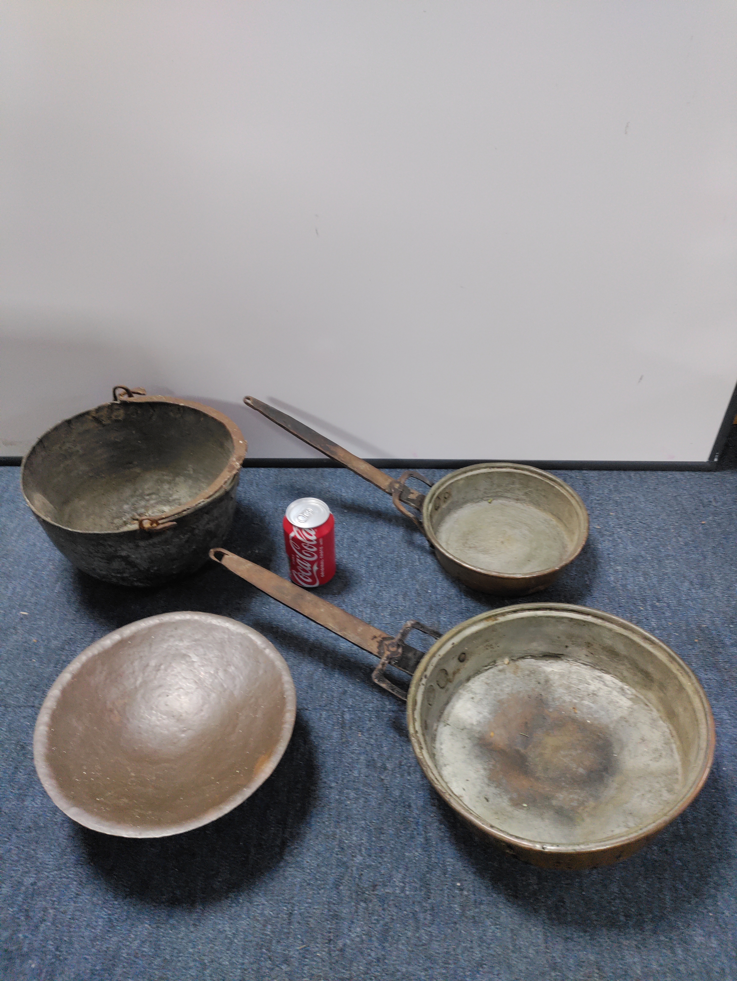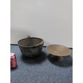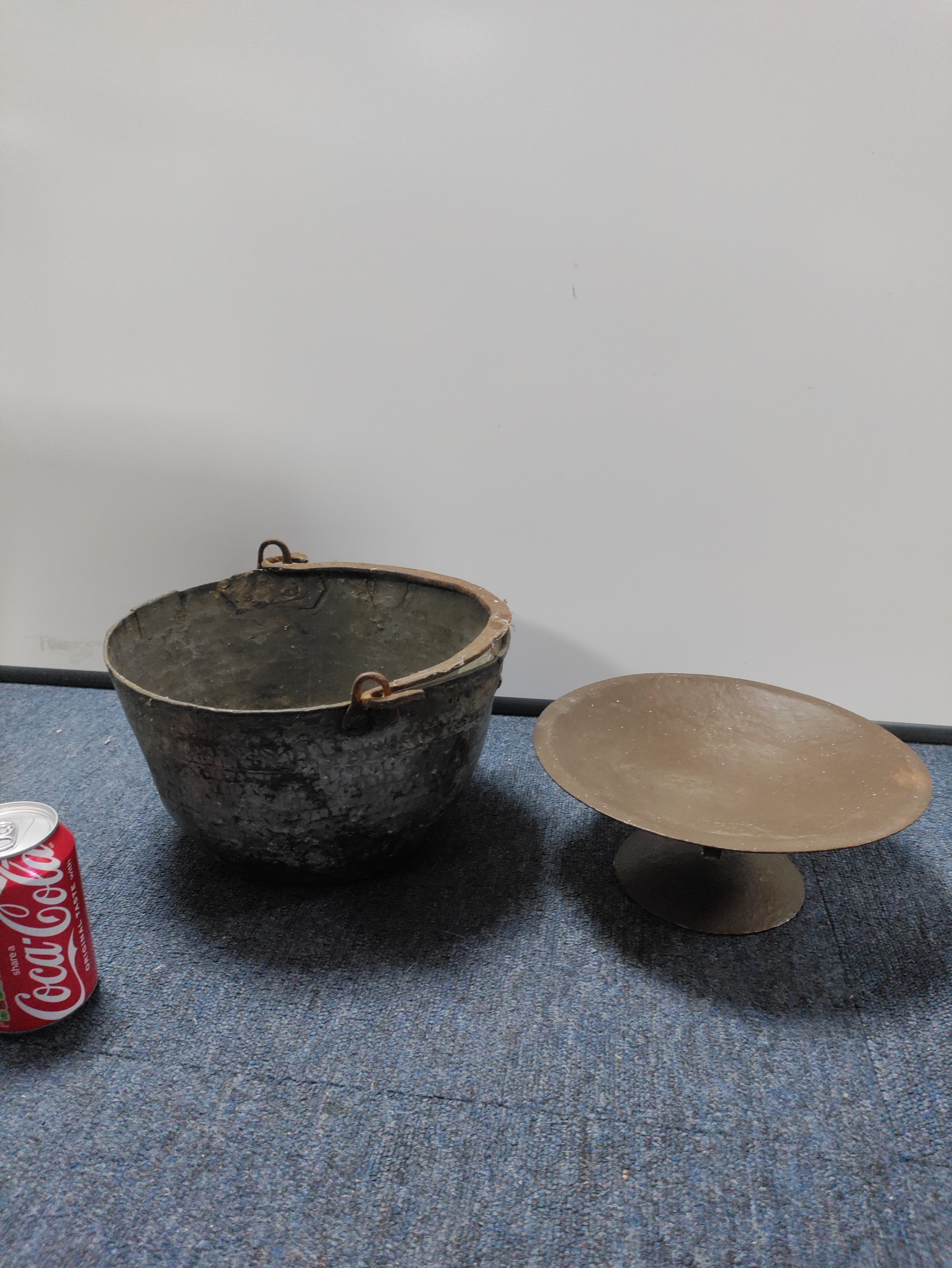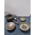 A set of antique Copper pans, bowls and a pedestal.