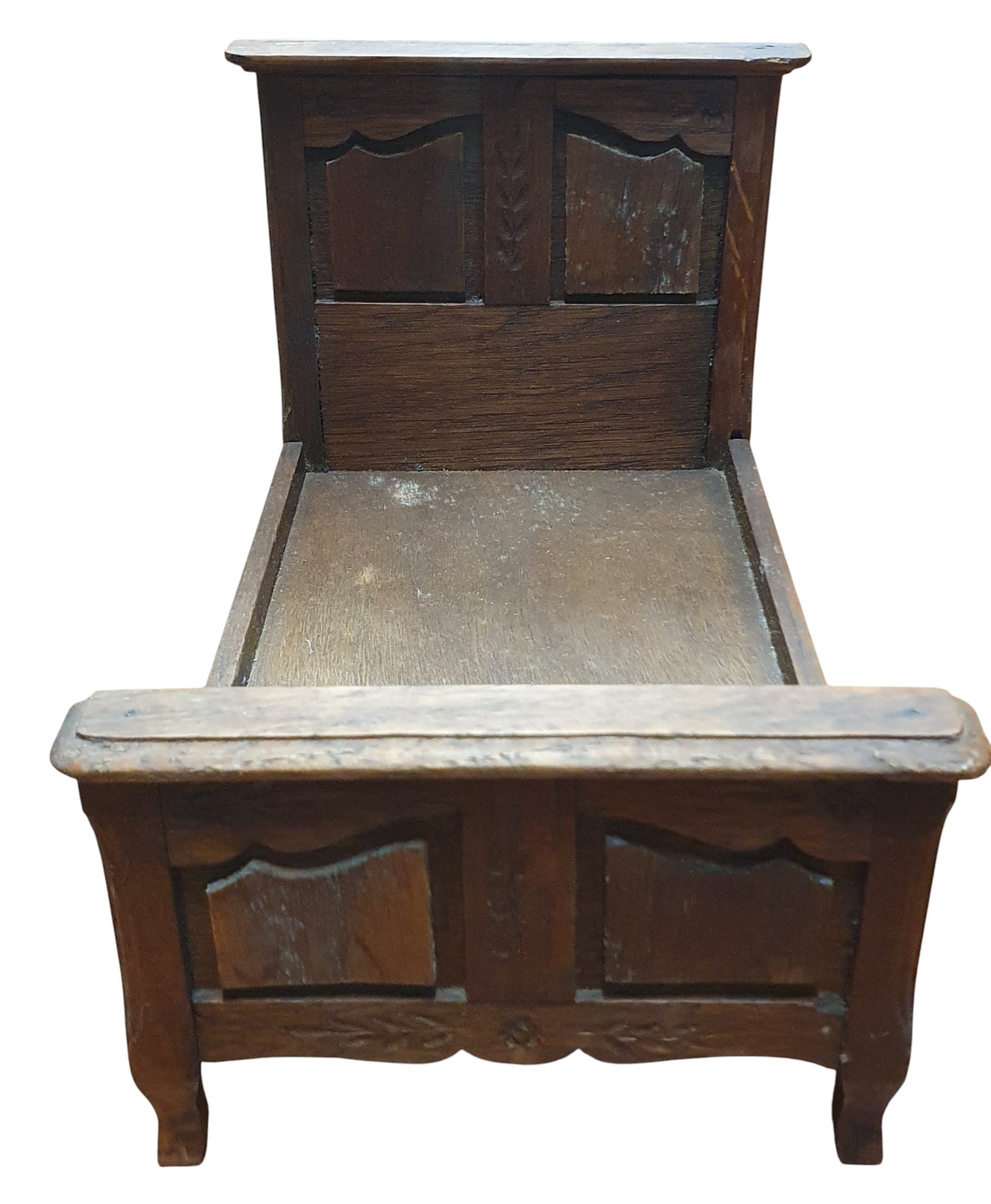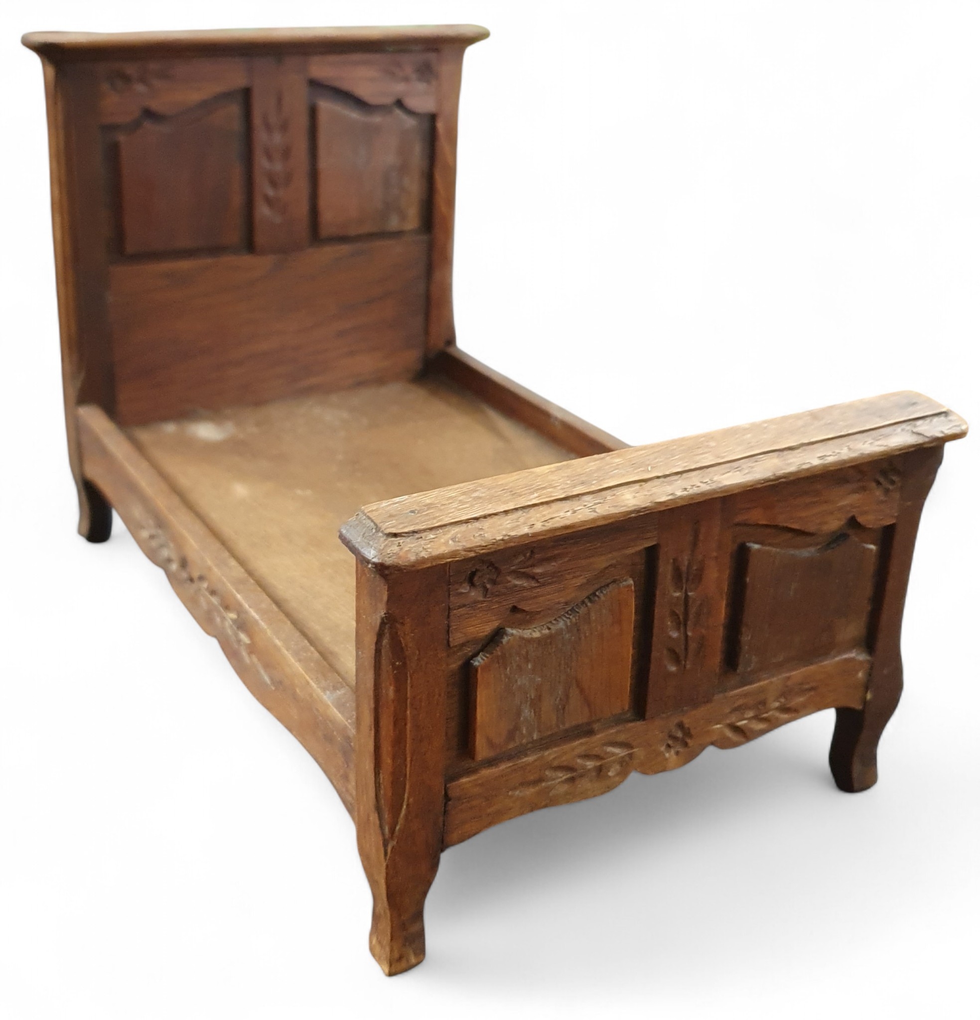 An early to mid 20th Century Apprentice piece of a Bed along with a Table Lamp.Bed: L 20 cm approx.