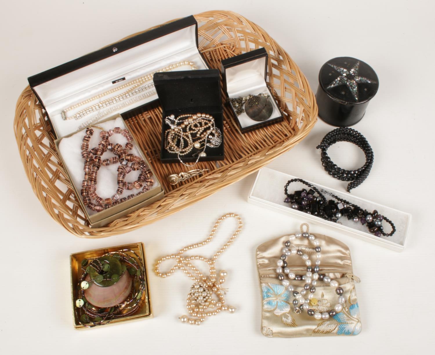 A collection of costume jewellery. Includes Honora, silver paste set bracelet, simulated pearls etc.