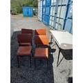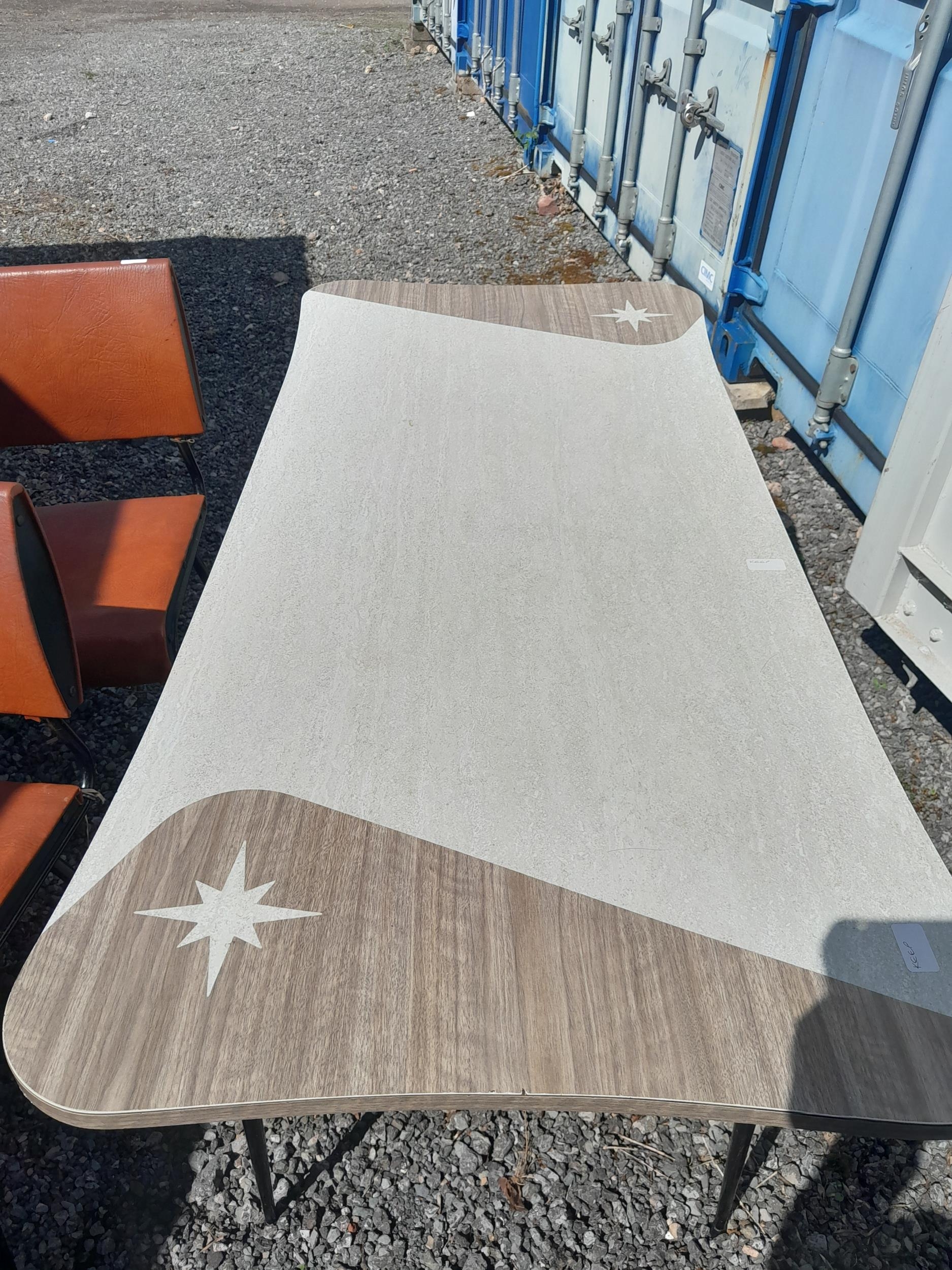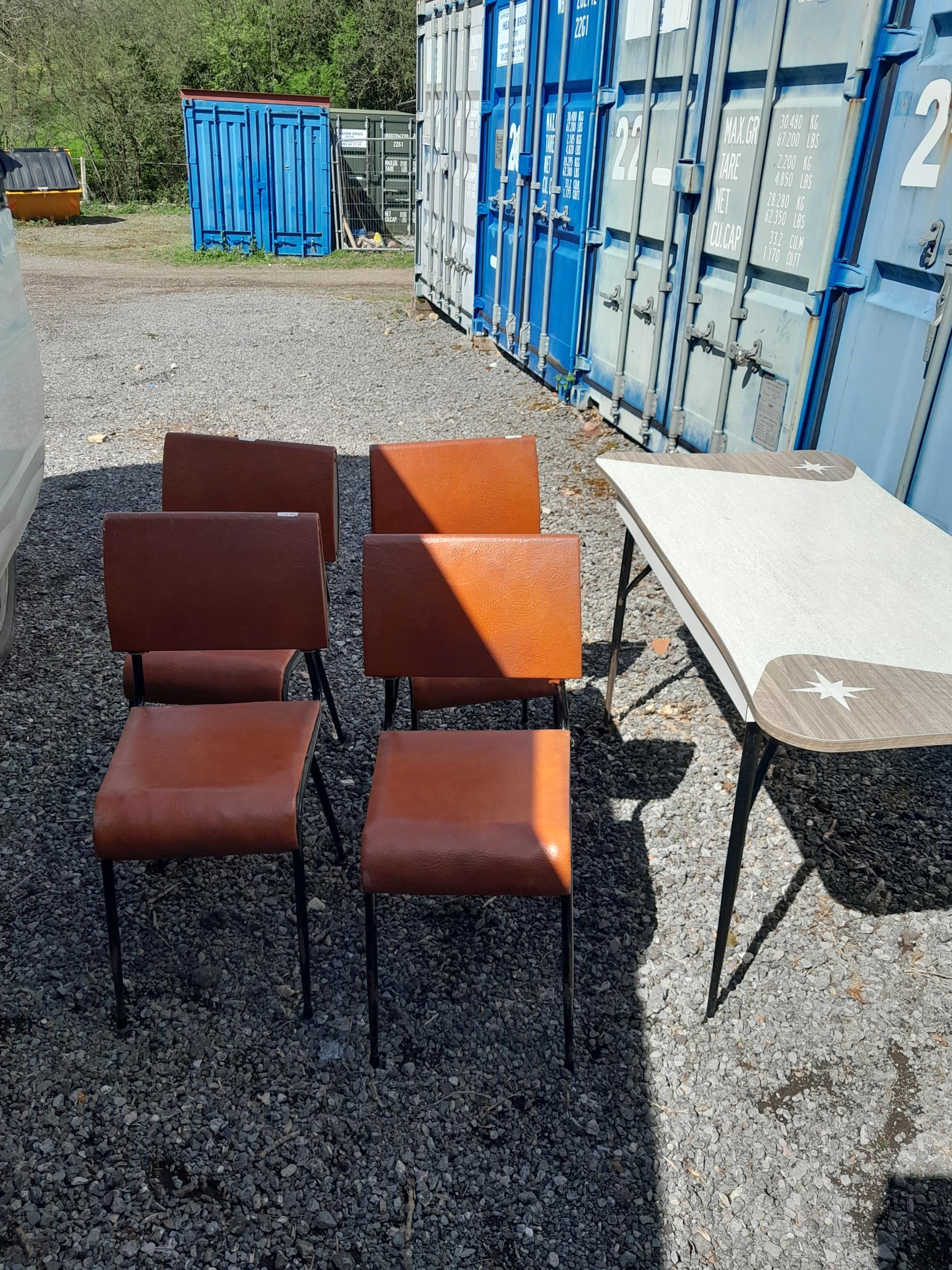 Vintage formica top dining table with metal legs and four sidechairs for re upholstery and light restoration (backs need tightening)