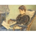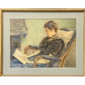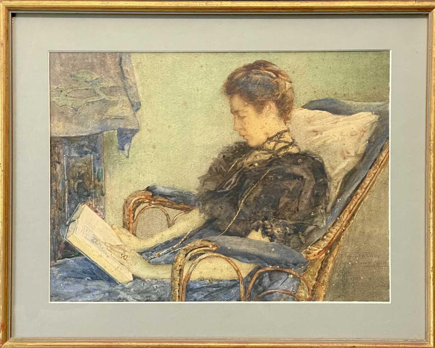 Henry Meynell RHEAM (1859-1920) Mouse Reading (Emily Houghton Birch), 1905 Watercolour, monogrammed and inscribed 'To my friends Houghton & John', to verso further inscriptions probably by Mornie Kerr, 27 x 37cm, framed 37 x 47cm Literature 'A Painter Laureate - Lamorna Birch and his circle' Austin Wormleighton, illustrated page 77 The personal family collection of SJ Lamorna Birch.
