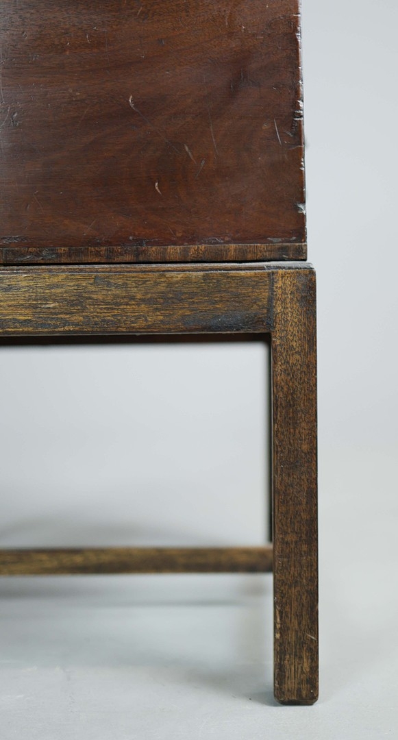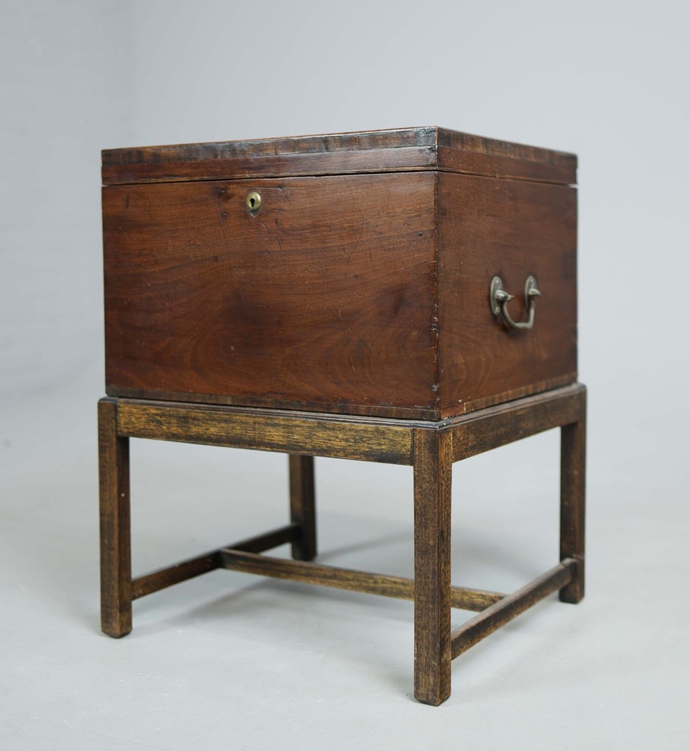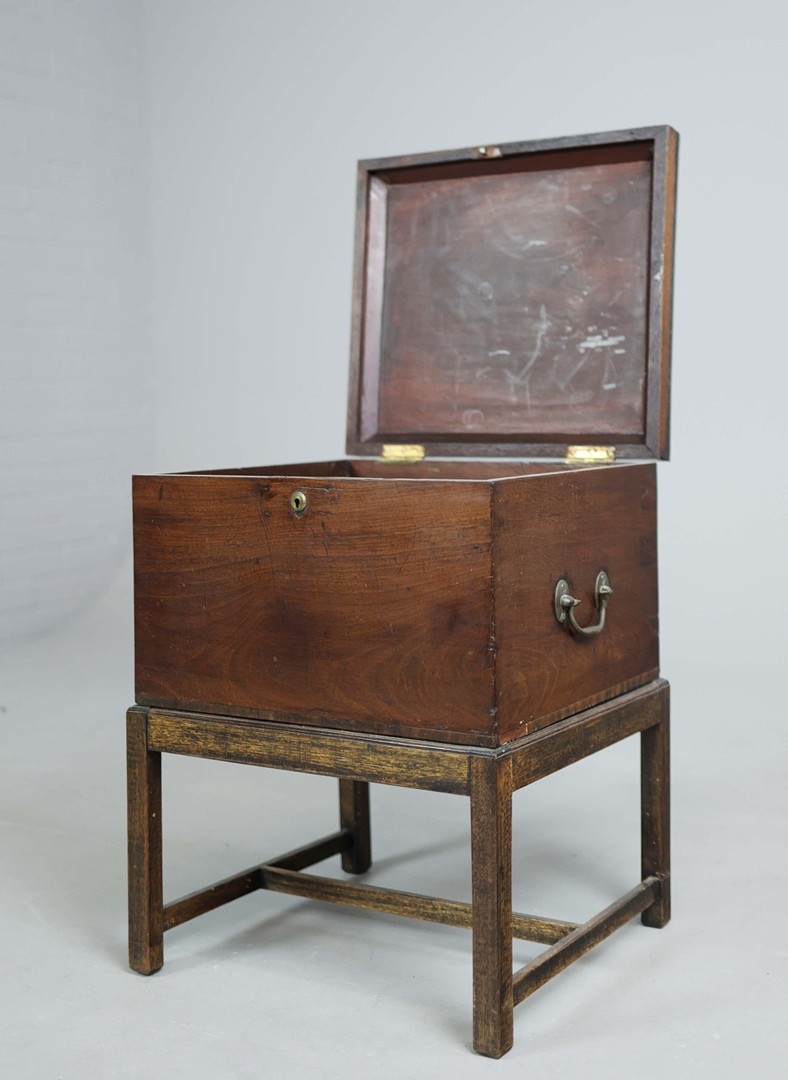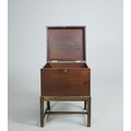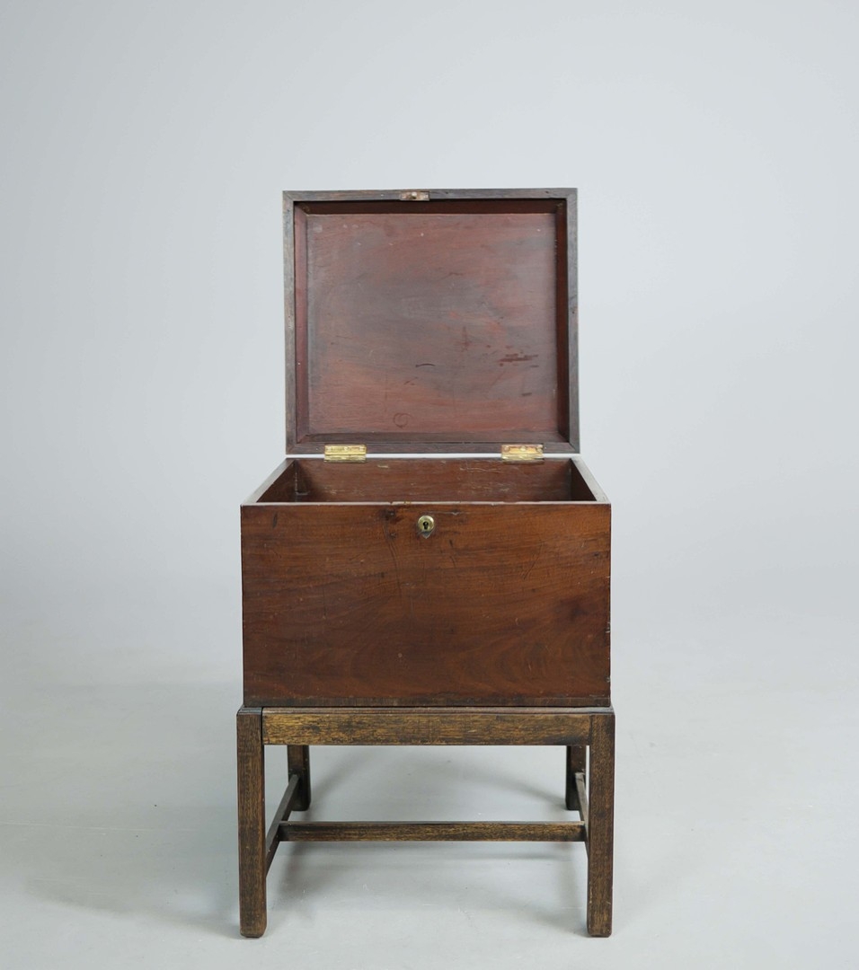 WINE COOLER/BOX ON STAND. George III mahogany, with a crossbanded rising lid on later stand, 49cm w x 63cm t x 44cm d.