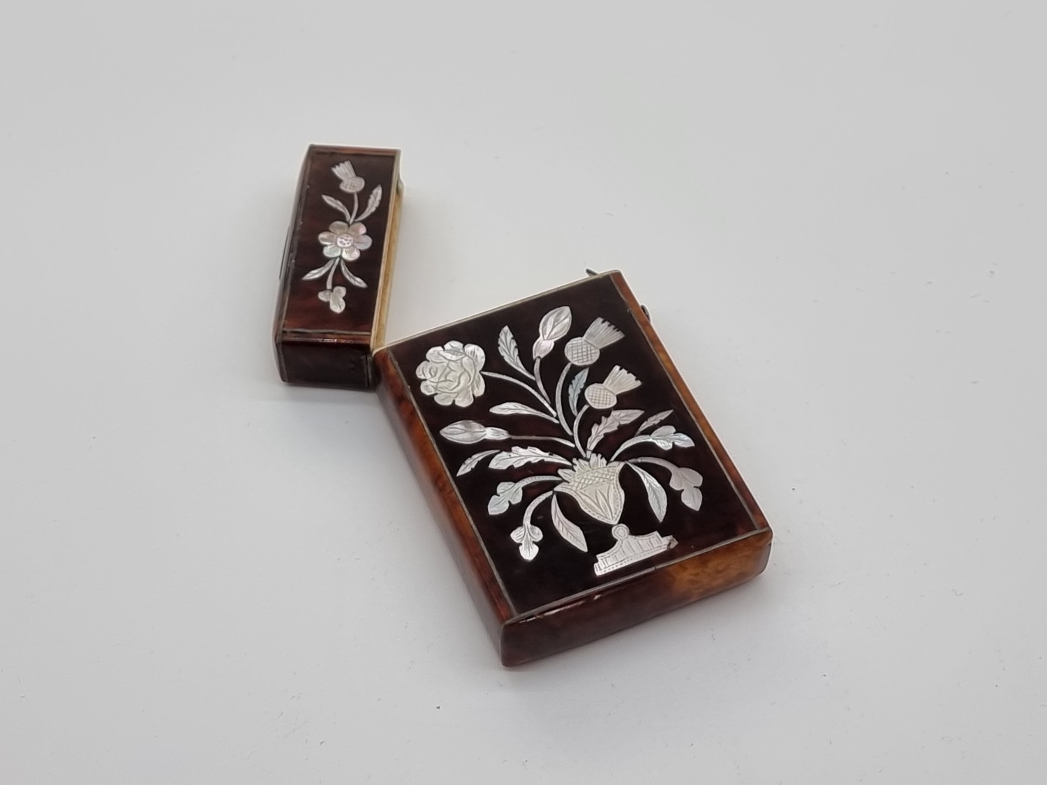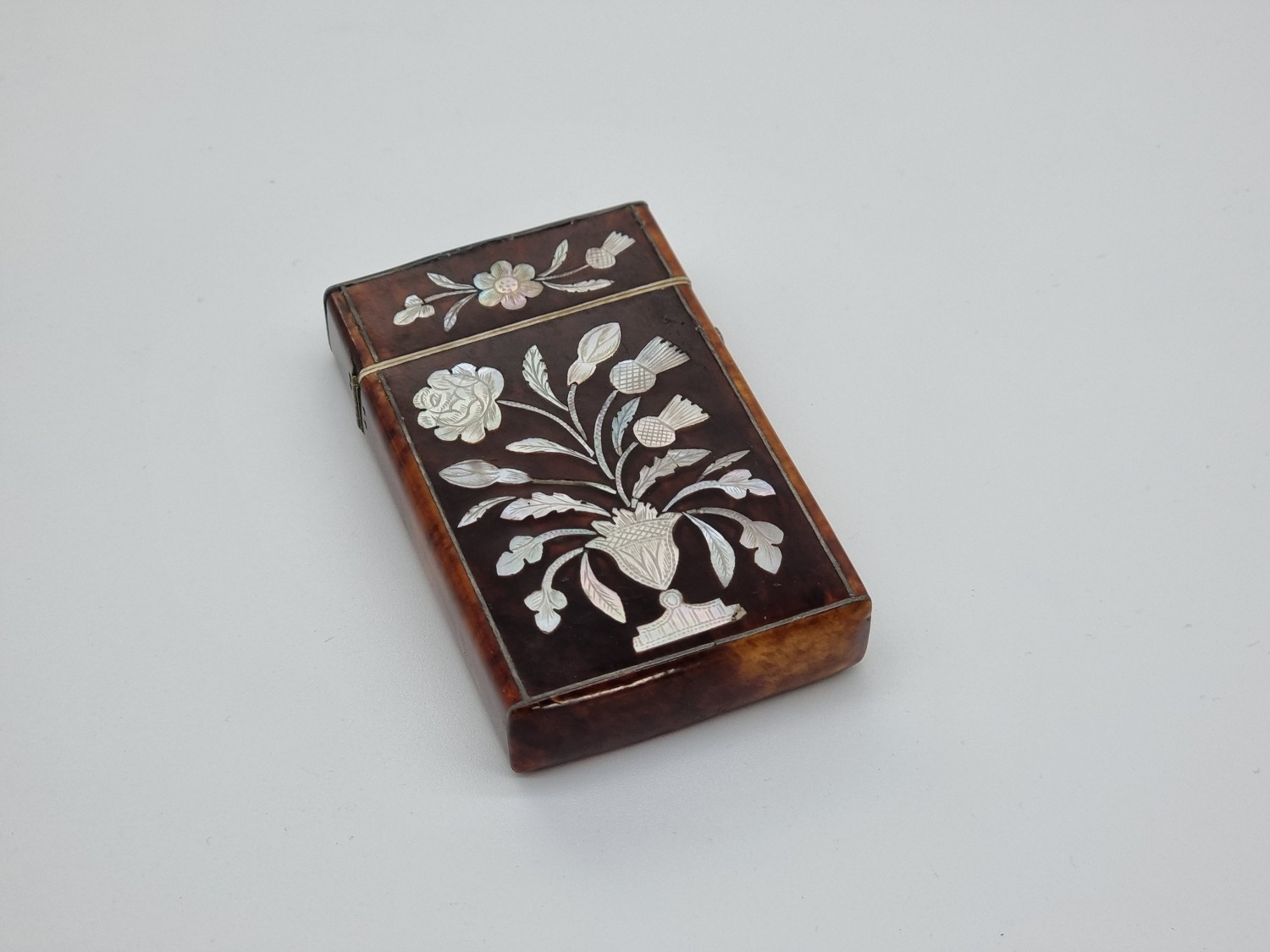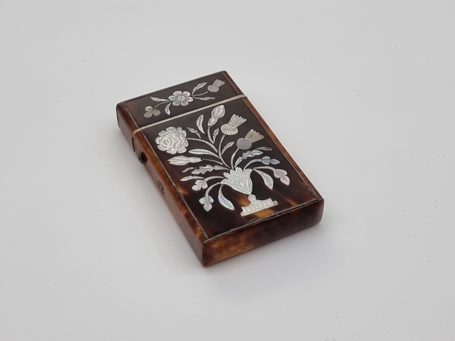 A small Victorian tortoiseshell and mother-of-pearl card case, 8.2 x 5cm.