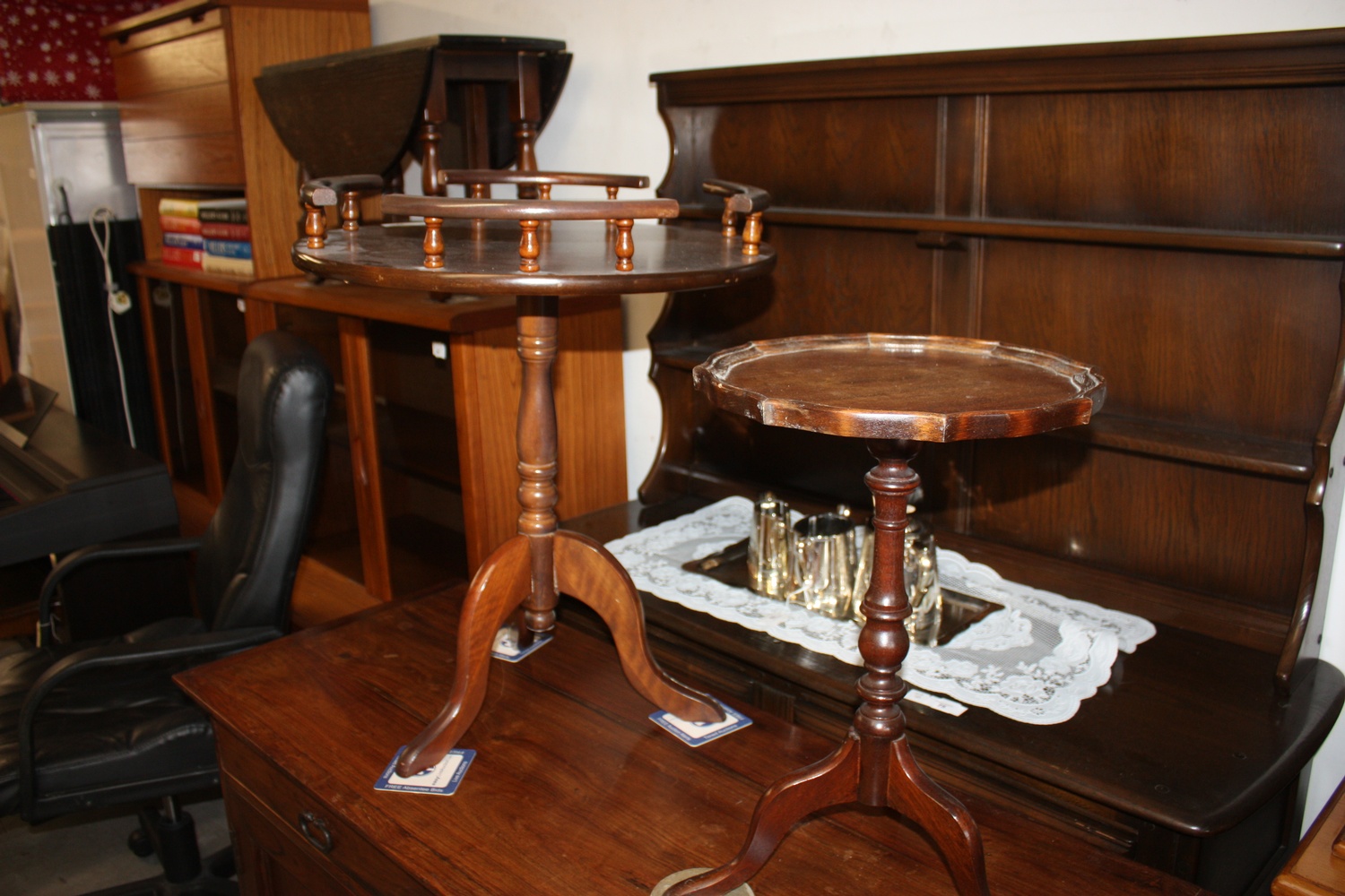 Single Pedestal Galleried Circular Table Plus a Small Wine Table