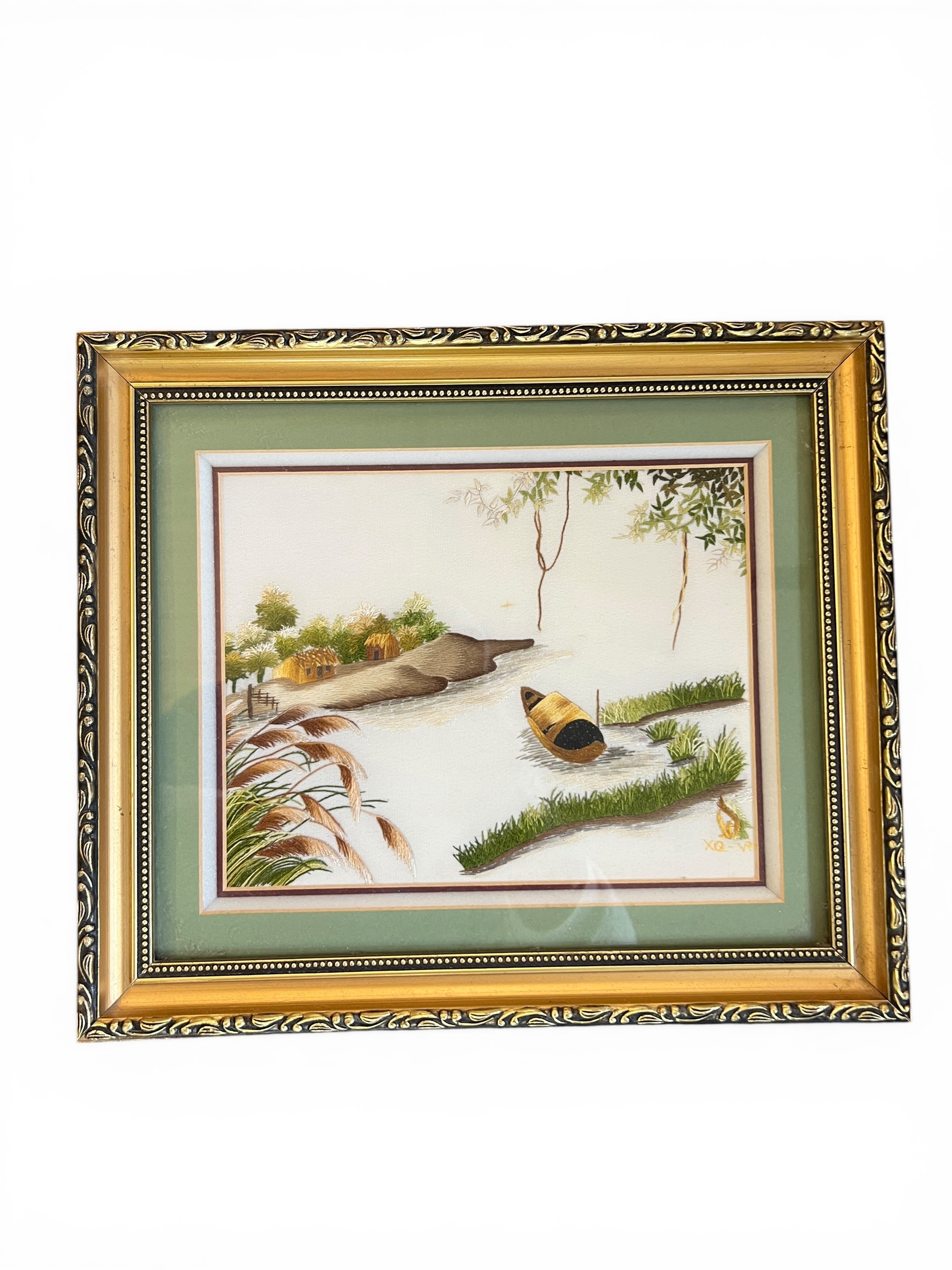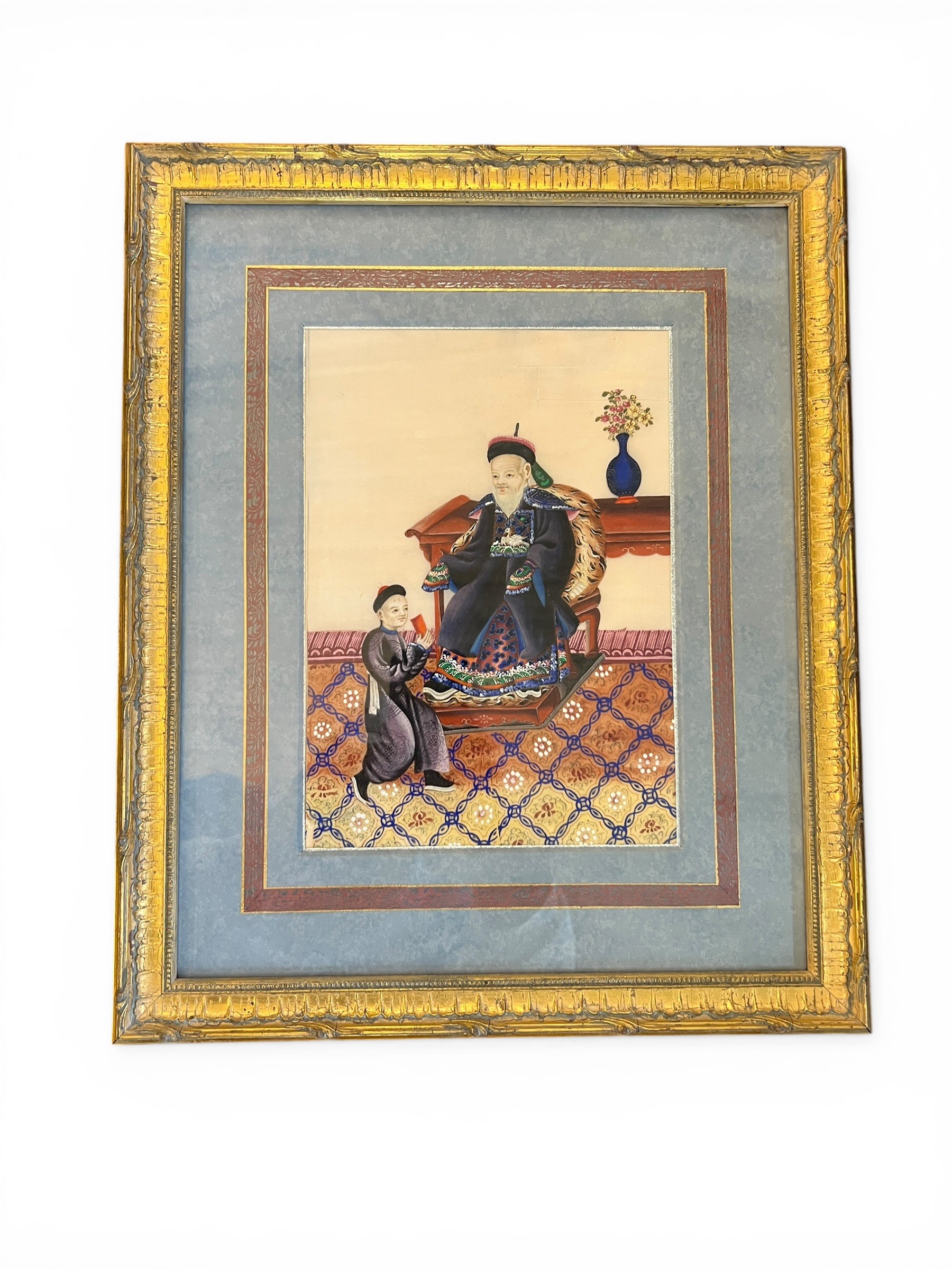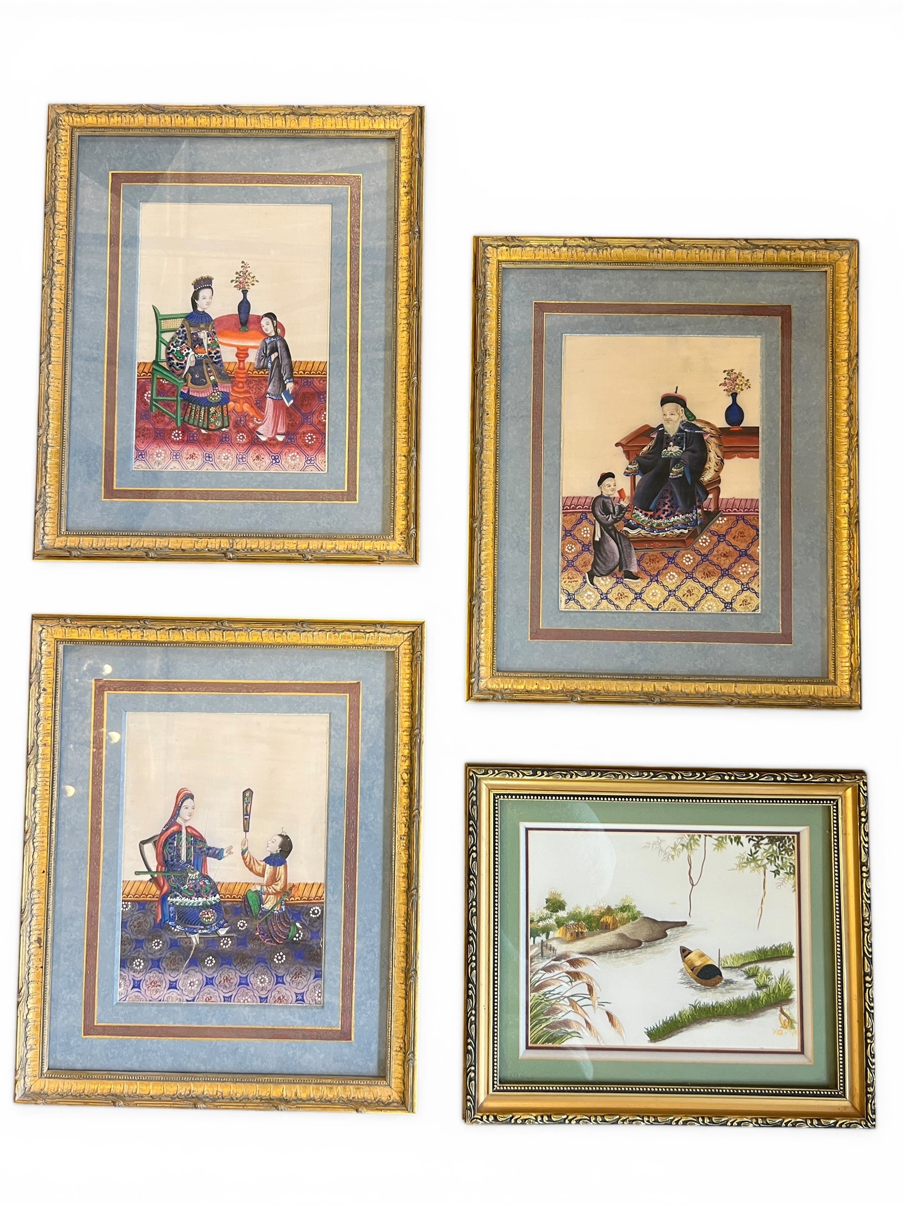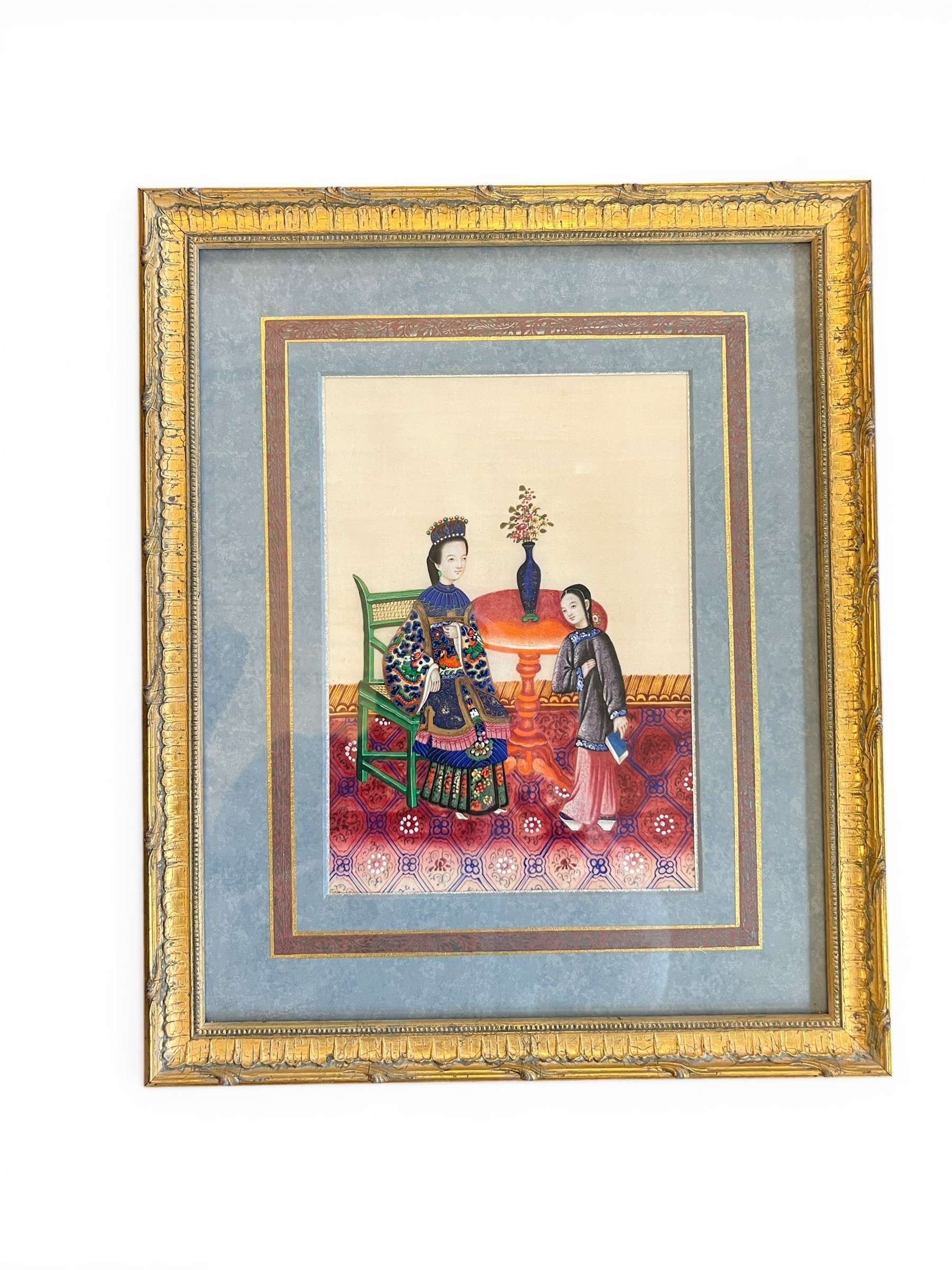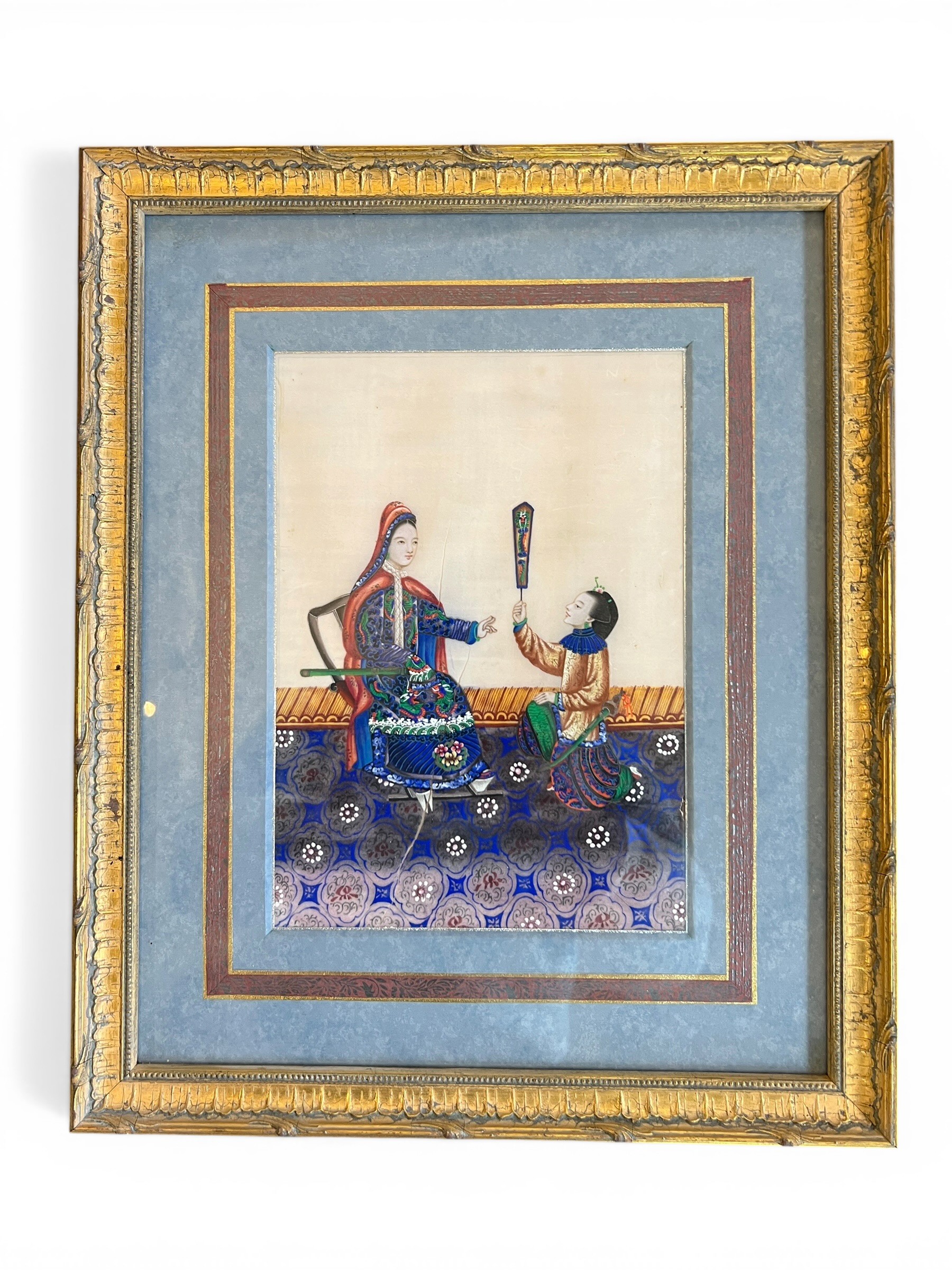 Chinese Export Paintings on Rice Paper and Silk Embroidered Picture - 43 cm x 35 cm