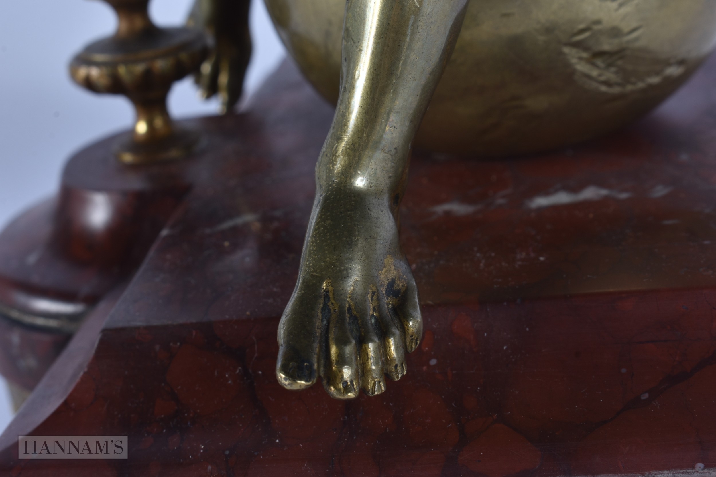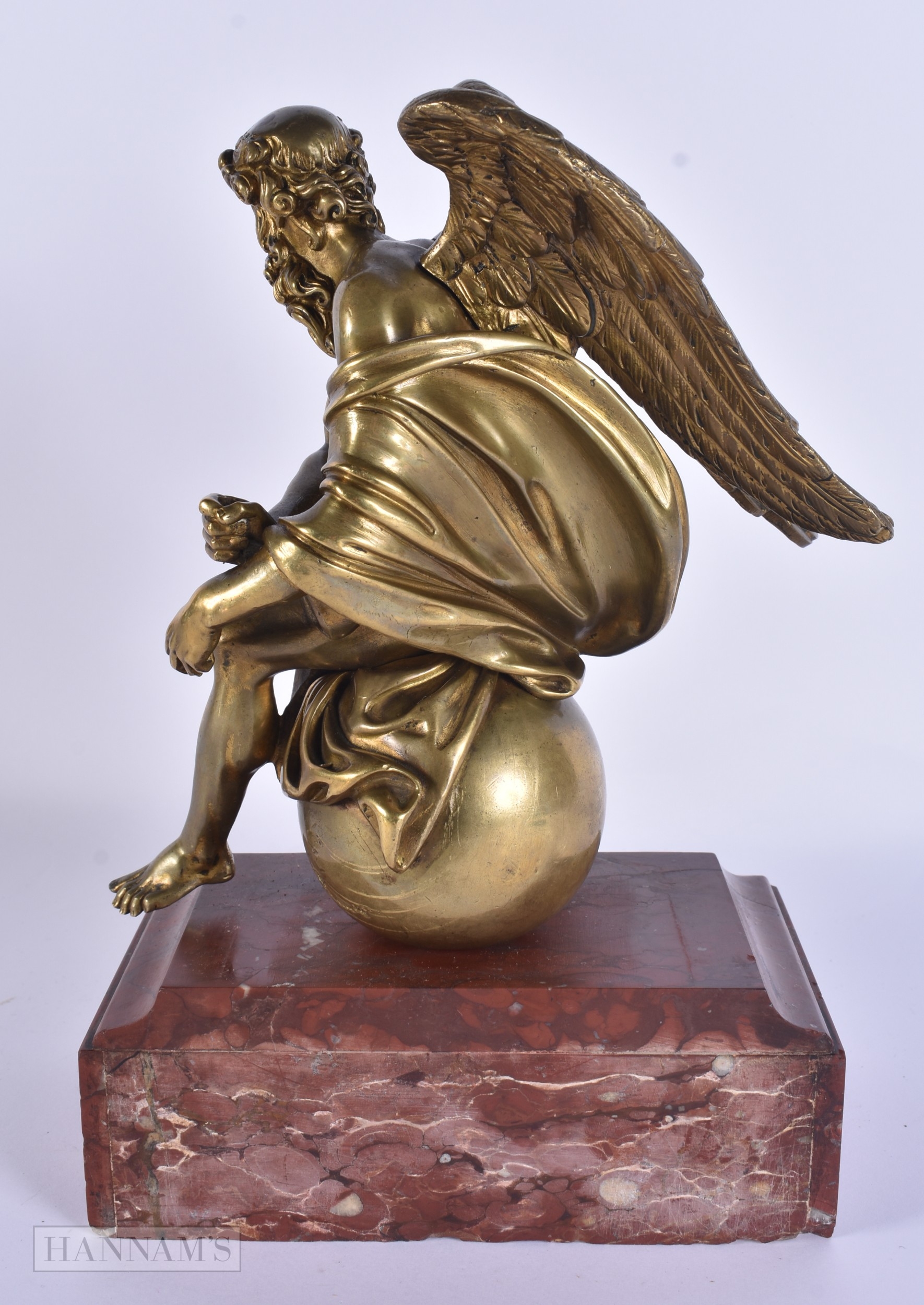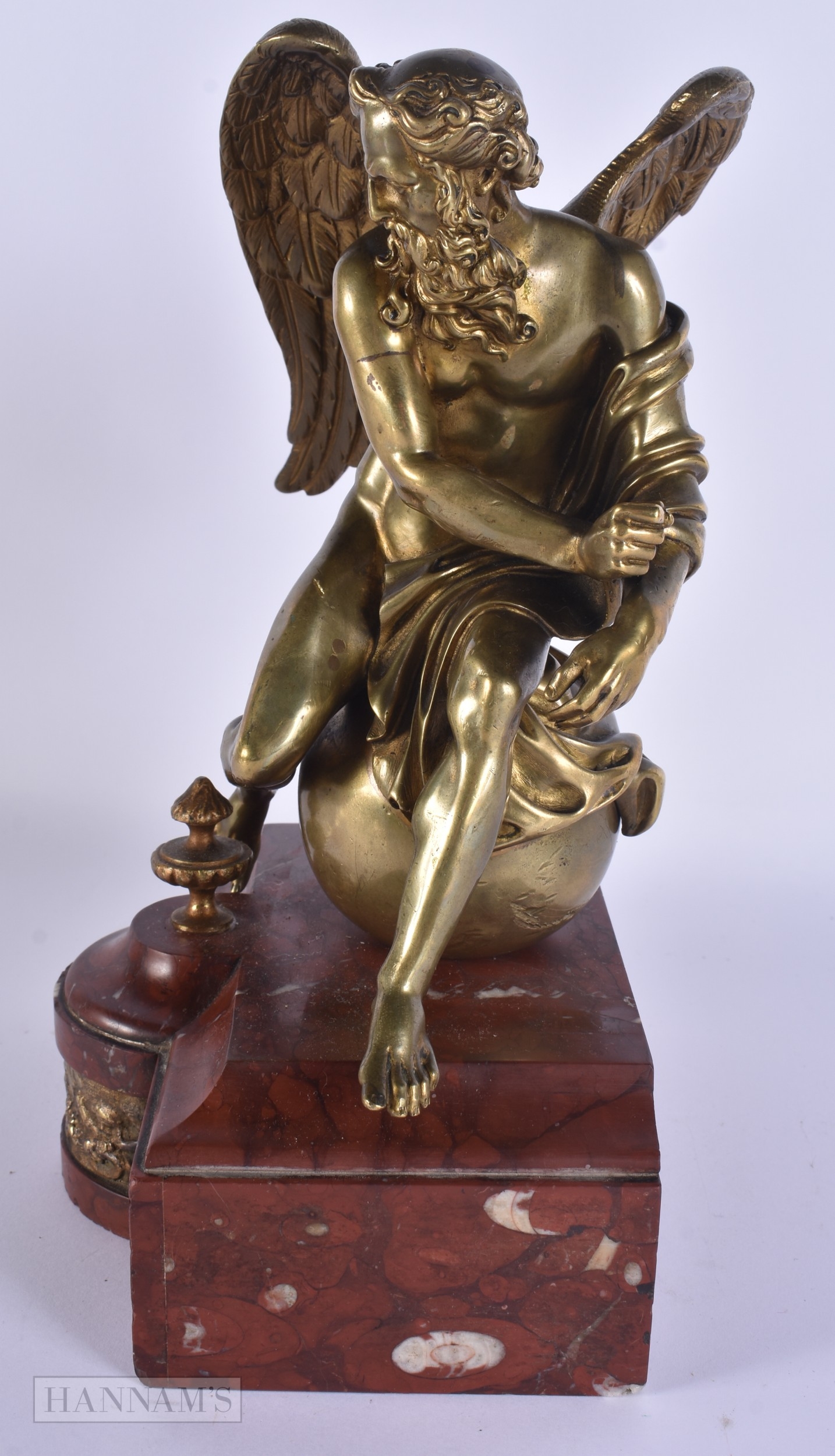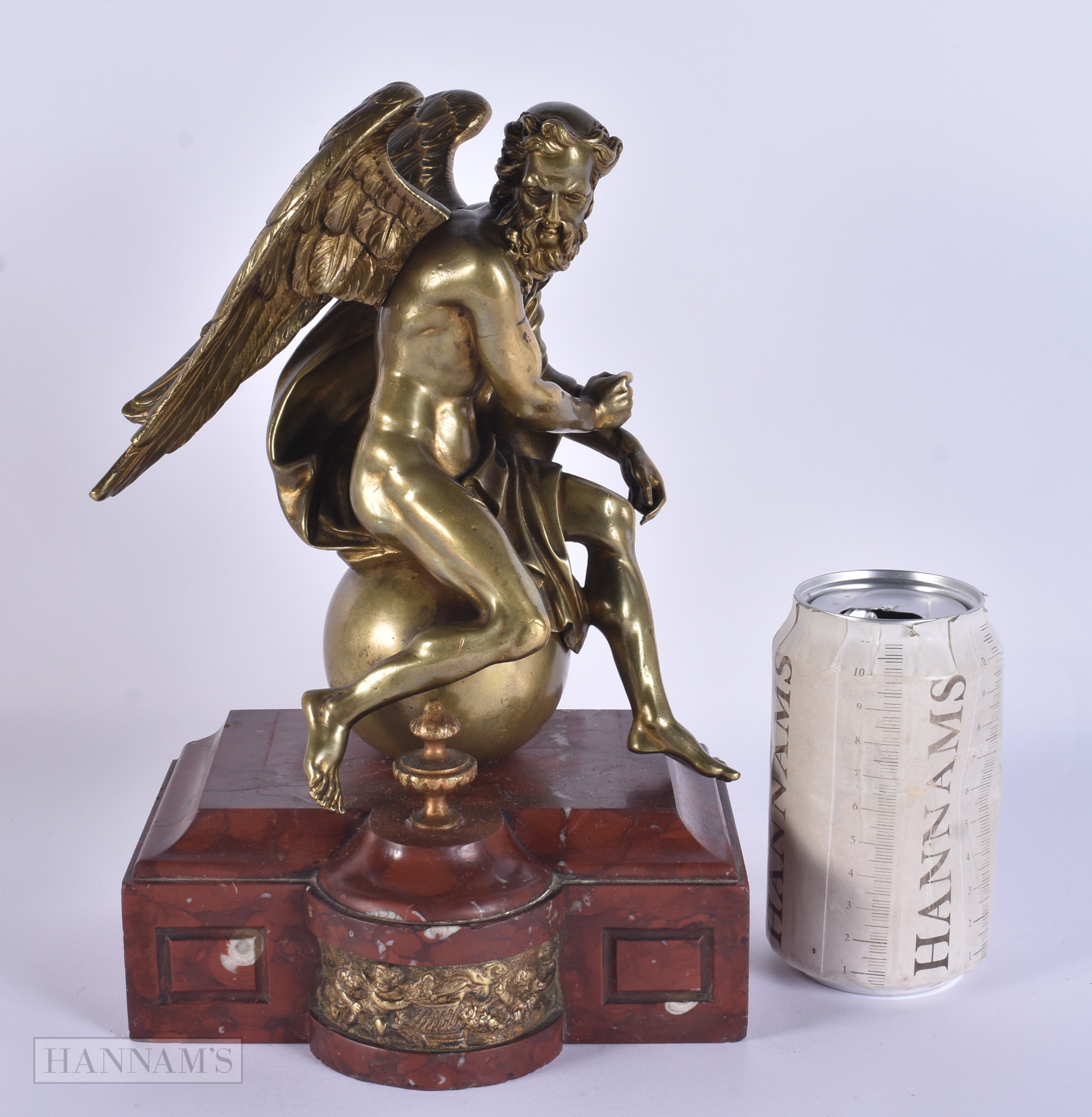 A FINE EARLY 19TH CENTURY EUROPEAN GRAND TOUR GILT BRONZE FIGURE OF KRONOS modelled upon a red marble plinth. 27 cm x 18cm.