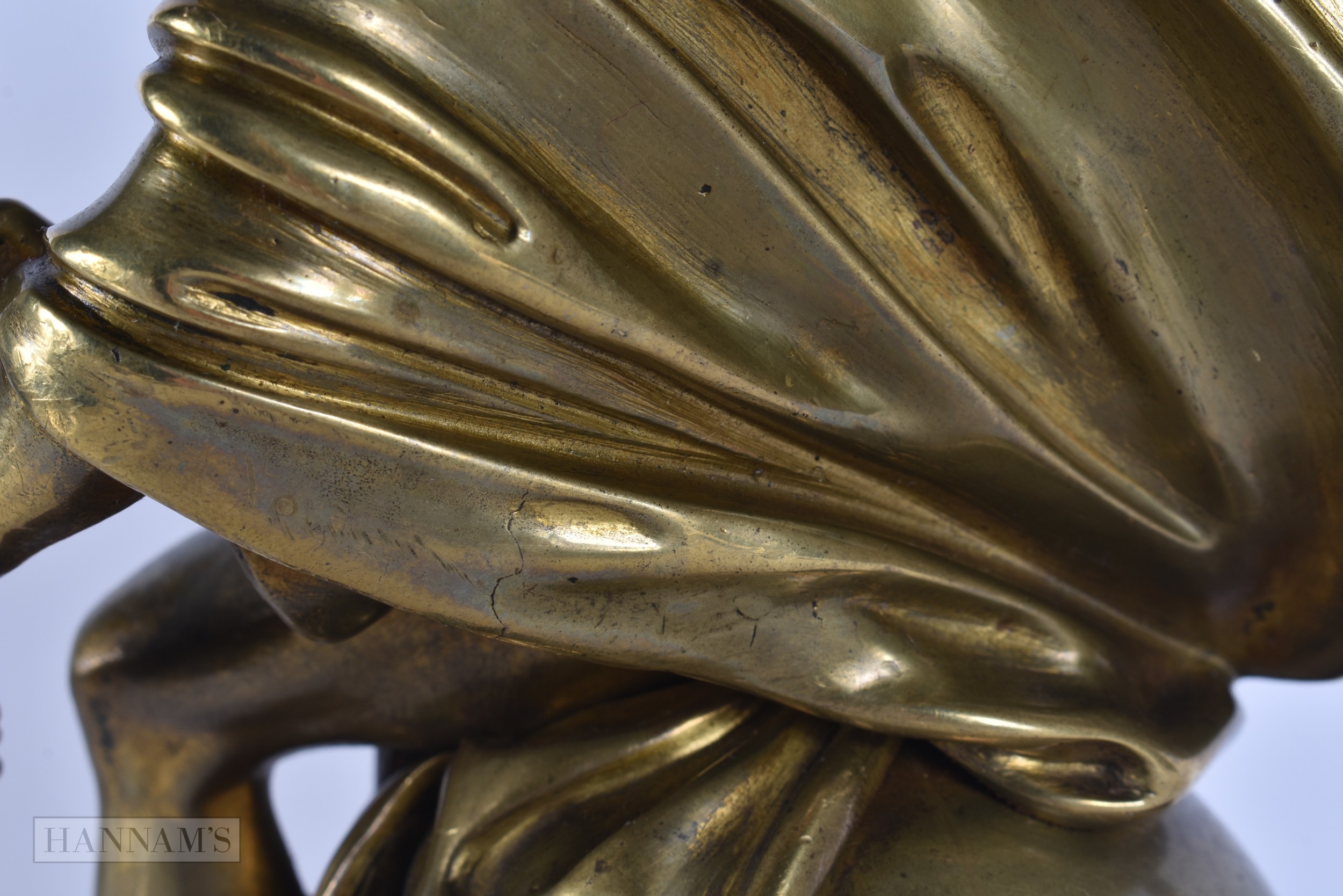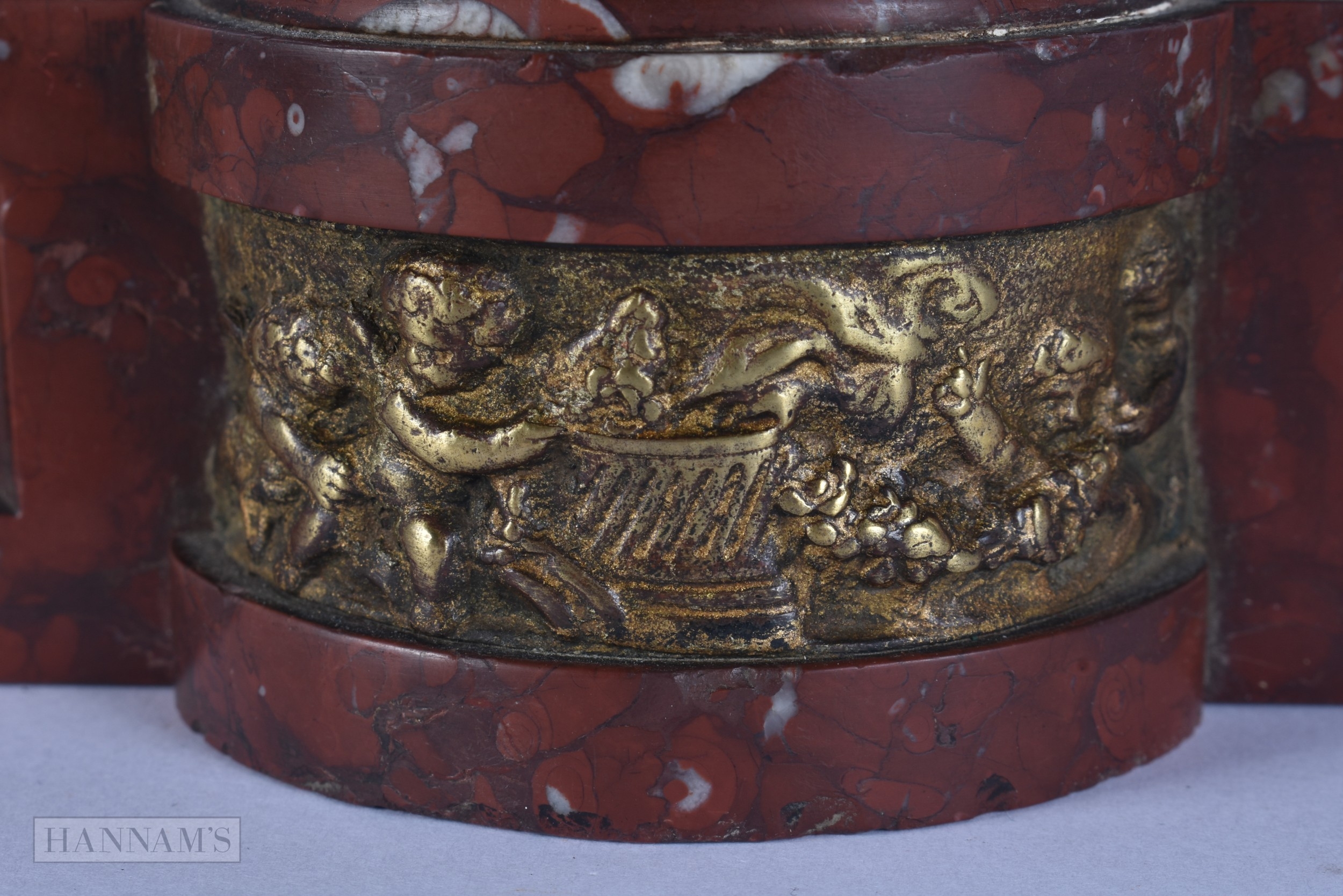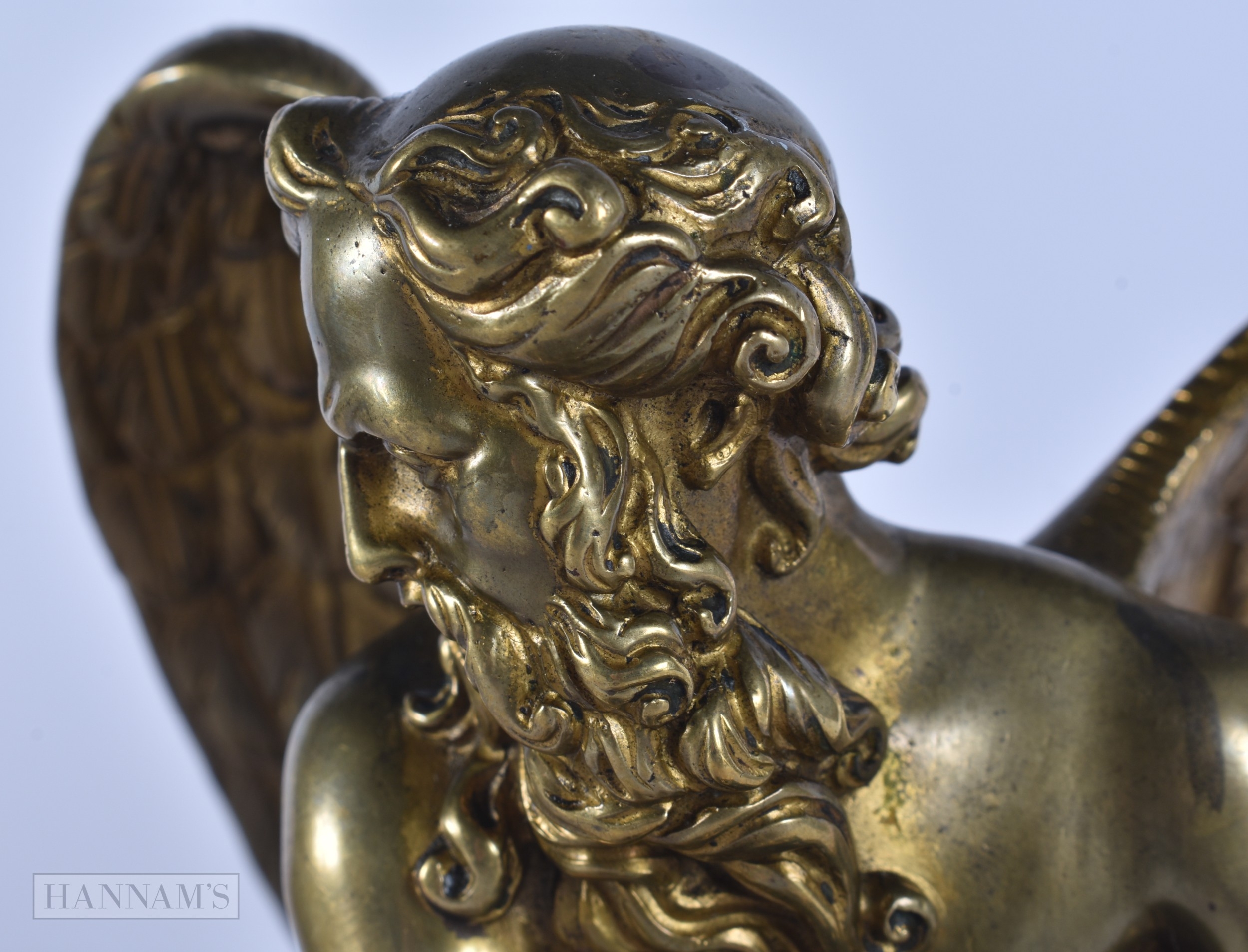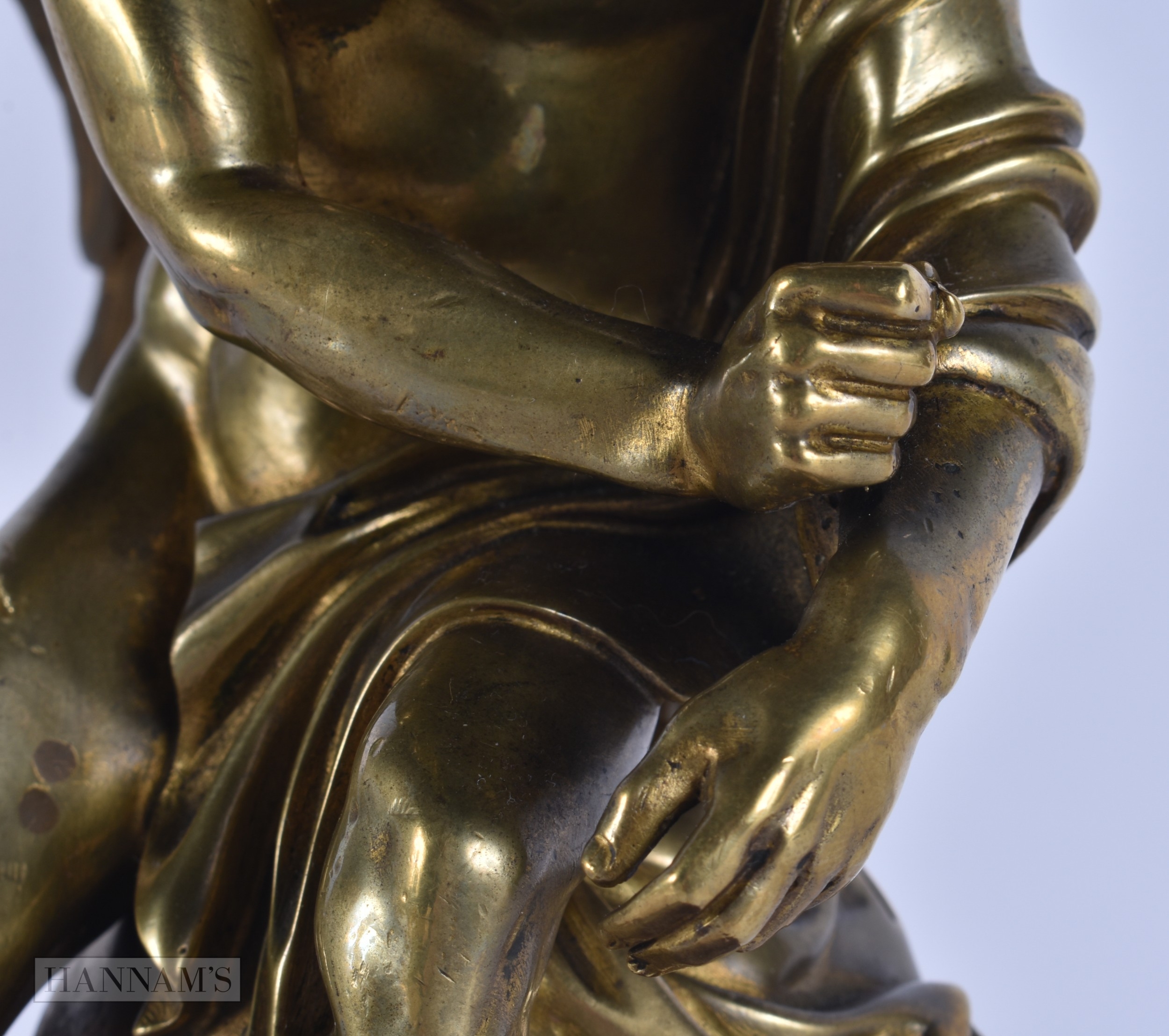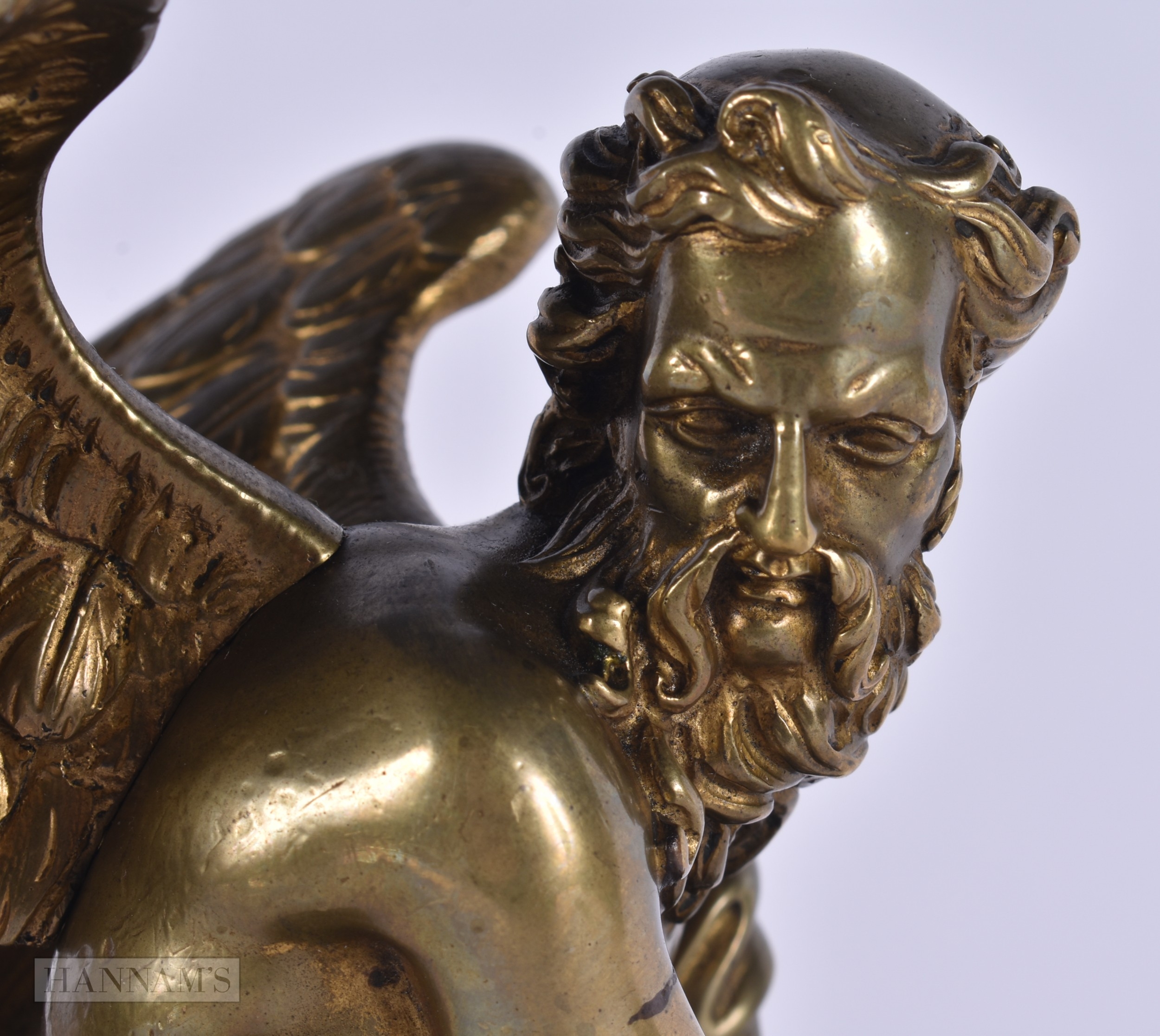 A FINE EARLY 19TH CENTURY EUROPEAN GRAND TOUR GILT BRONZE FIGURE OF KRONOS modelled upon a red marble plinth. 27 cm x 18cm.